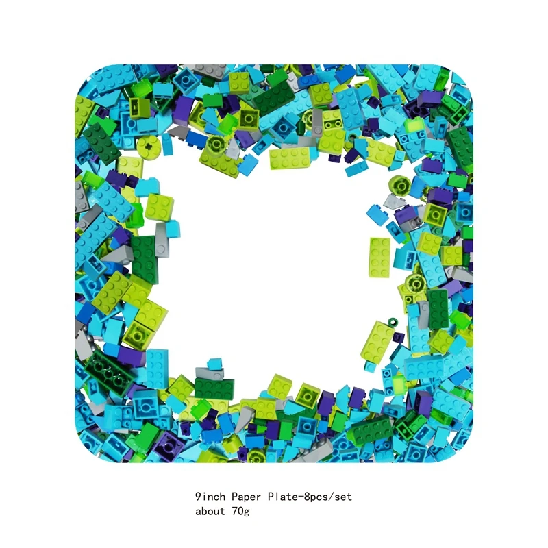 Bloques de construcción juguetes para niños suministros de fiesta temática vajilla desechable taza plato globo telón de fondo para decoración de fiesta de cumpleaños