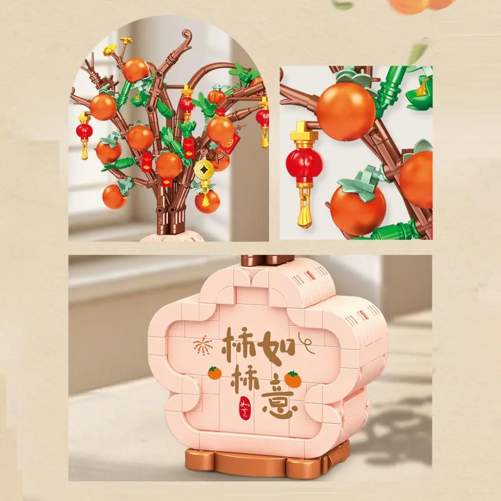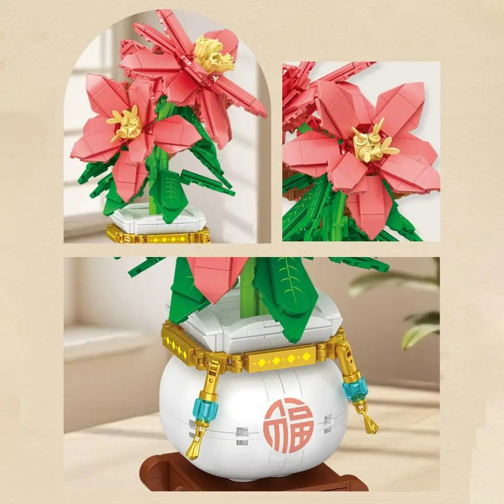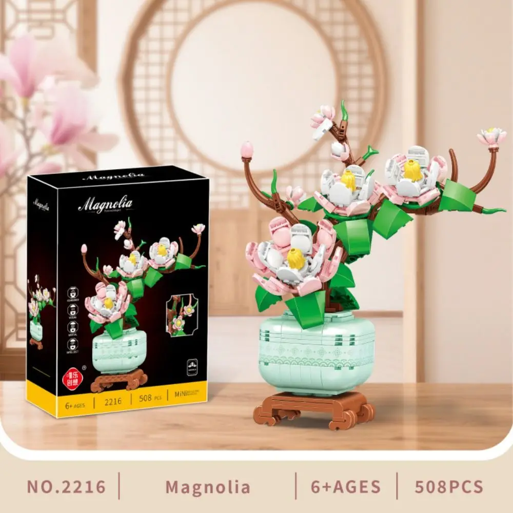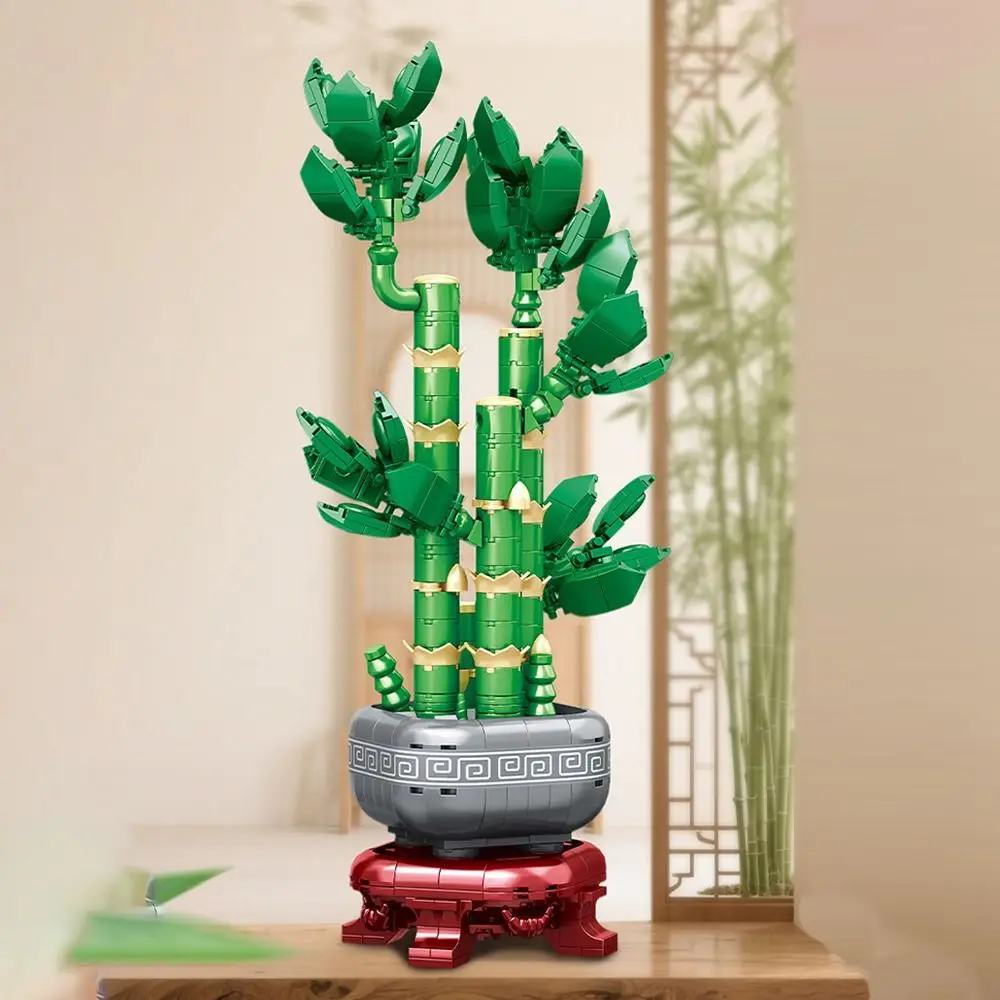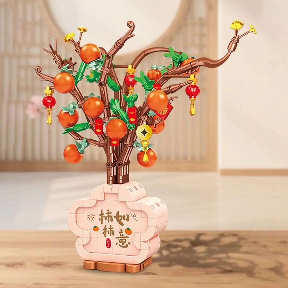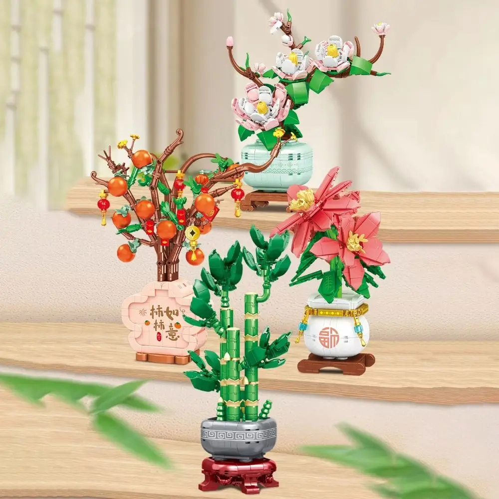 Comprar Bloques de construcción de flores artificiales de plástico, adornos de escritorio, decoración del hogar, bonsái, modelo de ensamblaje, bloque DIY