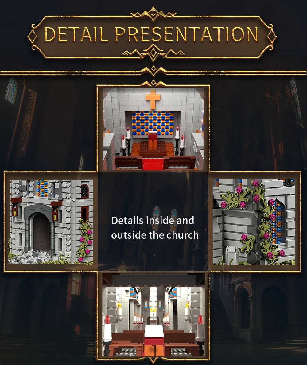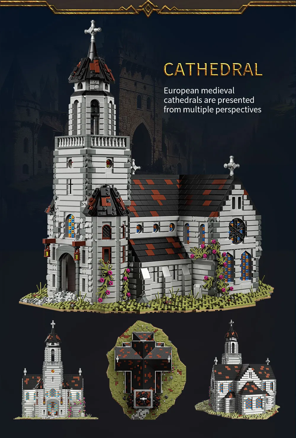 Comprar Bloques de construcción de iglesia Medieval para niños, Castillo europeo con vista a la calle, modelo de ladrillos, decoración de escritorio, juguetes para niños, regalos de vacaciones, 6172 Uds.