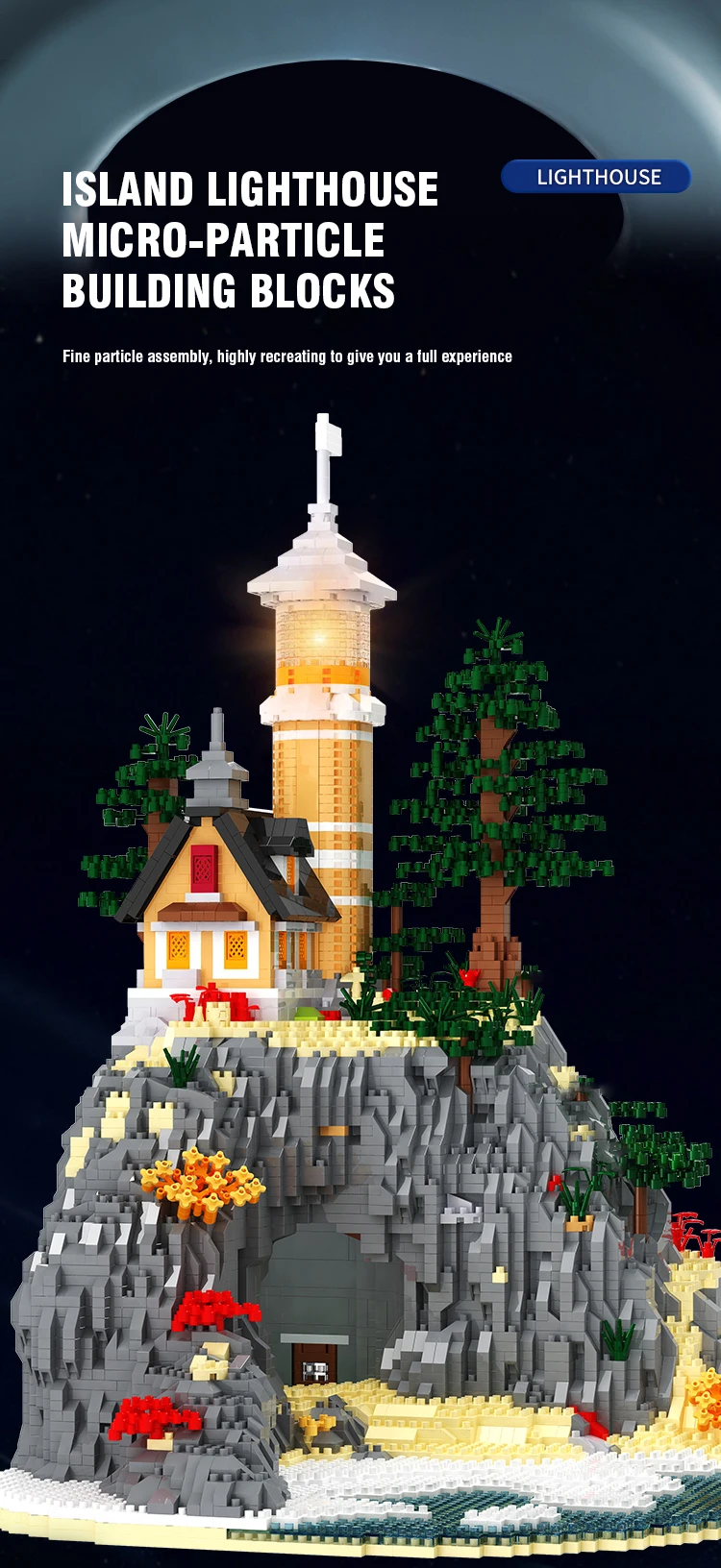 Bloques de construcción de isla de faro 5100stk, bloques de modelo de faro con luz, juguetes para niños, regalos de Navidad, conjunto de arquitectura de montaje - imagen 1