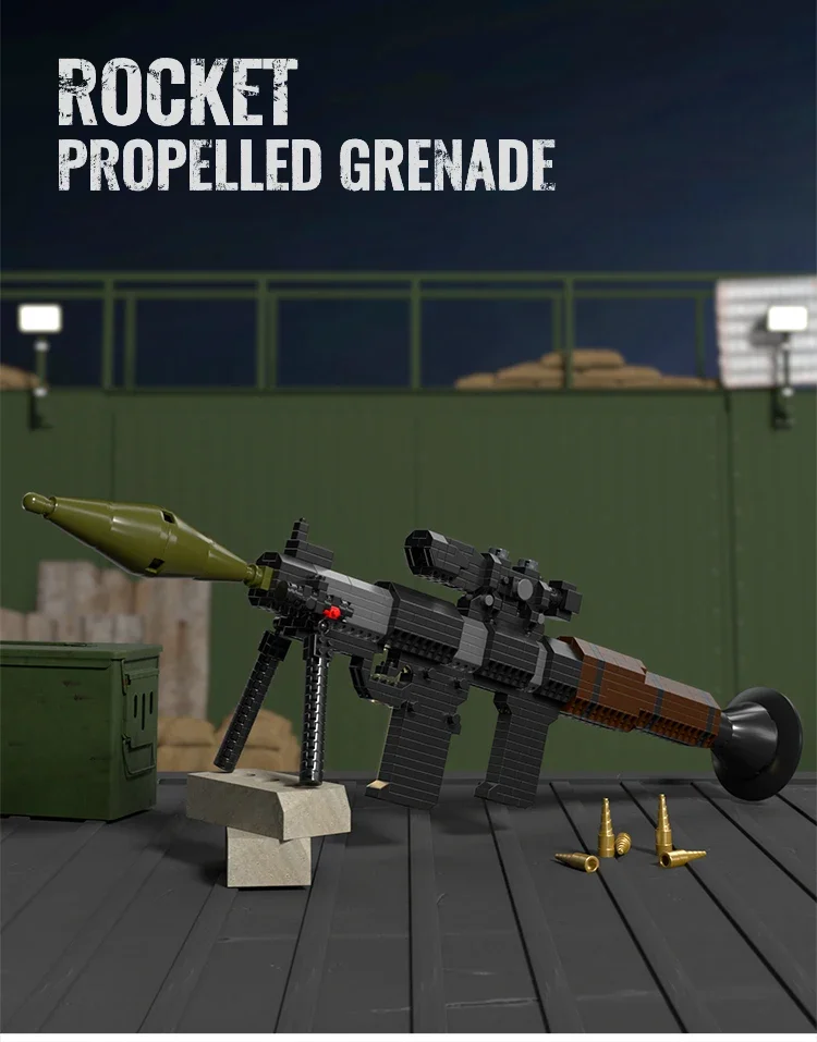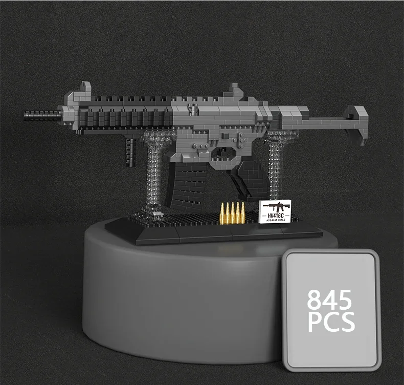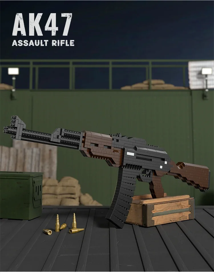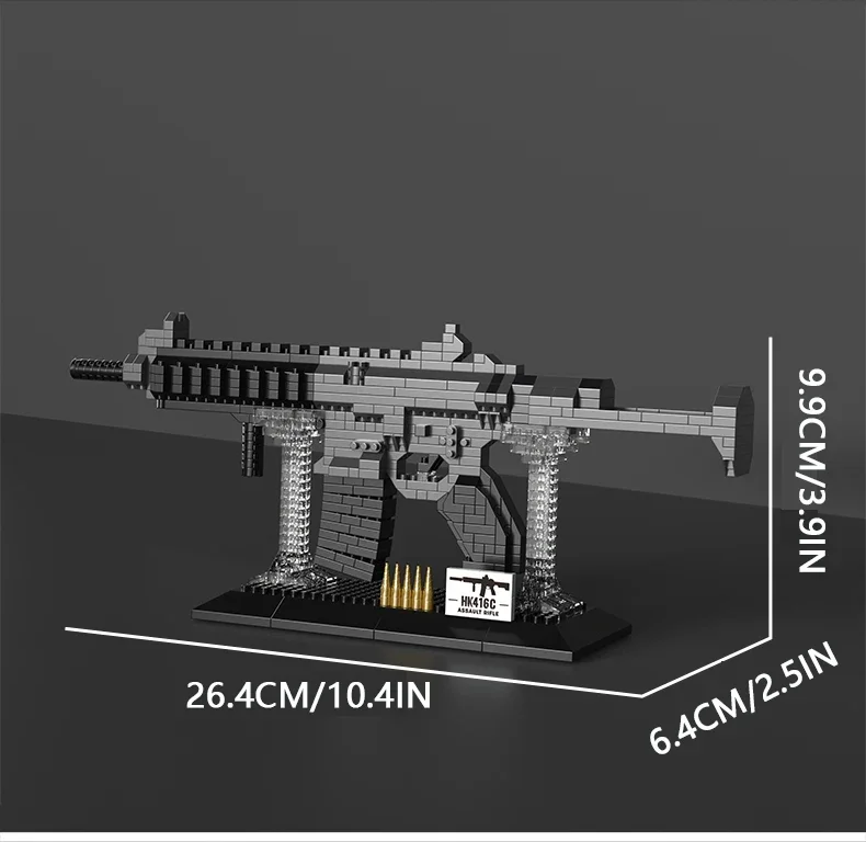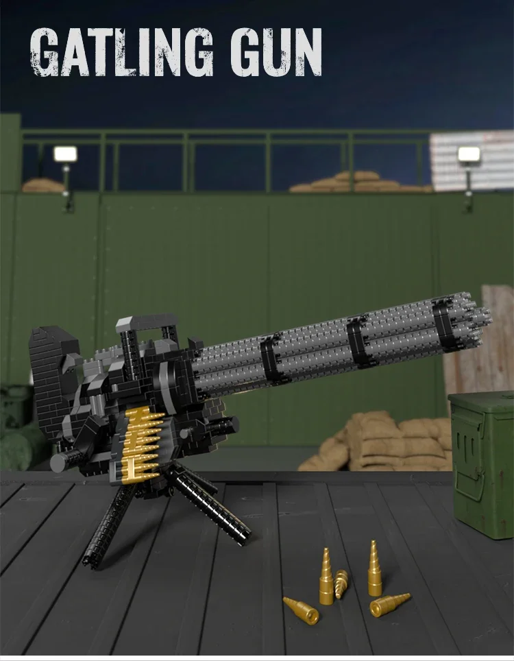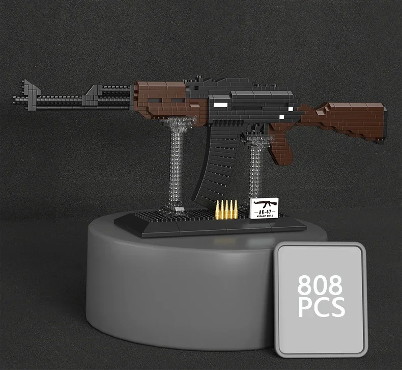 1. Bloques de construcción de submáquina de armas del ejército:Este juego de pistolas de juguete incluye un modelo de metralleta hecho de bloques de construcción, lo que brinda a los niños una forma única y creativa de ensamblar y jugar con su propia pistola de juguete.