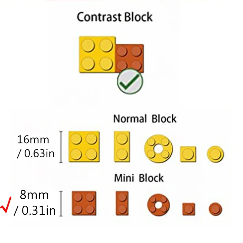 Bloques de construcción de micropartículas: no compatibles con los tamaños de bloques de construcción de marca