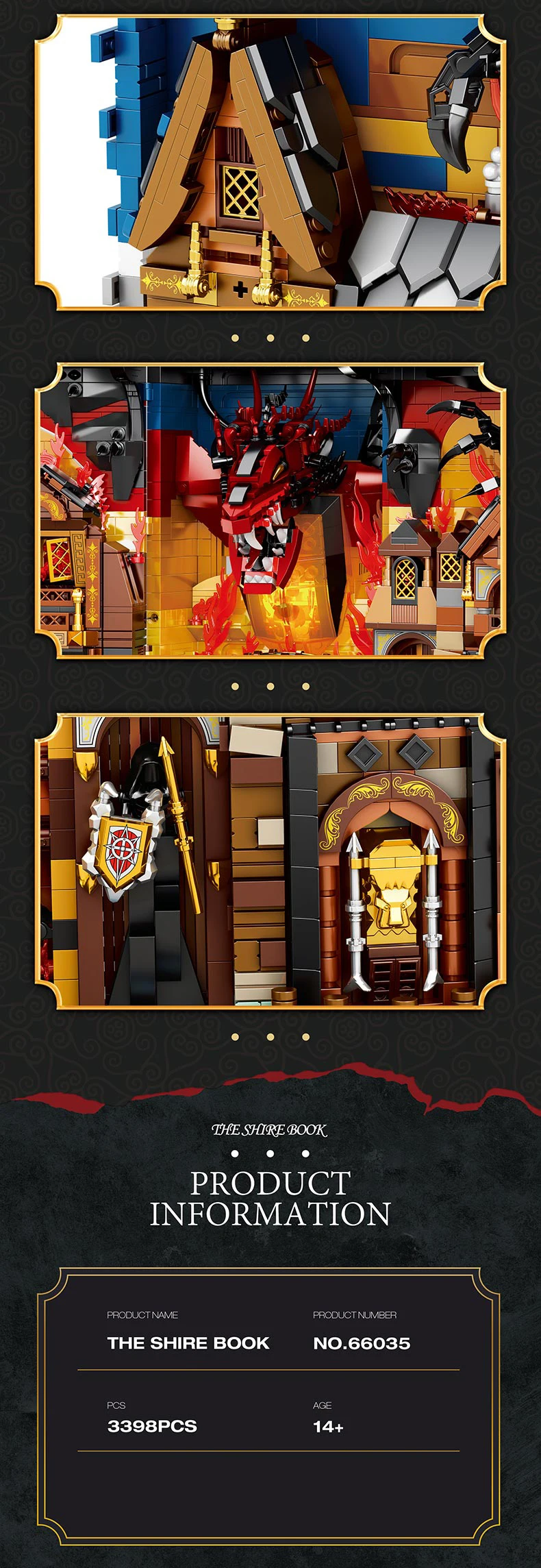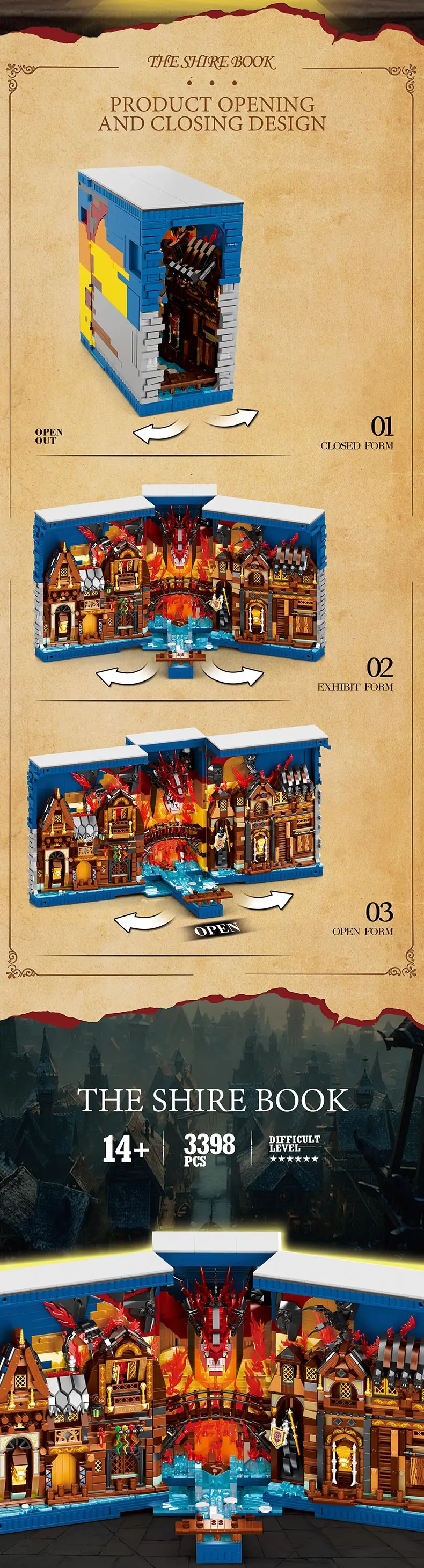 Con una forma original única, este juguete captura la esencia del mundo Hobbit.Cuenta con elementos icónicos como casas con puertas redondas, vegetación exuberante y caminos sinuosos, con cálidos tonos terrosos que restablecen el ambiente acogedor de los pueblos Hobbit.El diseño combina creatividad con autenticidad temática, atraerá tanto a los fanáticos como a los entusiastas de los bloques de construcción.