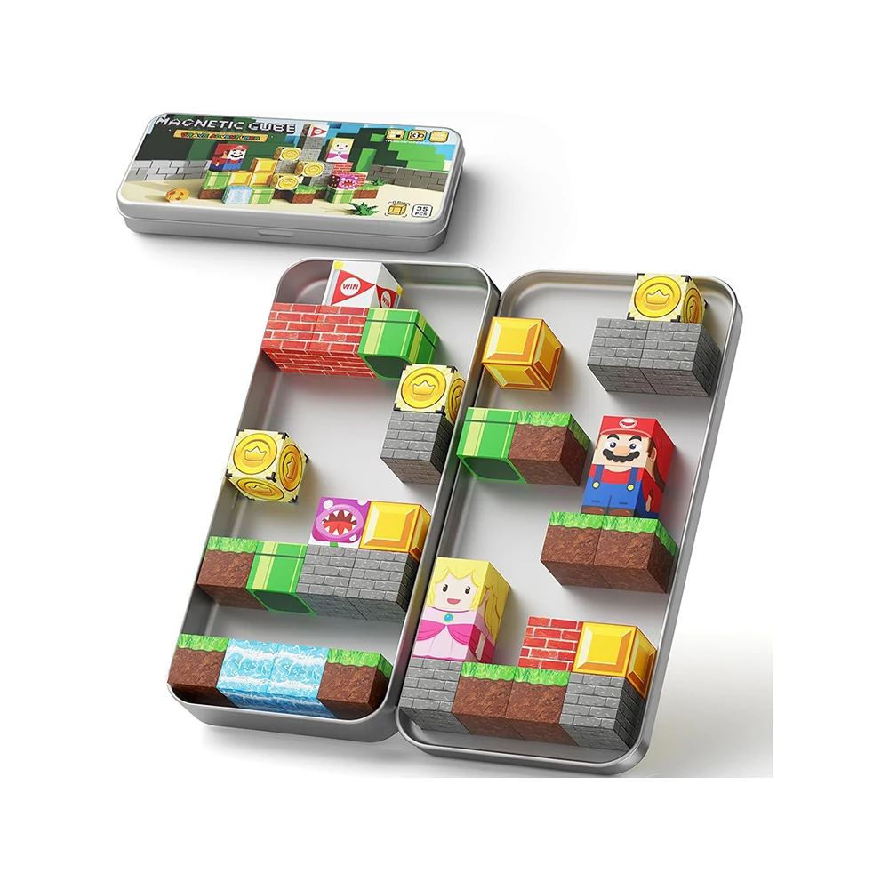 Comprar Bloques de construcción magnéticos para niños, juguetes de viaje de ingeniería STEM con caja de hierro portátil, juego de construcción educativa para niños pequeños