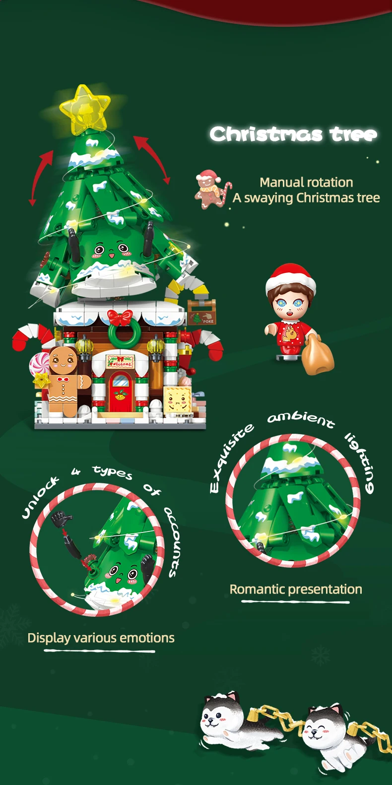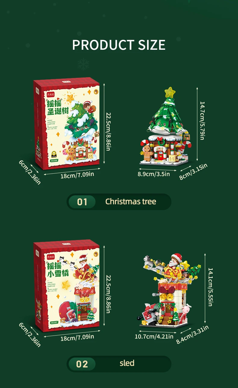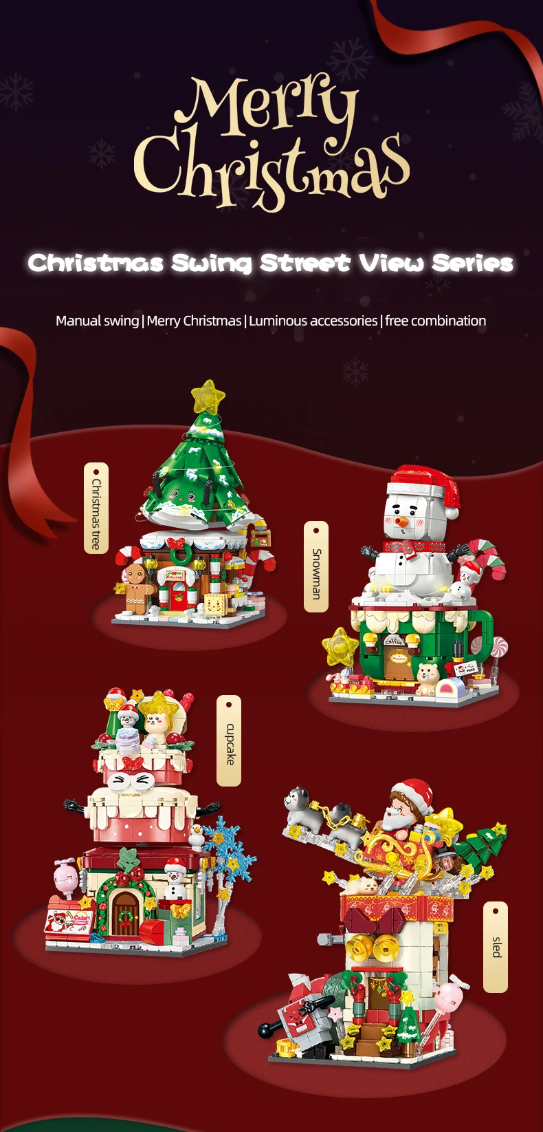 1. Diversión interactiva: Nuestros bloques de construcción de la serie Christmas Streetview traen alegría y emoción a los niños mientras giran y giran manualmente las piezas. También pueden balancearse y moverse, agregando una capa adicional de disfrute al tiempo de juego.
