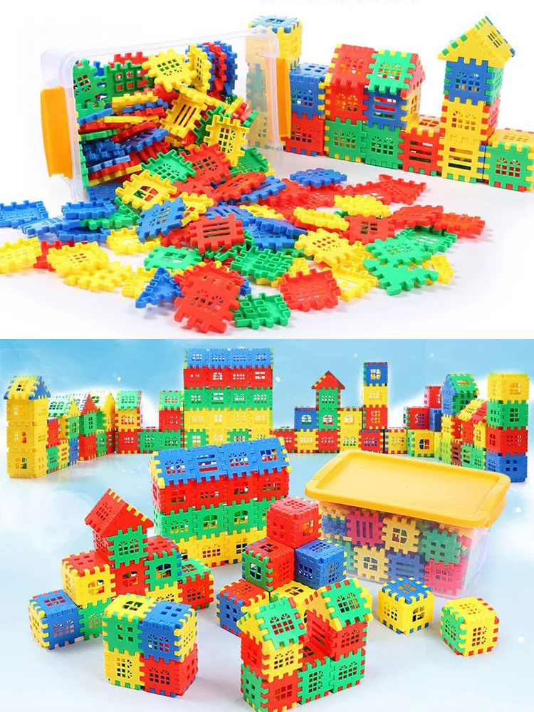 Comprar Bloques de construcción de plástico de colores para niños, rompecabezas de juguete de 3 a 6 años, montaje de casa, inserción, regalo de cumpleaños para niñas y niños TMZ