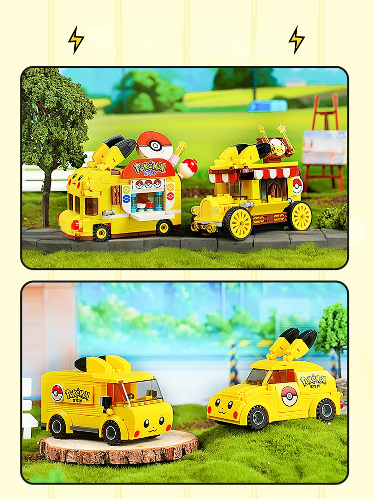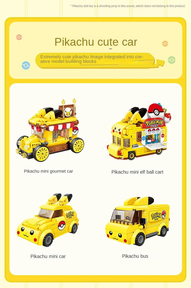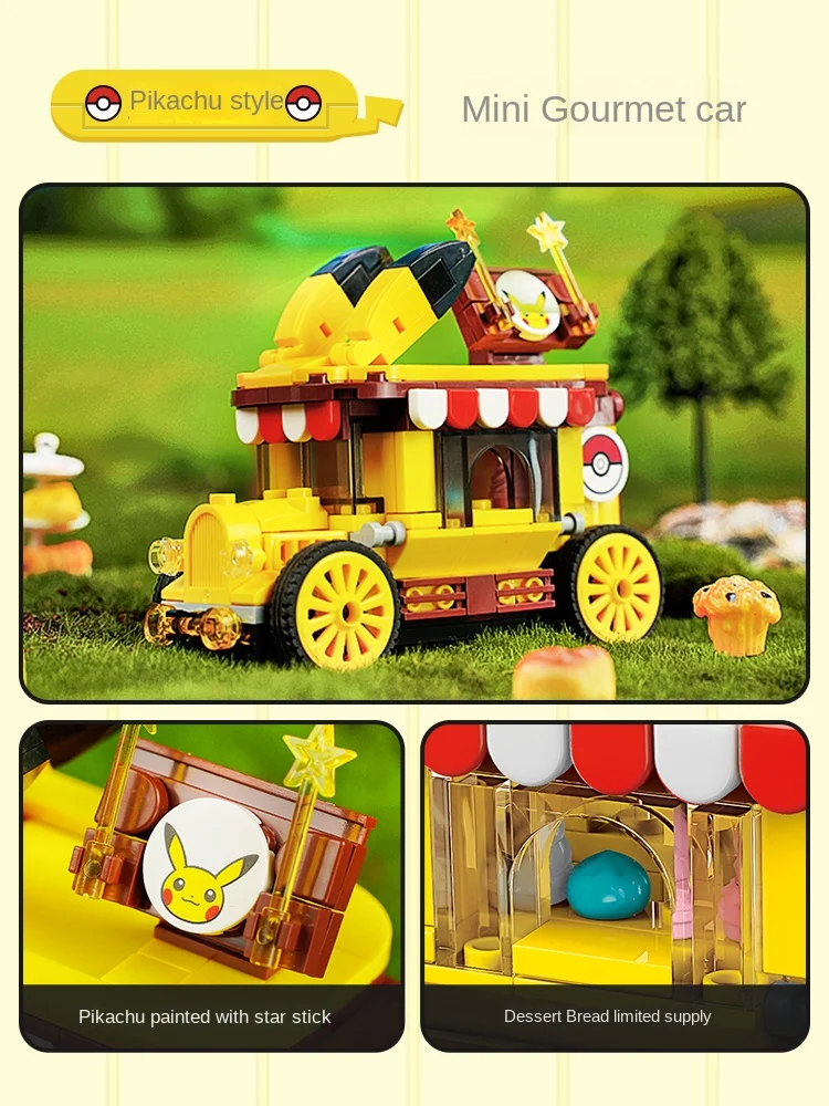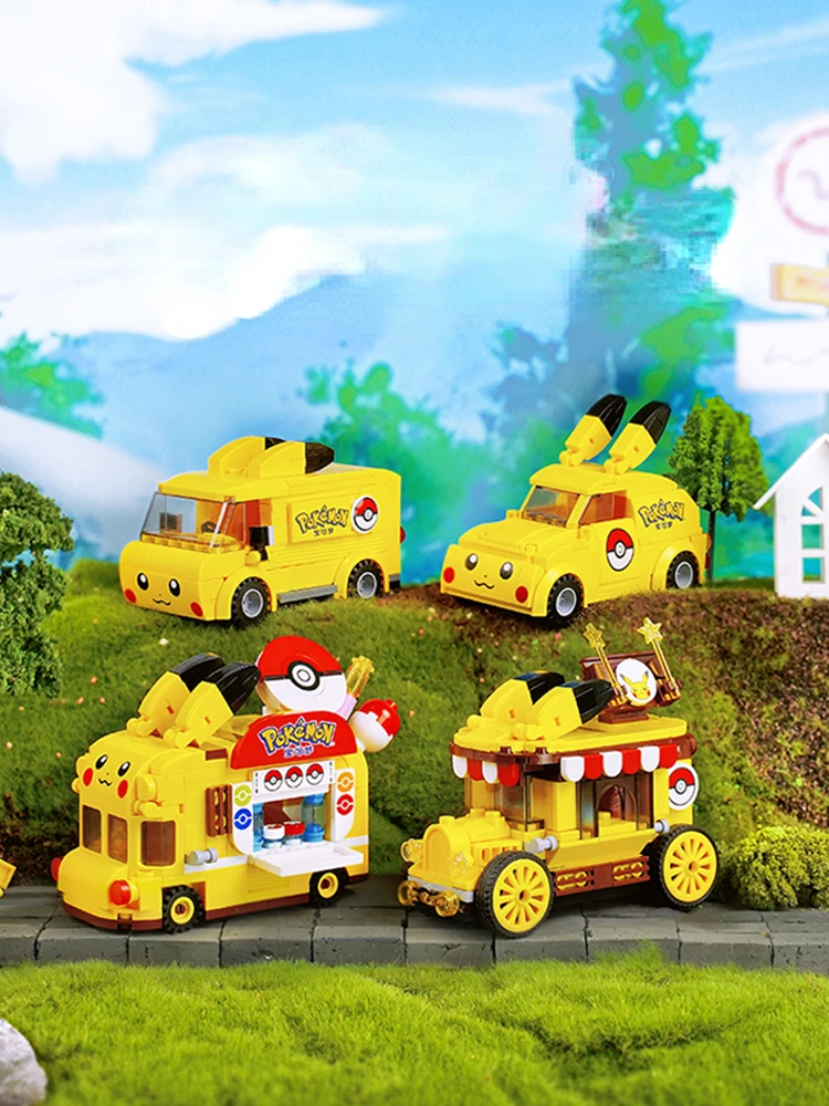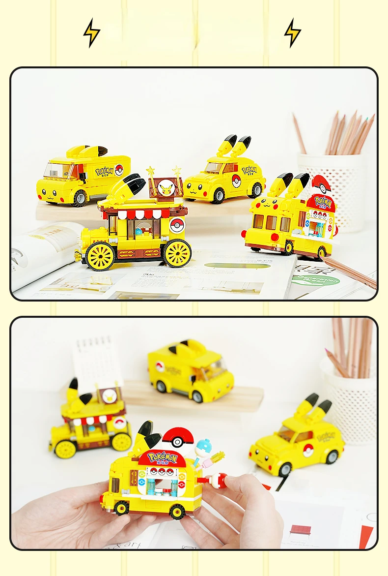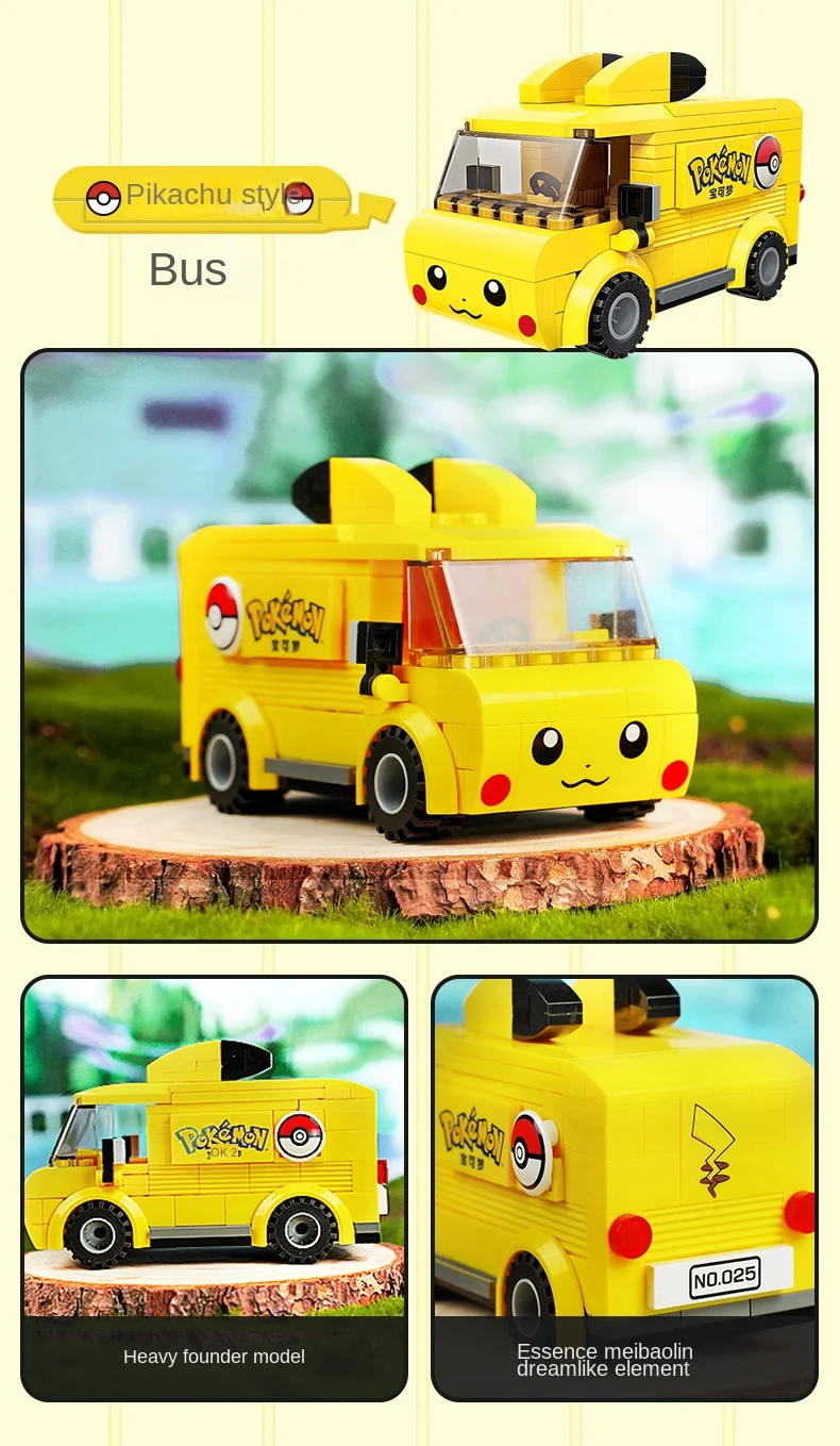 Bloques de construcción de Pokémon Pikachu, Mini coche de comida, autobús, bloques, decoración de escritorio, adornos, juguetes DIY para niños, regalos de vacaciones