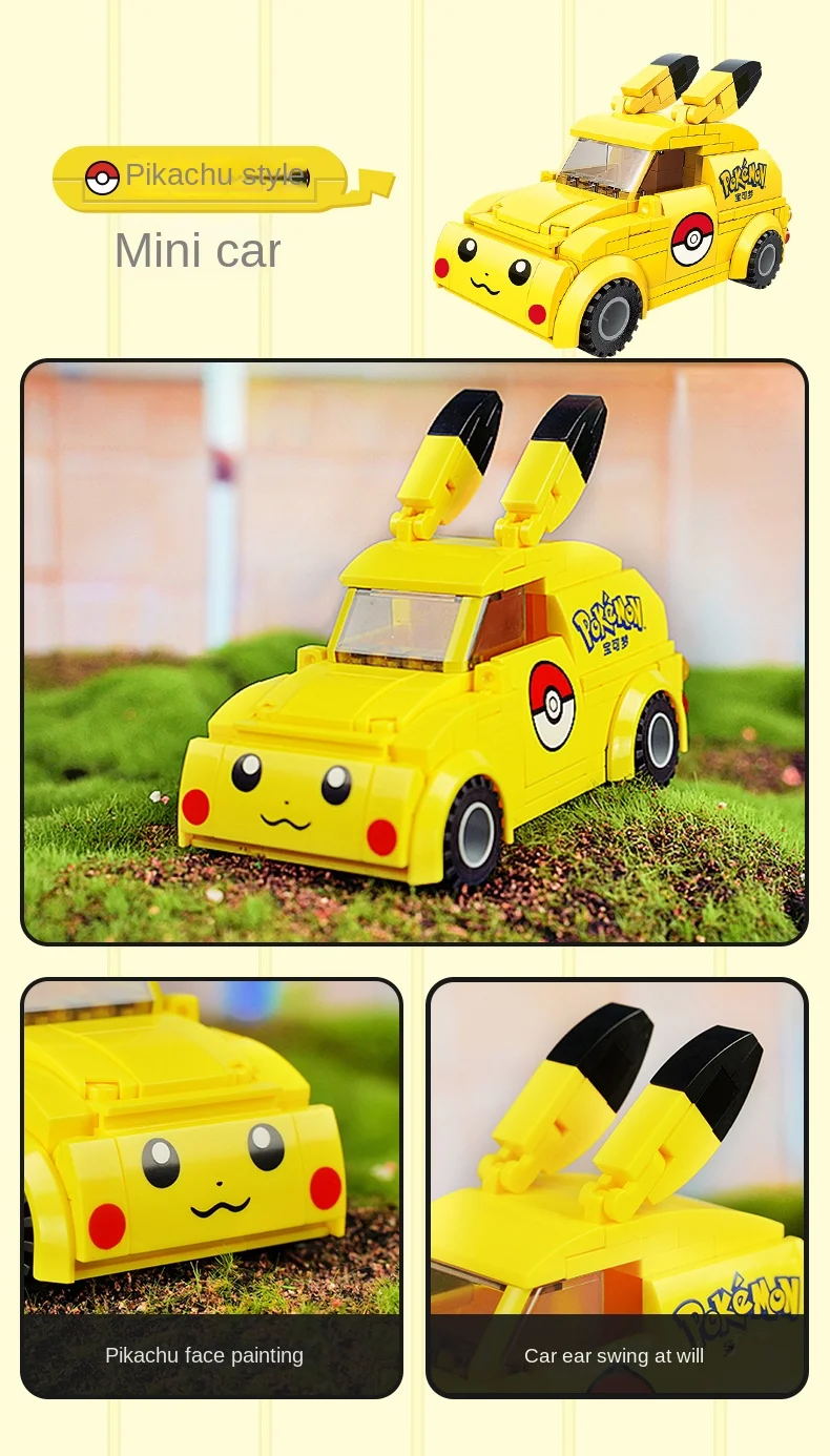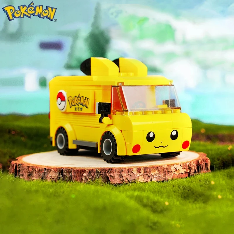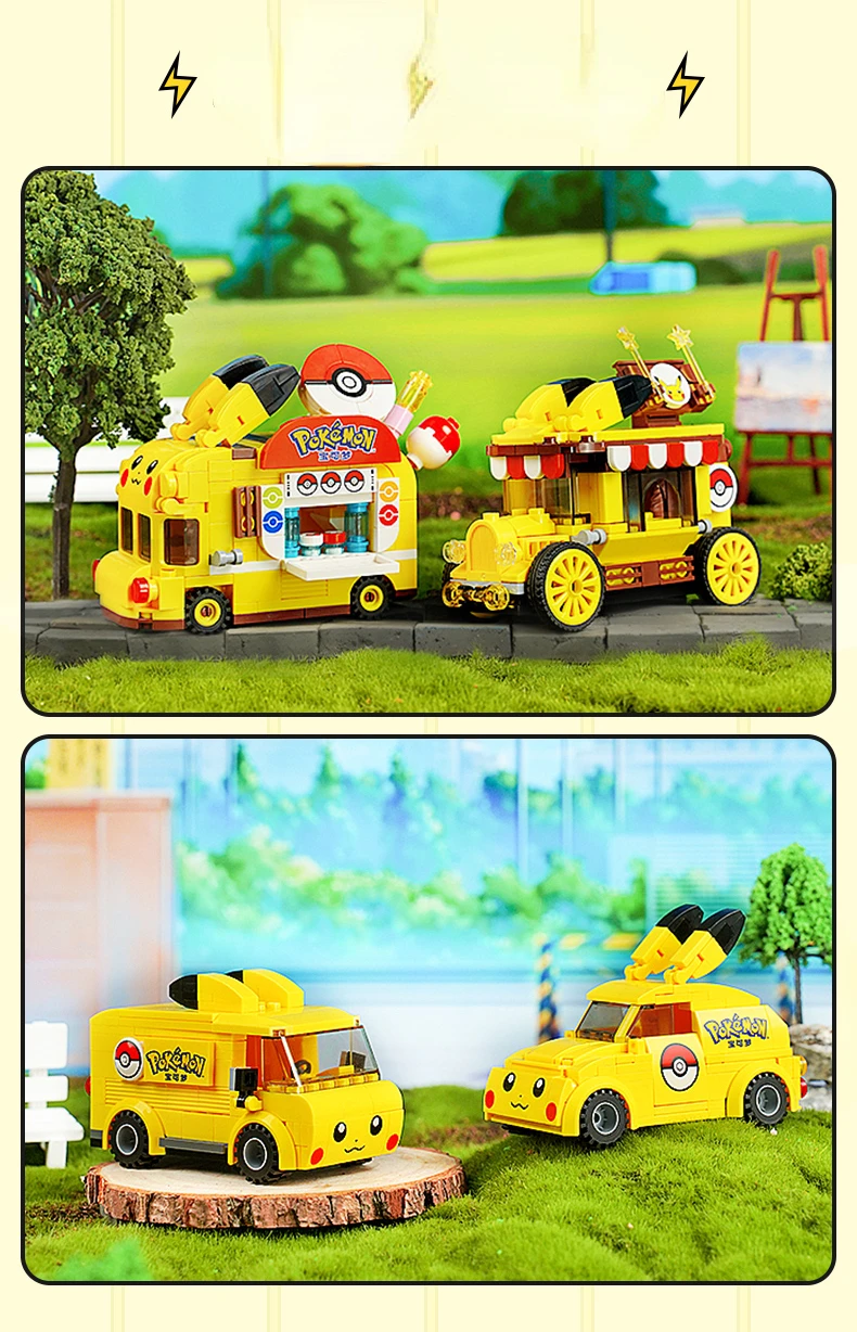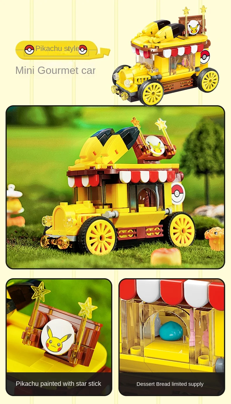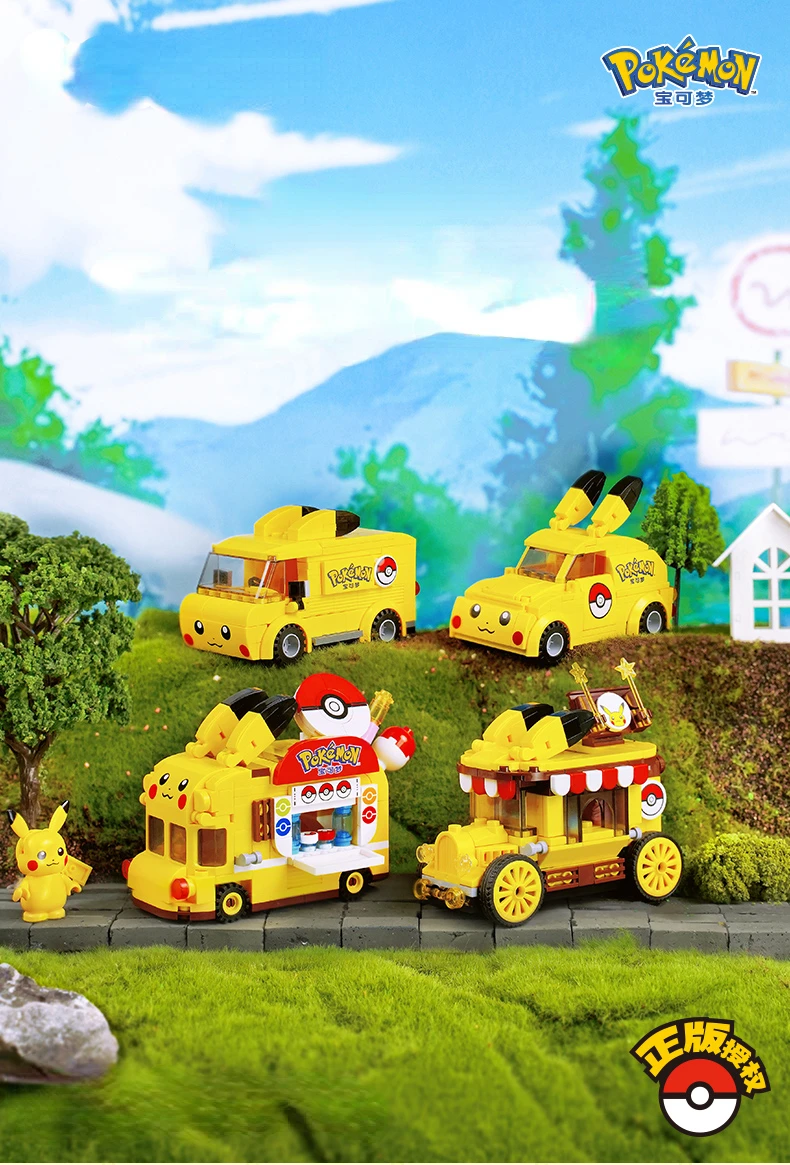 Bloques de construcción de Pokémon Pikachu, Mini coche de comida, autobús, bloques, decoración de escritorio, adornos, juguetes DIY para niños, regalos de vacaciones