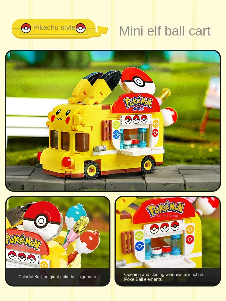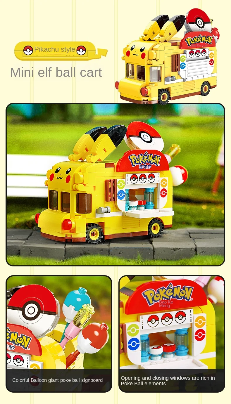 Comprar Bloques de construcción de Pokémon Pikachu, Mini coche de comida, autobús, bloques, decoración de escritorio, adornos, juguetes DIY para niños, regalos de vacaciones