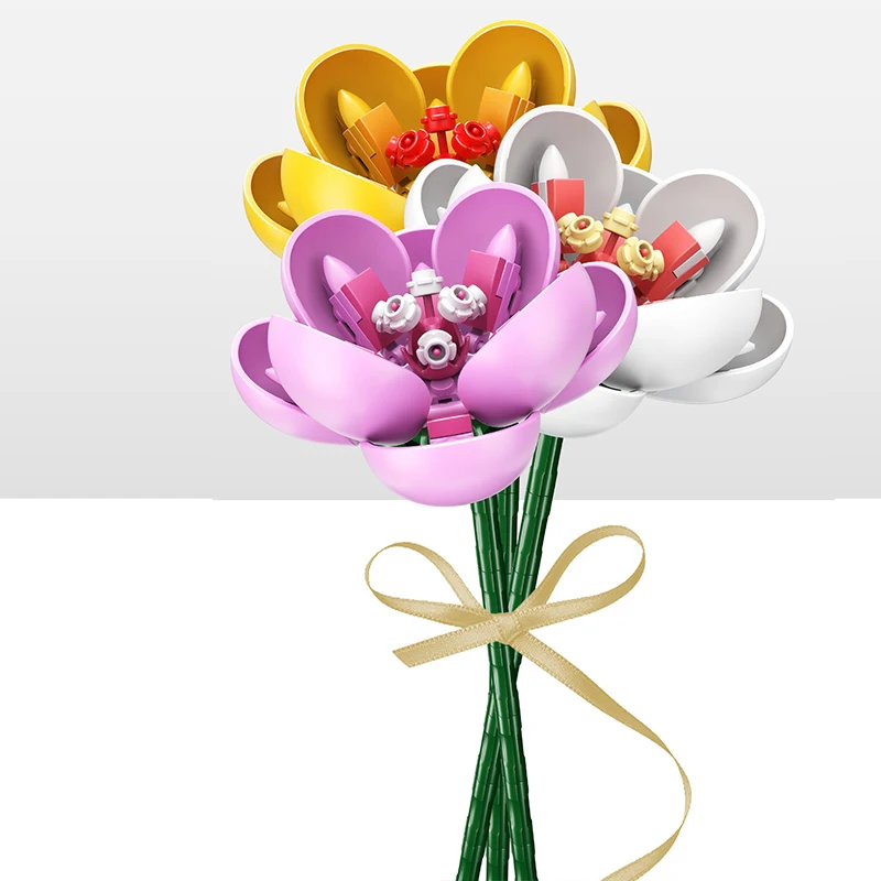Comprar Bloques de construcción de ramo de flores rosas para niños, Kit de construcción romántico, bloques MOC, placa base, juguetes para niños, navidad