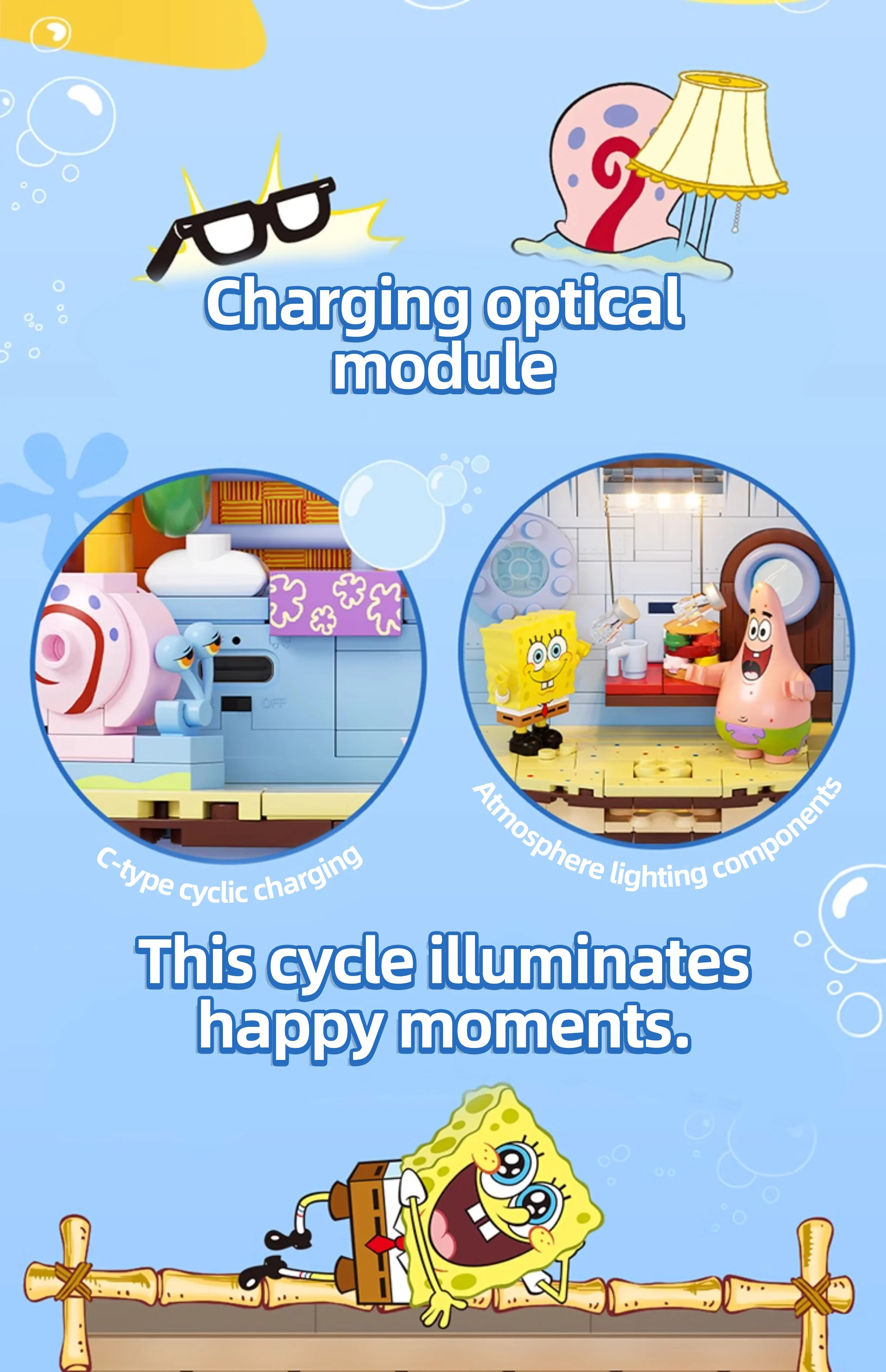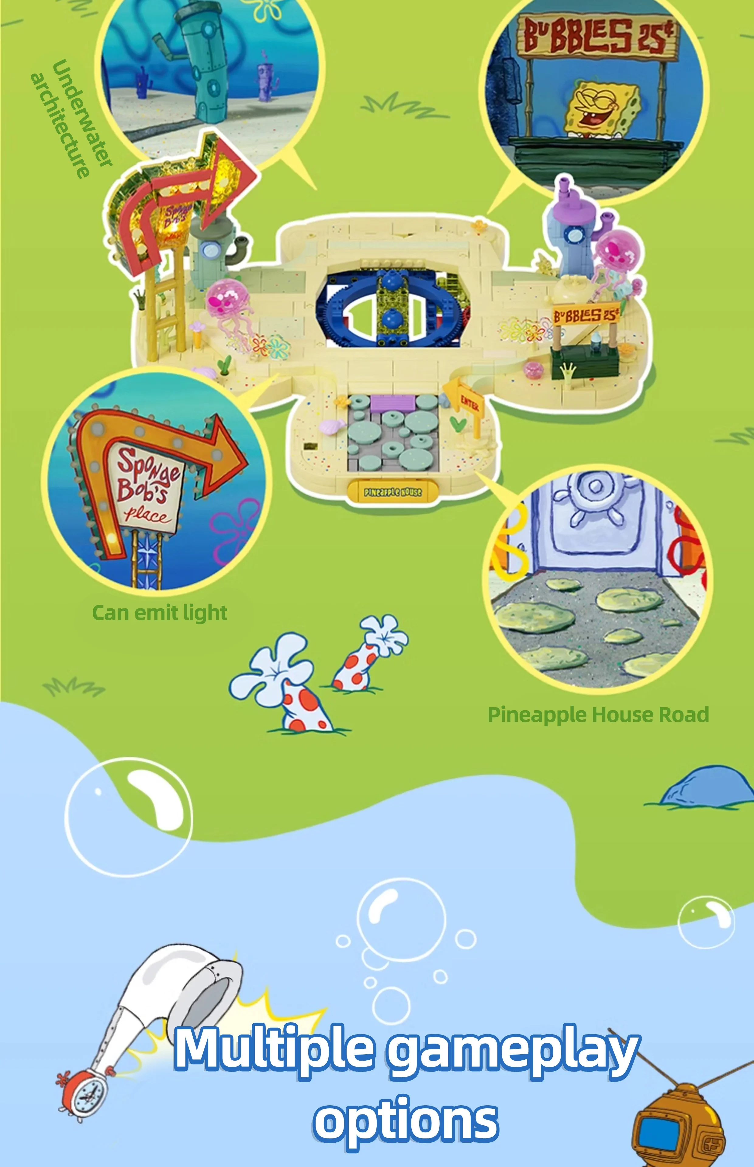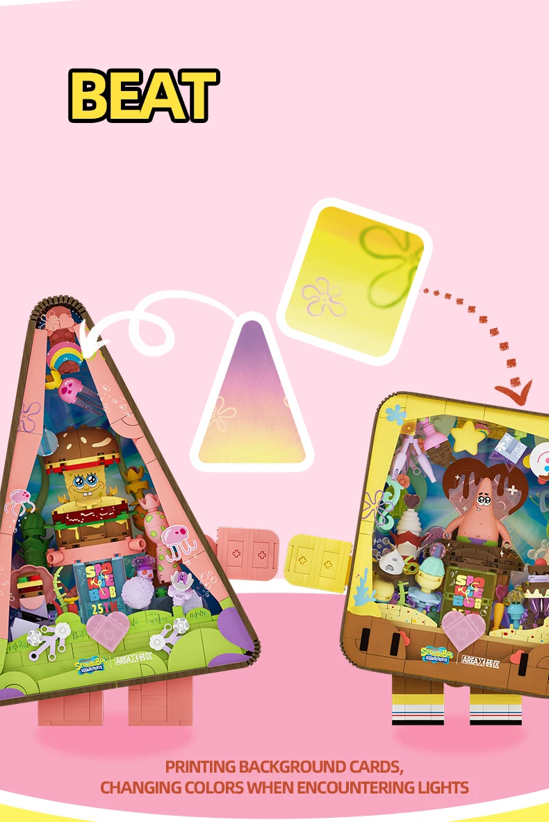 ✨Versatile Decoration: Not only is this set perfect for playtime, but it also serves as a unique desktop ornament. The vibrant colors, detailed design, and LED lights make it a delightful addition to any room decor. Let the Spongebob world brighten up your surroundings!