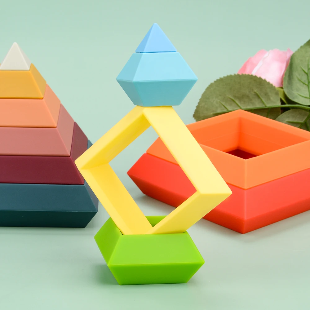 Bloques de construcción de silicona para niños, juguetes de aprendizaje educativo, IQ, Montessori, mejora la percepción del Color, multifunción, sin BPA