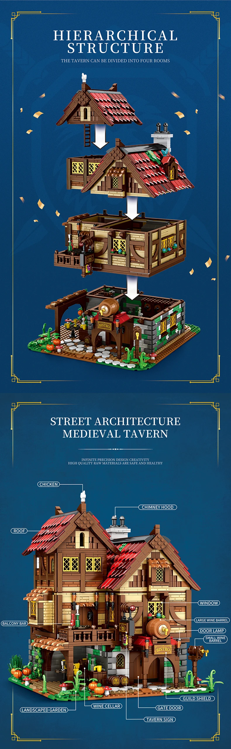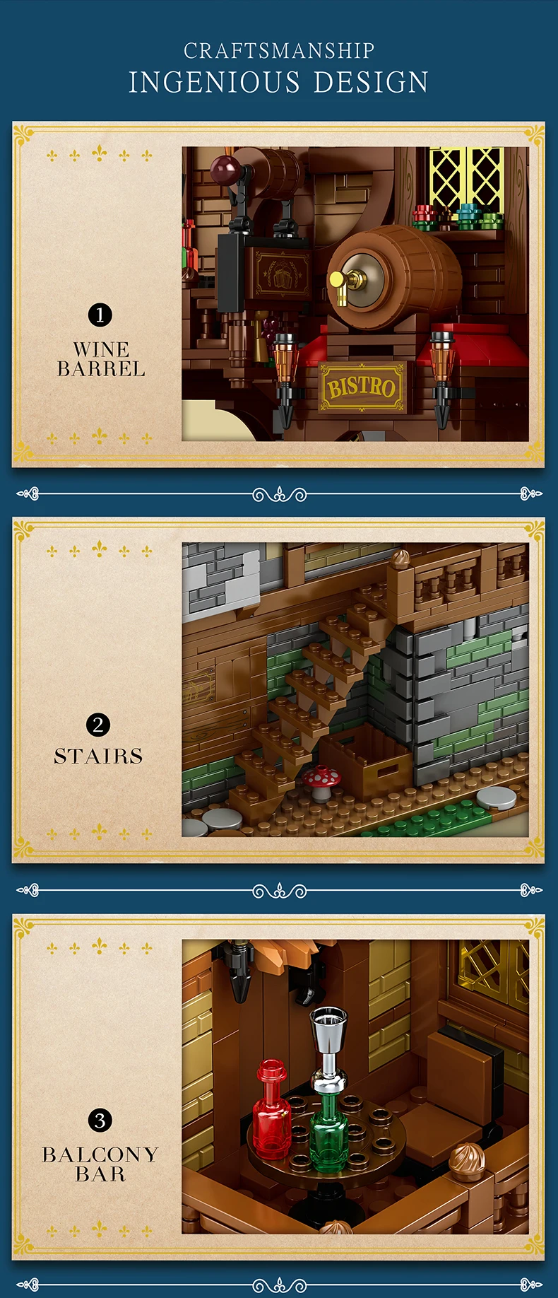 ✨:Diseño original: nuestros bloques de construcción de taverna medieval de 2868 piezas están meticulosamente diseñados teniendo en cuenta la originalidad.Cada pieza está cuidadosamente elaborada para garantizar una experiencia de construcción única y auténtica para usted o su hijo.