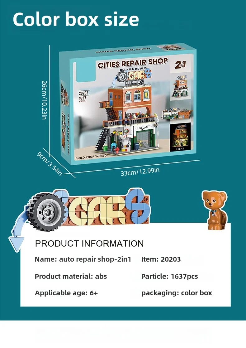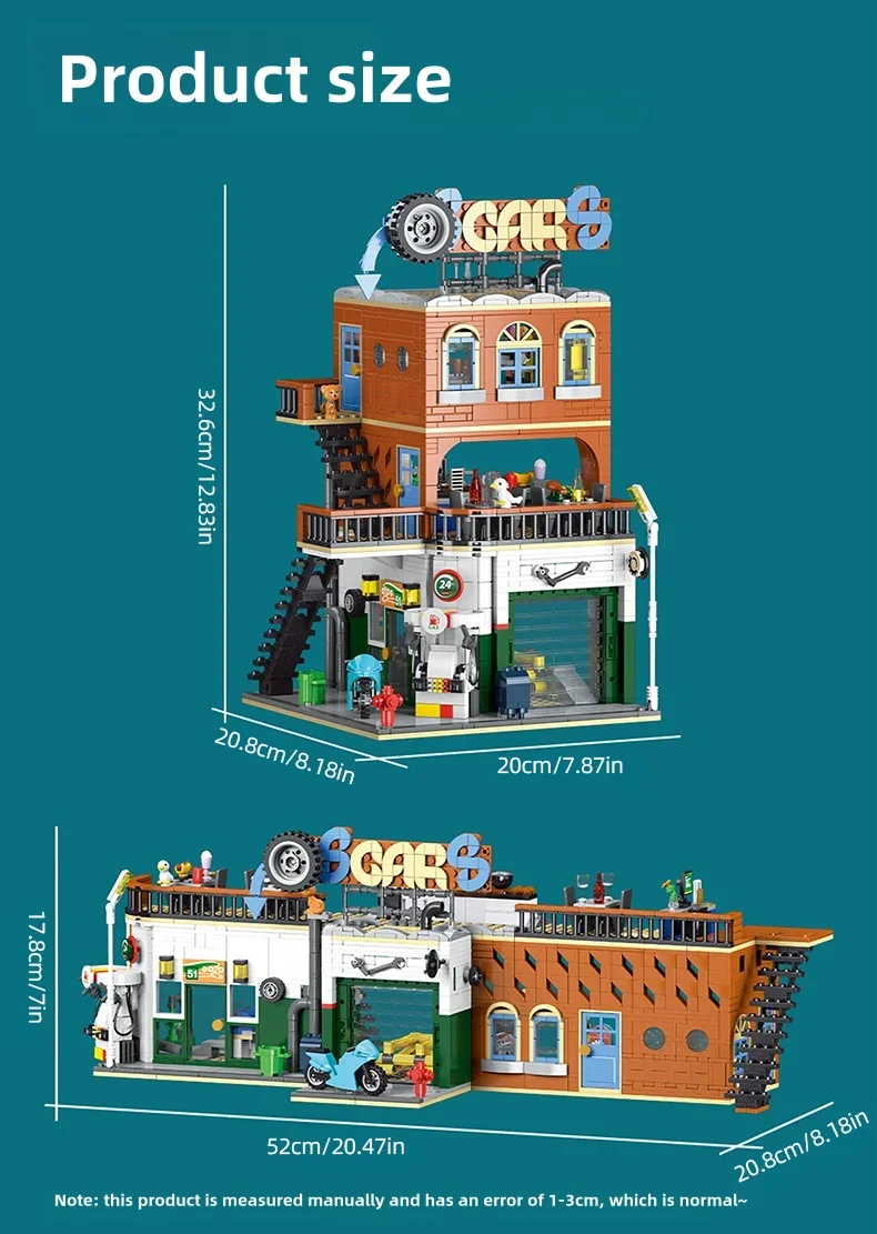 ✨Decoración de escritorio ideal: una vez ensamblado, este juego de bloques de construcción para taller de reparación de ciudades se convierte en una decoración de escritorio llamativa.Su tamaño compacto lo hace adecuado para exhibir en escritorios, estantes o cualquier espacio pequeño.Sirve como juguete funcional y como accesorio elegante que añade encanto a cualquier habitación.
