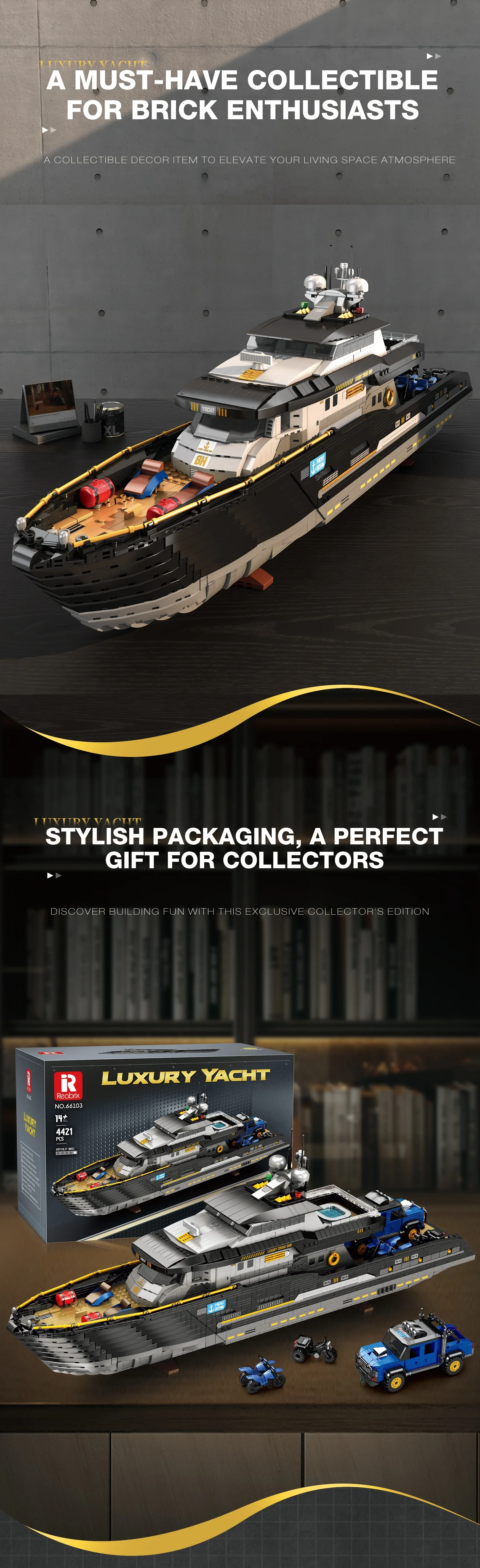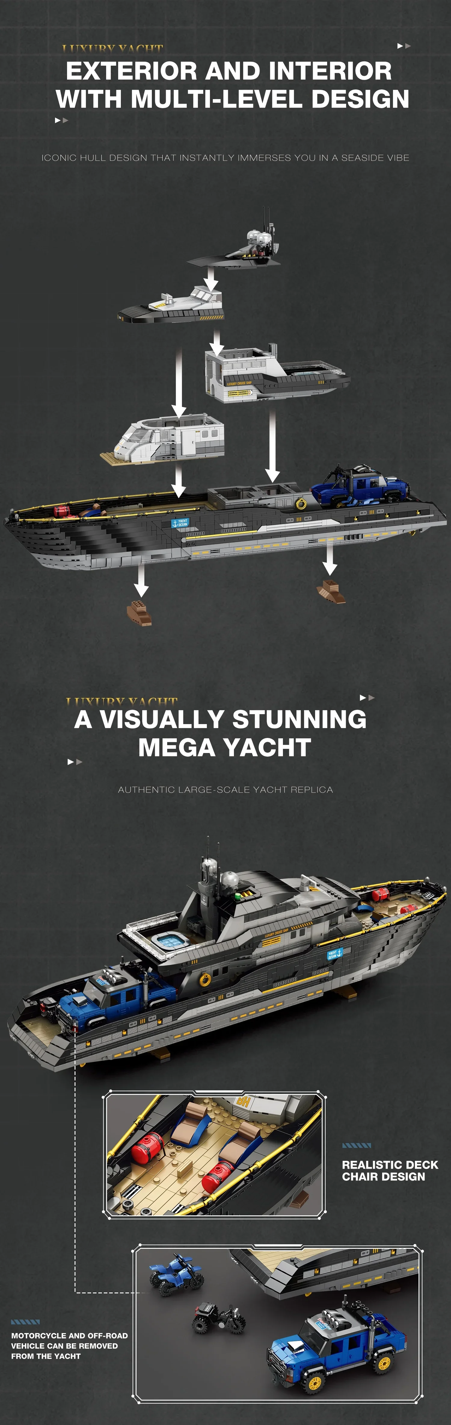 Comprar Bloques de construcción de yate de lujo para niños, lancha motora, coche de crucero con soporte de exhibición, adornos de escritorio, juguetes educativos DIY, regalos, 4421 Uds.