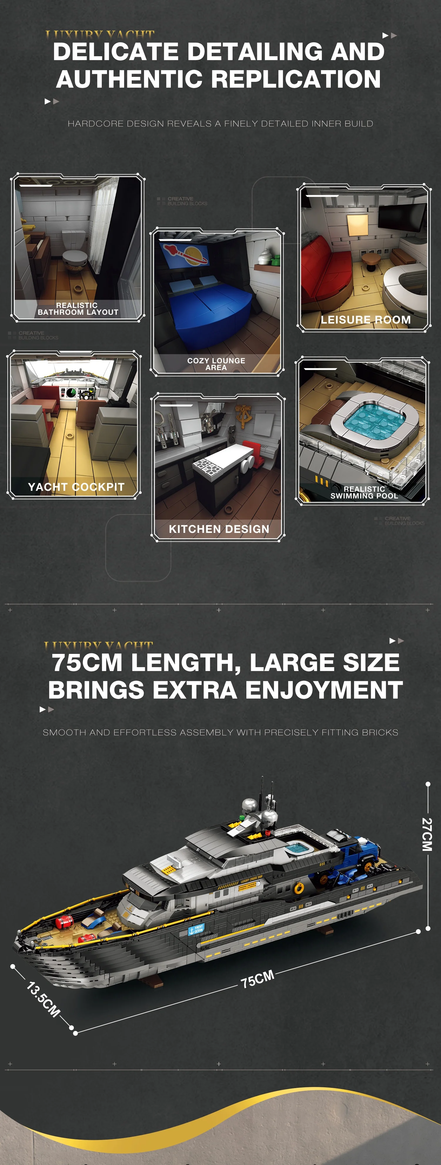 Construya un impresionante modelo de yate de lujo de 75 cm (29,5") con 4421 ladrillos premium, ¡la pieza de exhibición definitiva para los entusiastas marítimos!