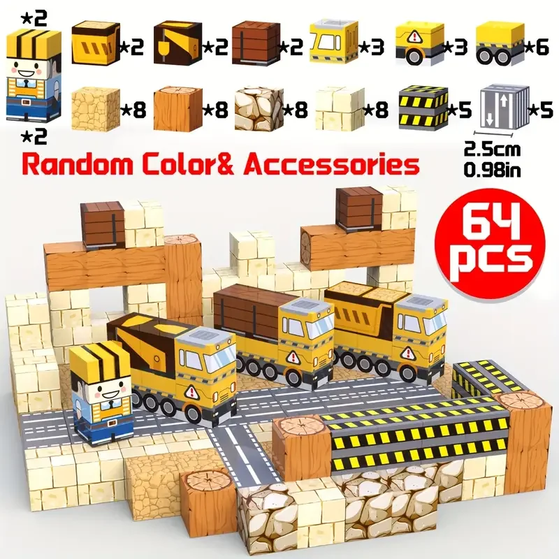 Bloques magnéticos de 2,0 cm, bloques de construcción magnéticos, carretera con pista, vehículos de construcción, juguete de construcción STEM