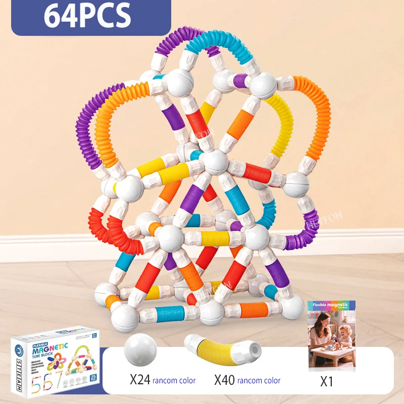 Bloques magnéticos para niños pequeños, juguetes de construcción, agarre suave, palos magnéticos flexibles, juego de construcción, vástago de aprendizaje, juguetes sensoriales preescolares