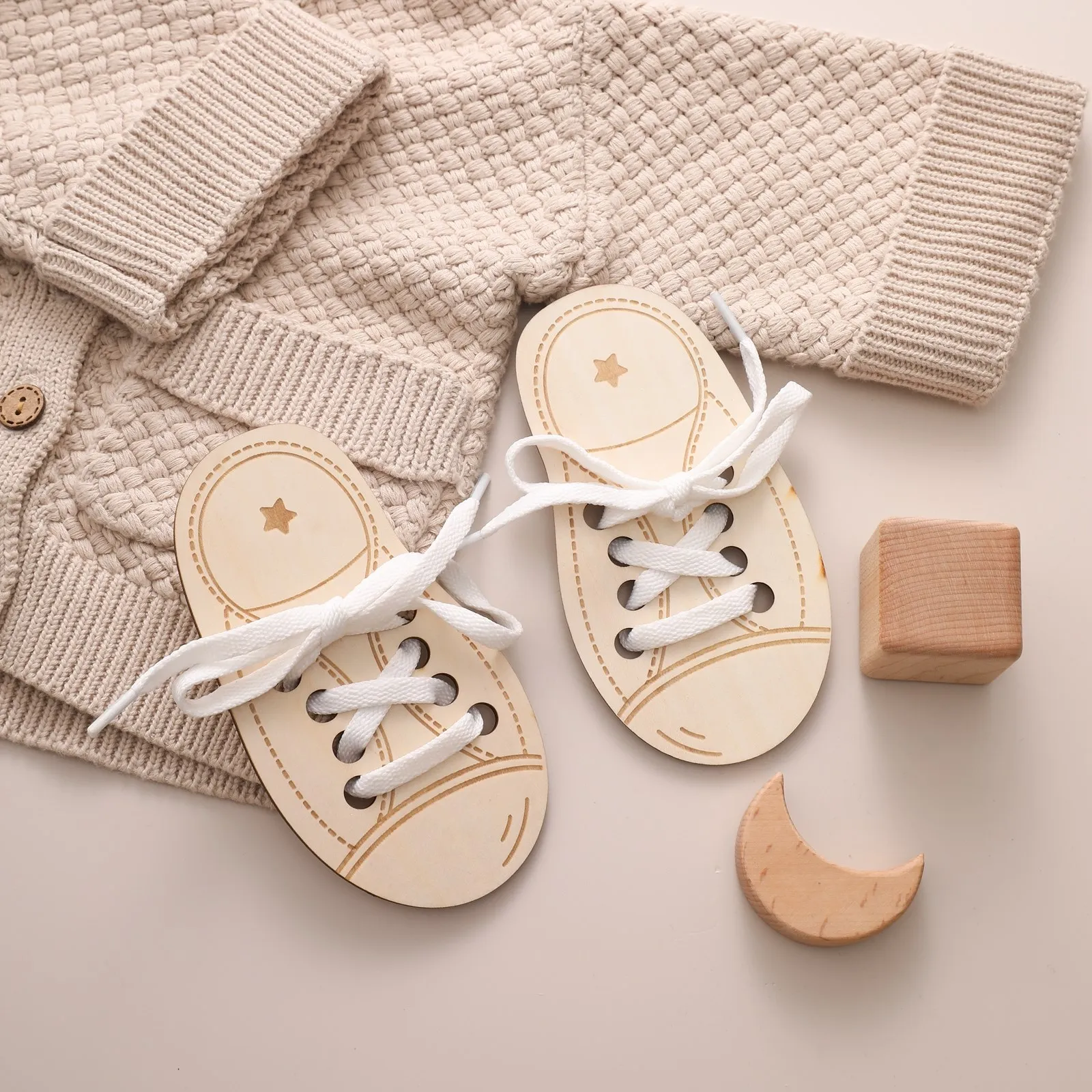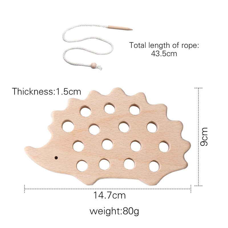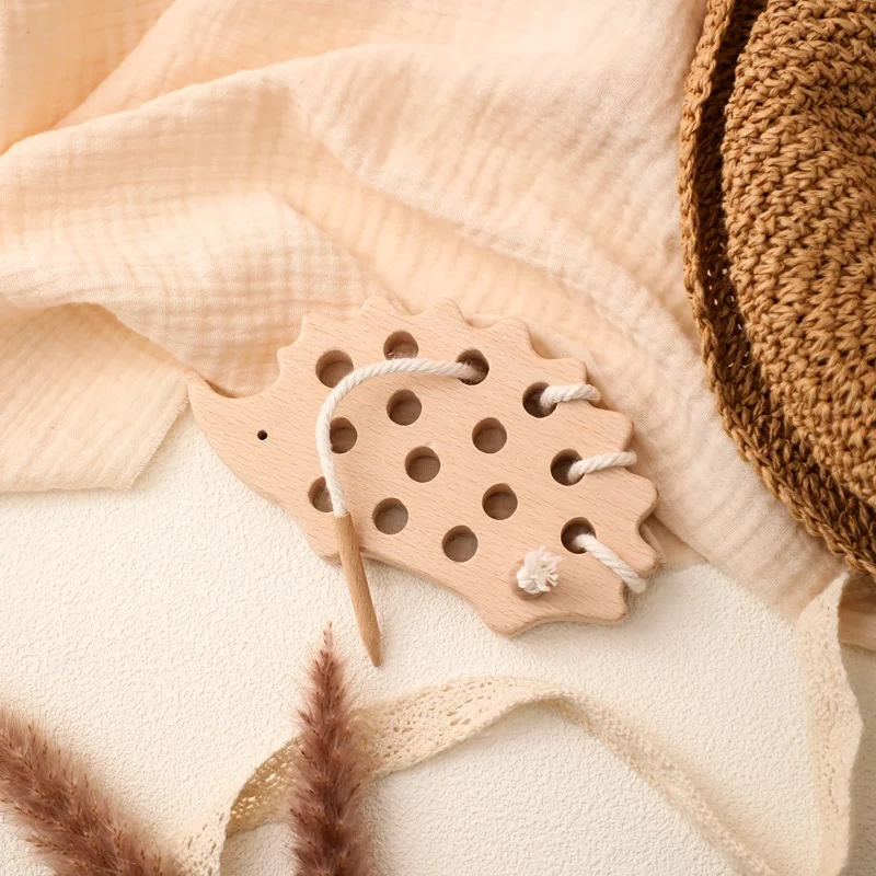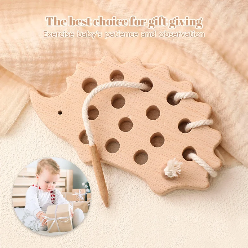 Bloques de enhebrado Montessori de madera para bebé, tablero de erizo de madera de haya, juguete creativo, habilidad práctica, regalos educativos para niños