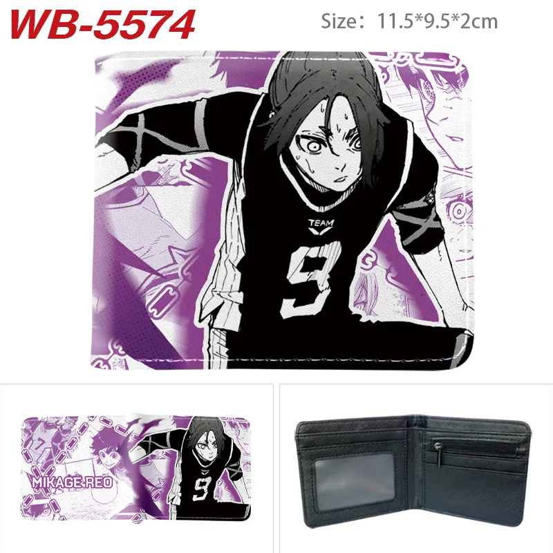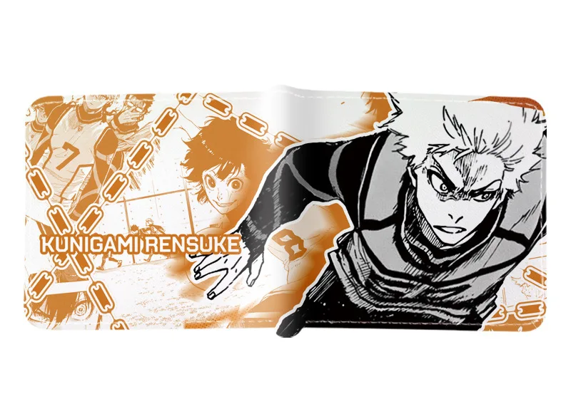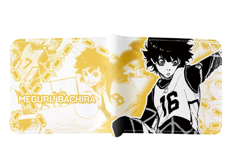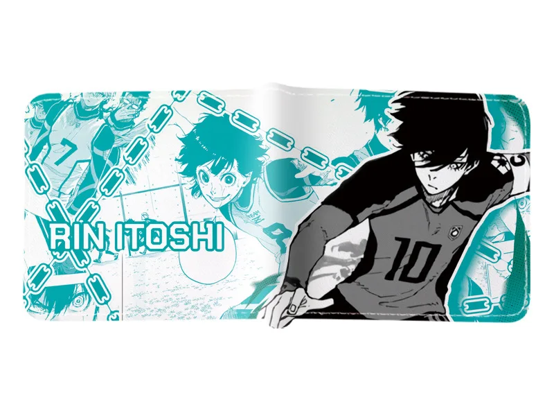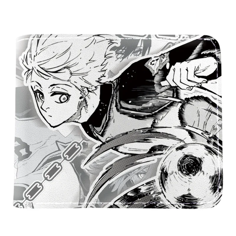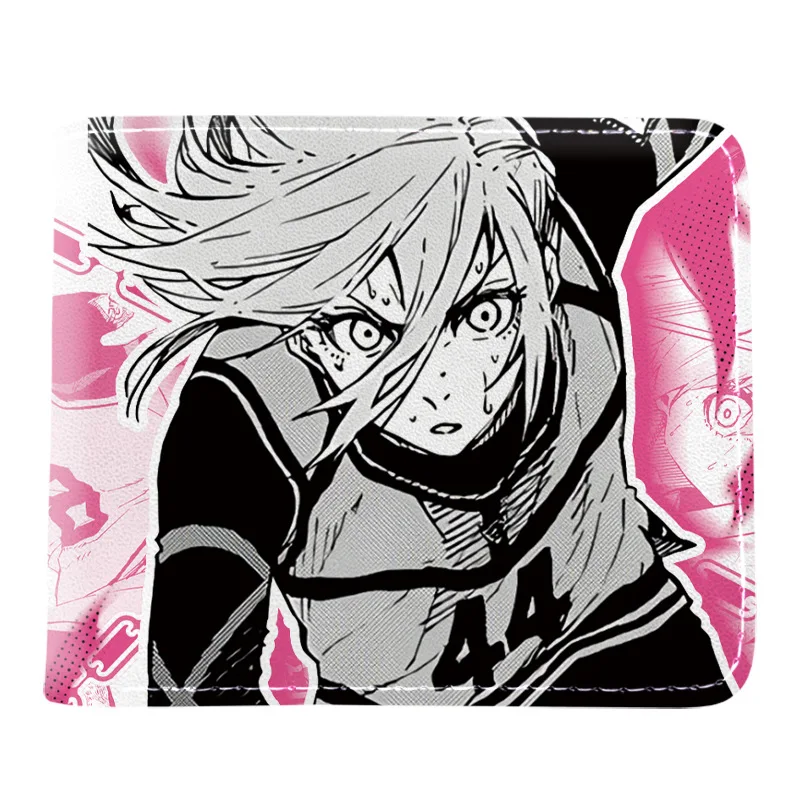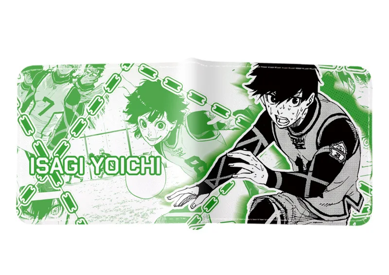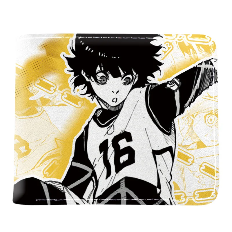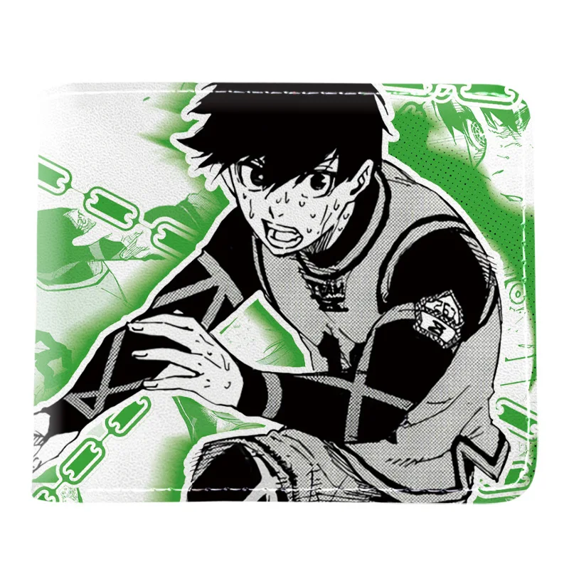 BLUE LOCK Isagi Yoichi Cartera corta de cuero PU Cartera con estampado de anime Cartera delgada portátil Carteras de cuero suave minimalistas plegables