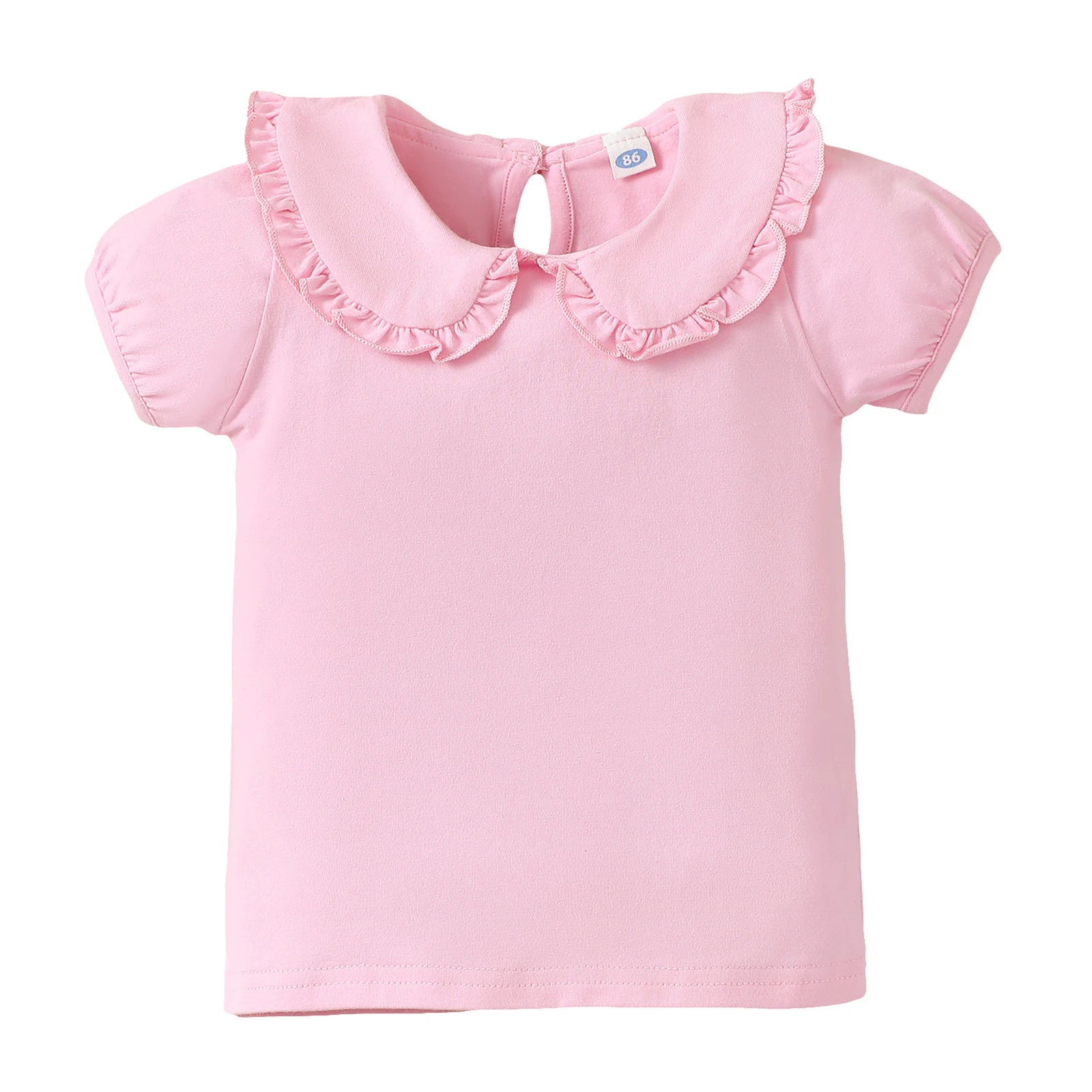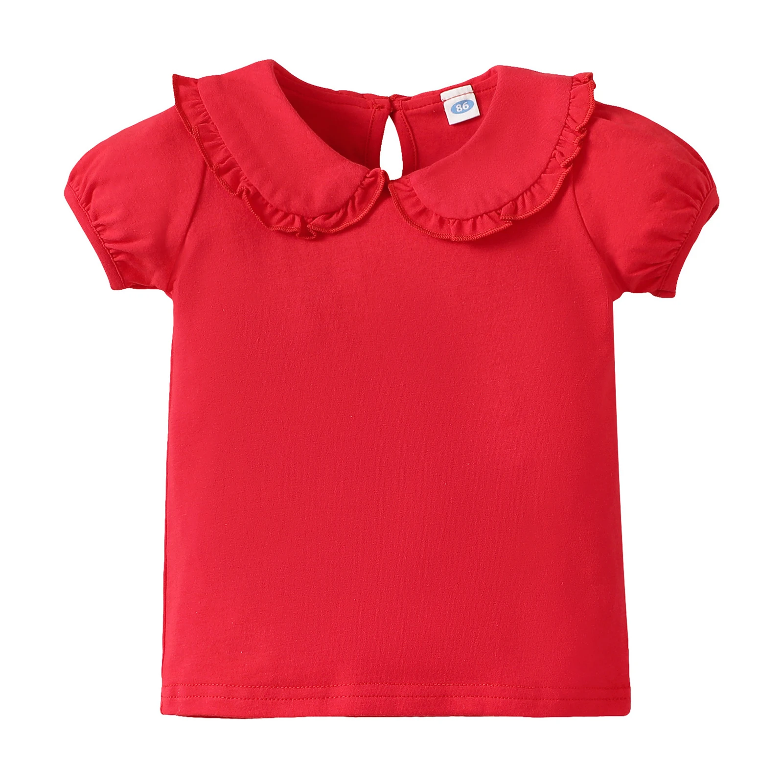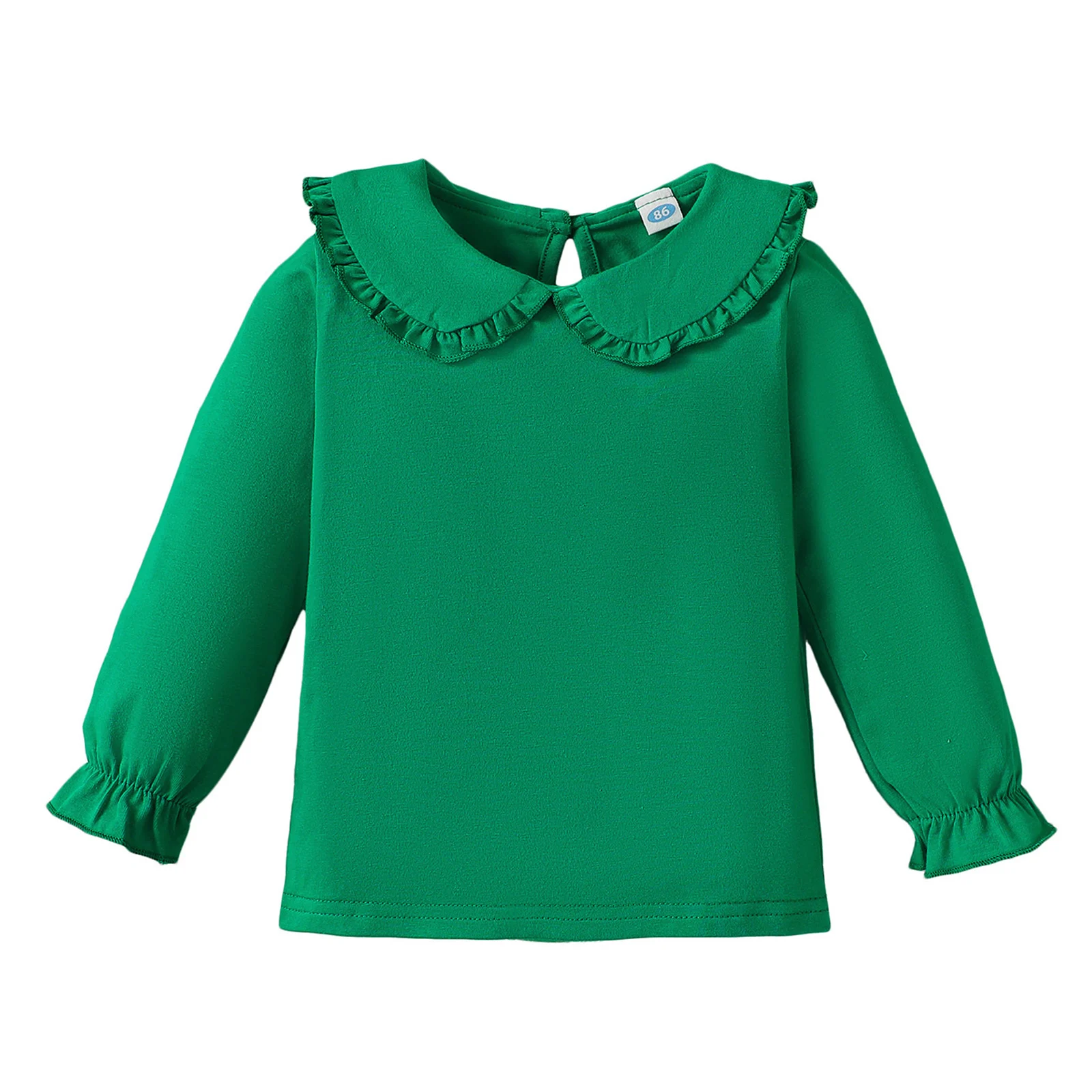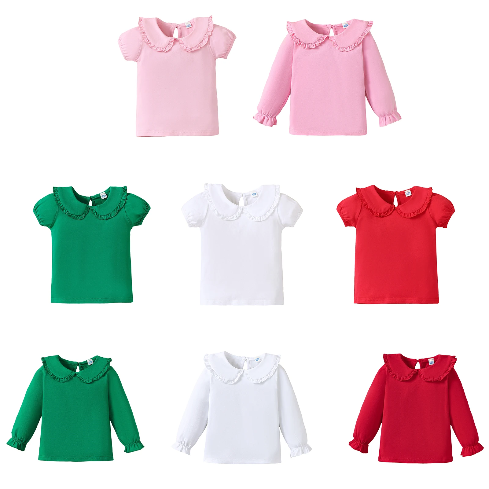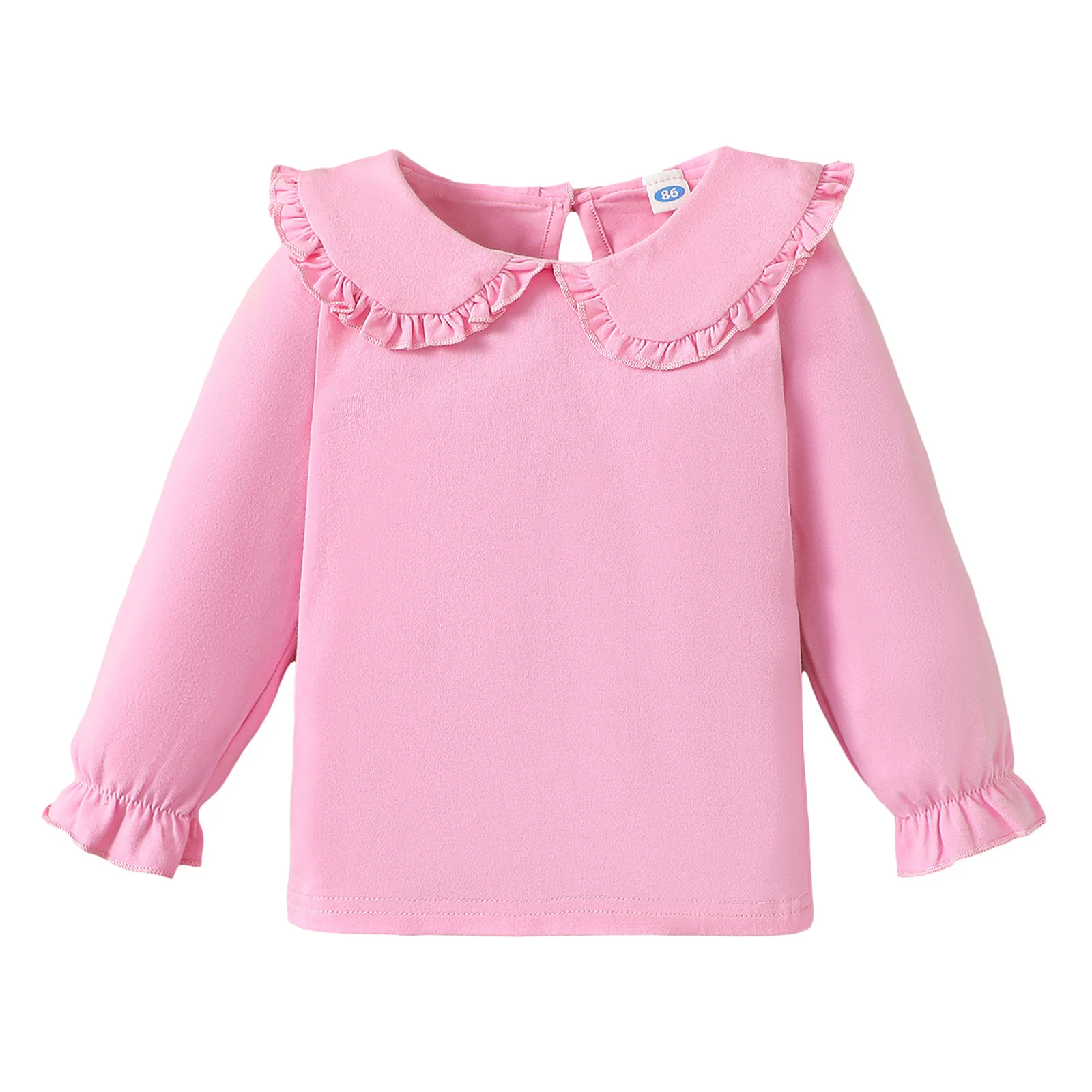 Comprar Blusa de algodón suave con cuello de volantes para niñas pequeñas, camiseta de Color sólido, bonita, ropa de uso diario, escuela