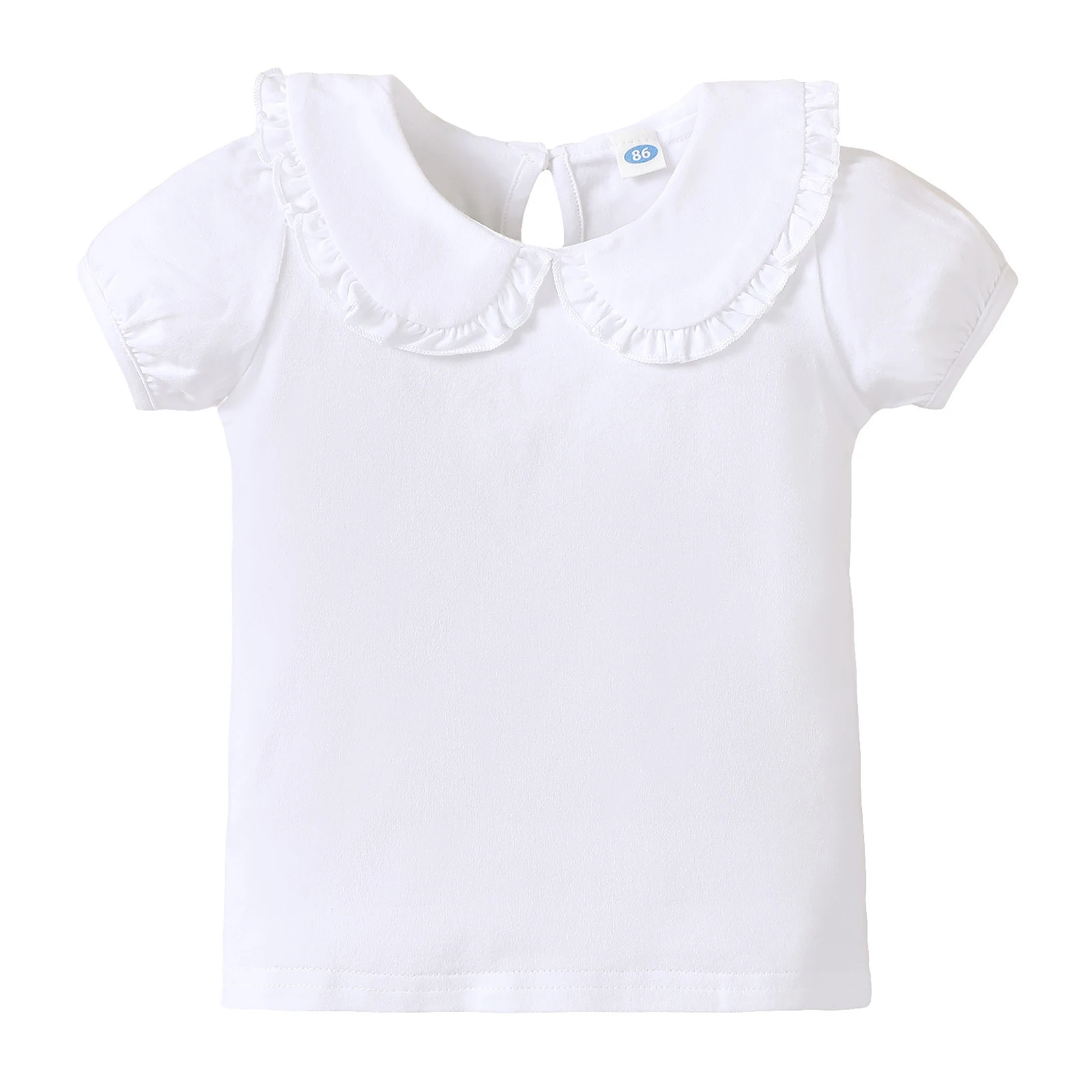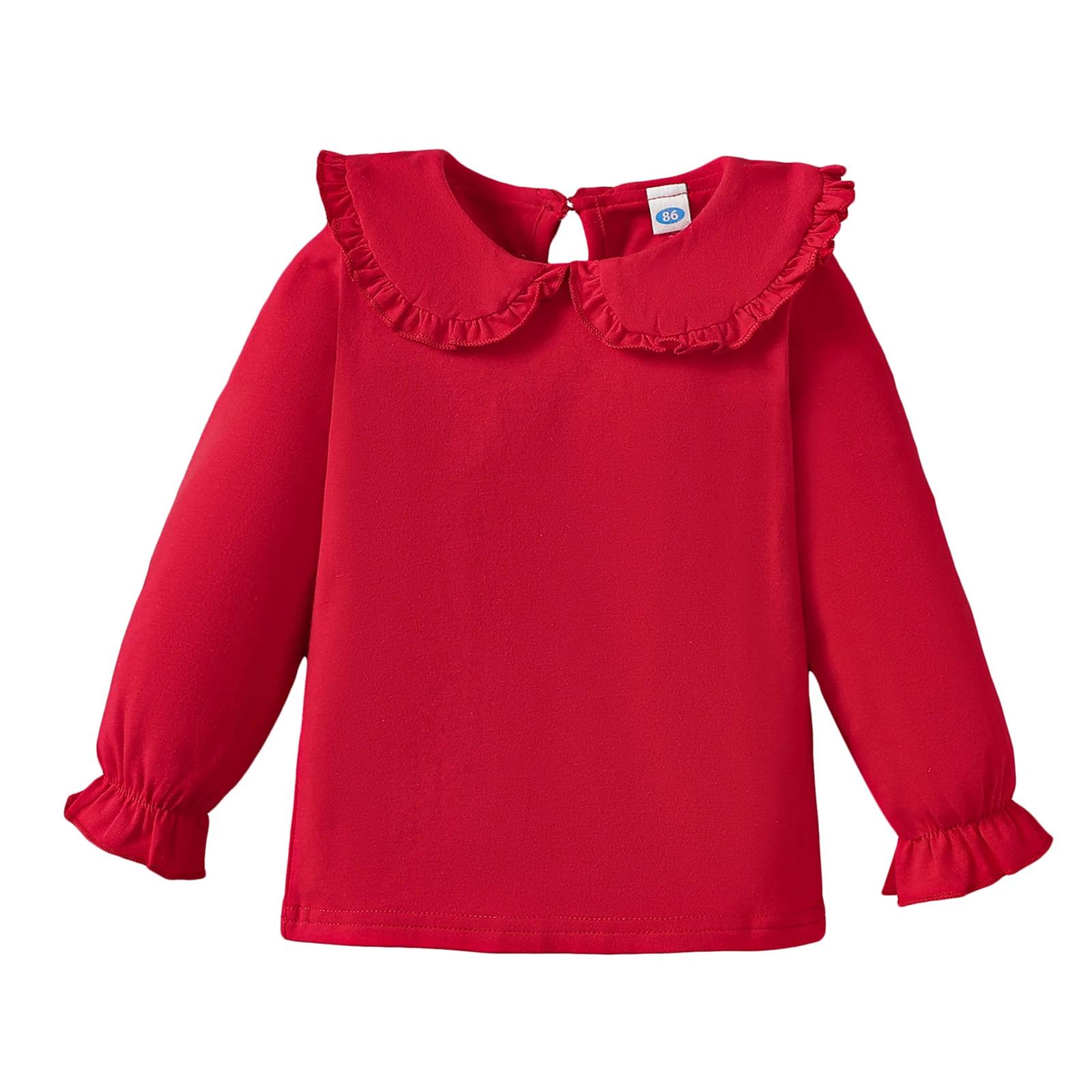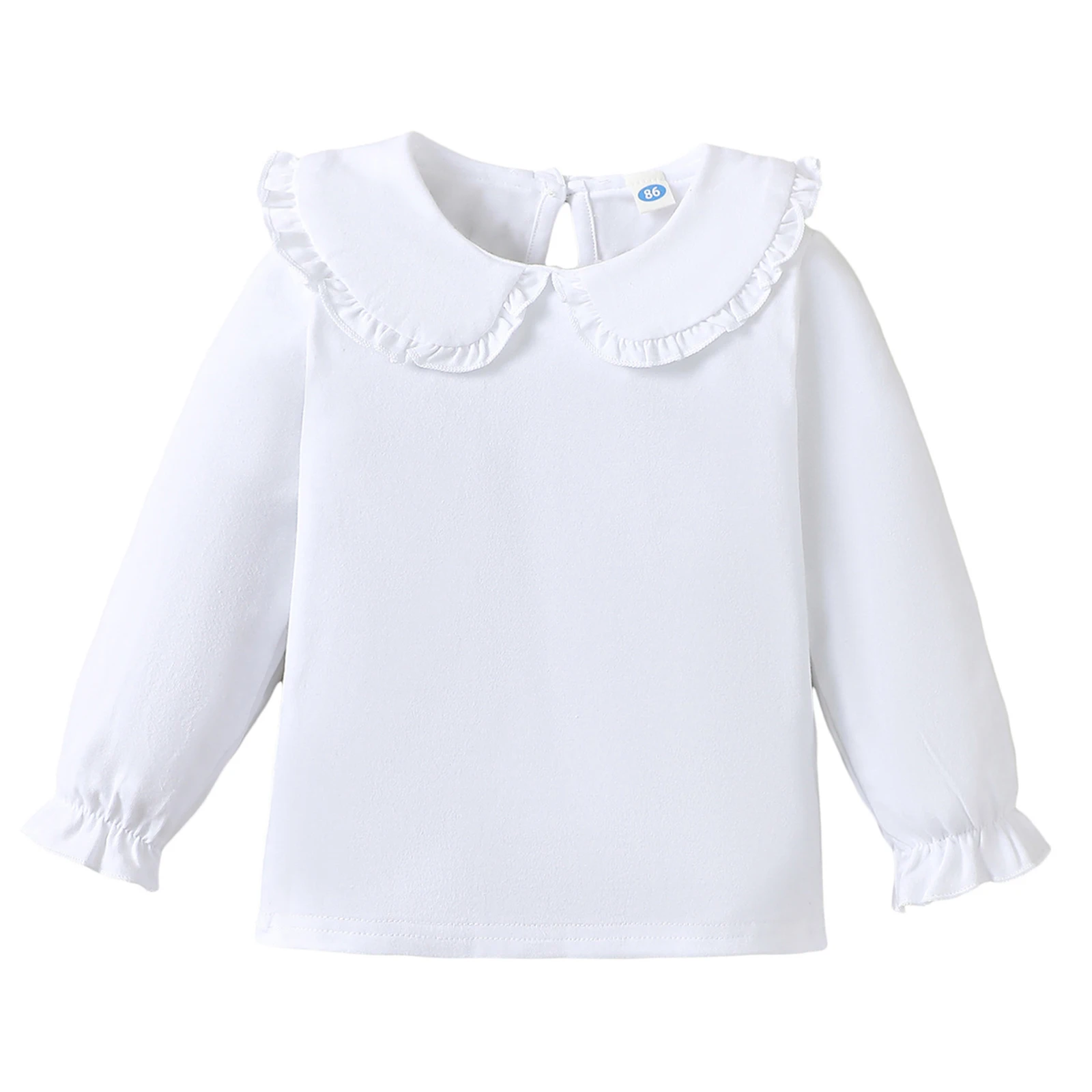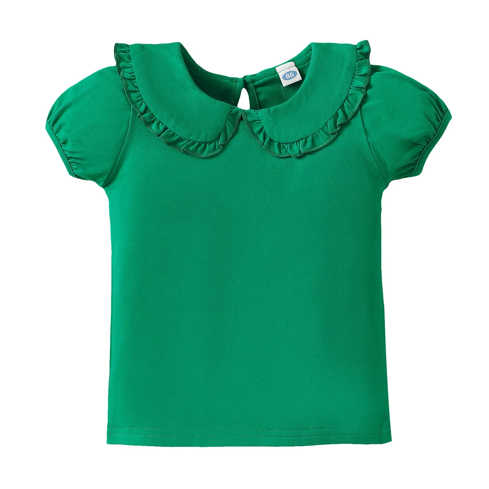 Comprar Blusa de algodón suave con cuello de volantes para niñas pequeñas, camiseta de Color sólido, bonita, ropa de uso diario, escuela