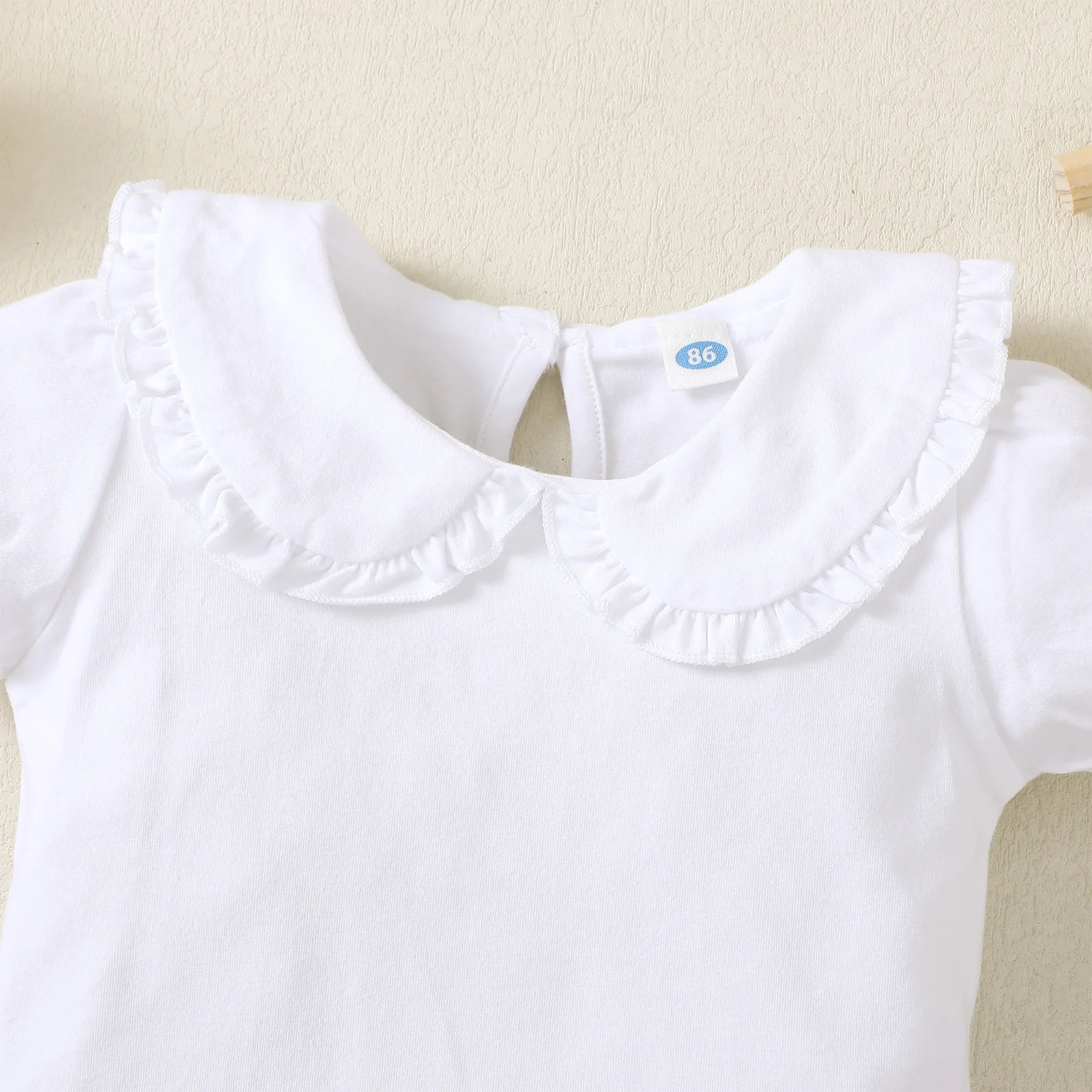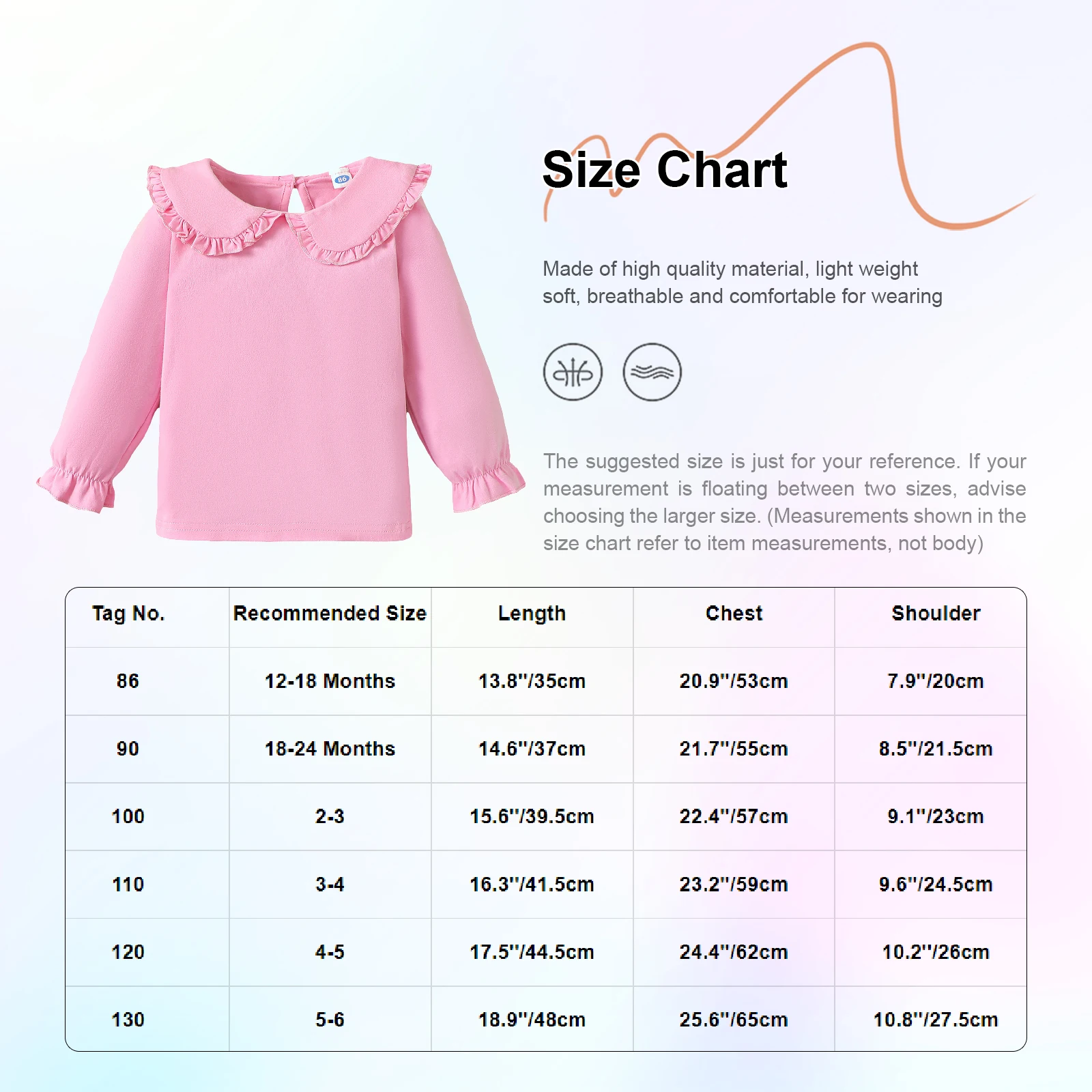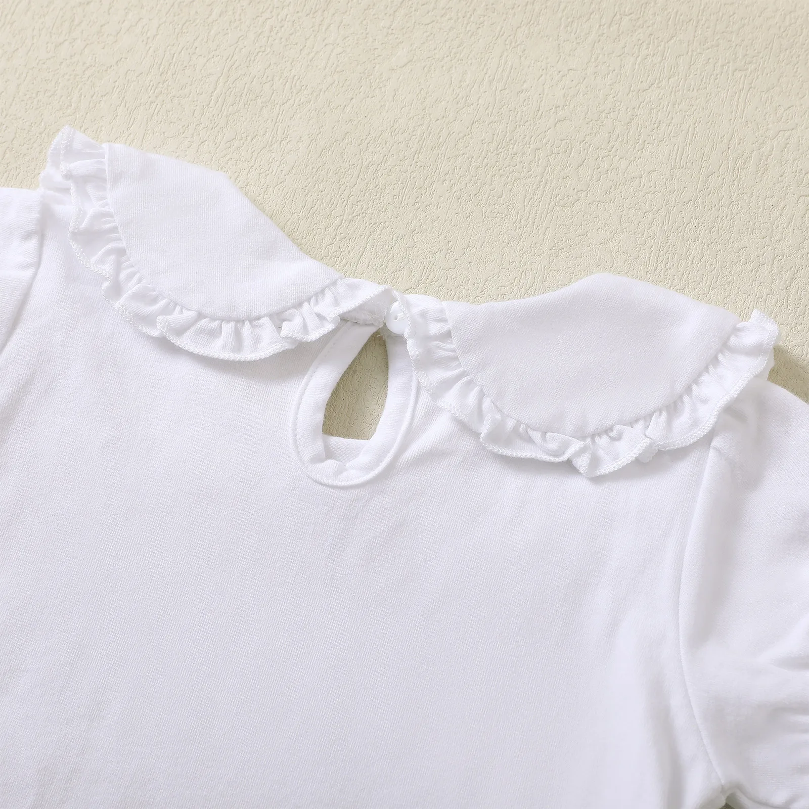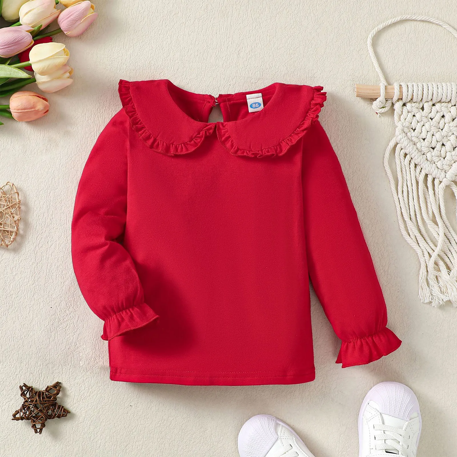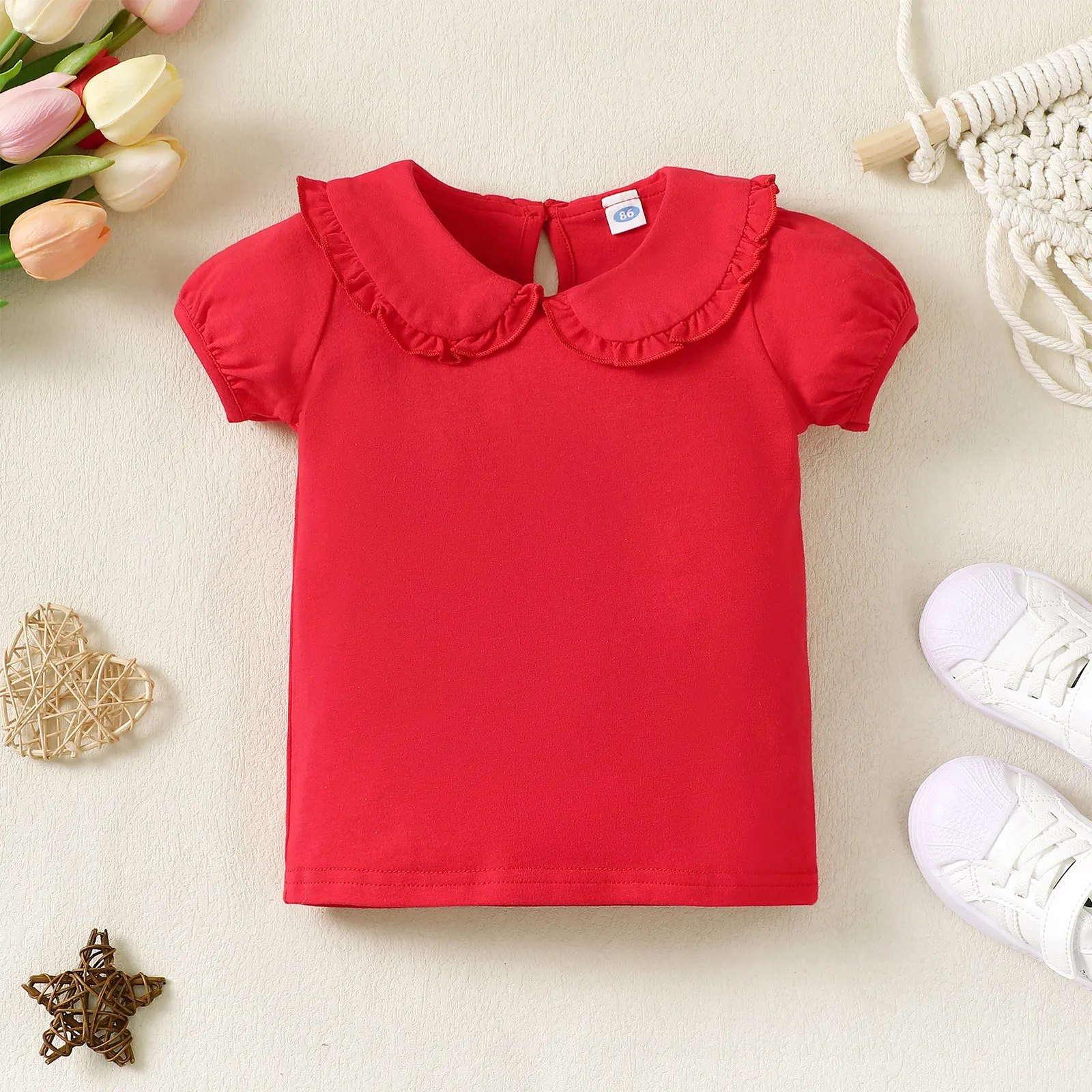 Comprar Blusa de algodón suave con cuello de volantes para niñas pequeñas, camiseta de Color sólido, bonita, ropa de uso diario, escuela
