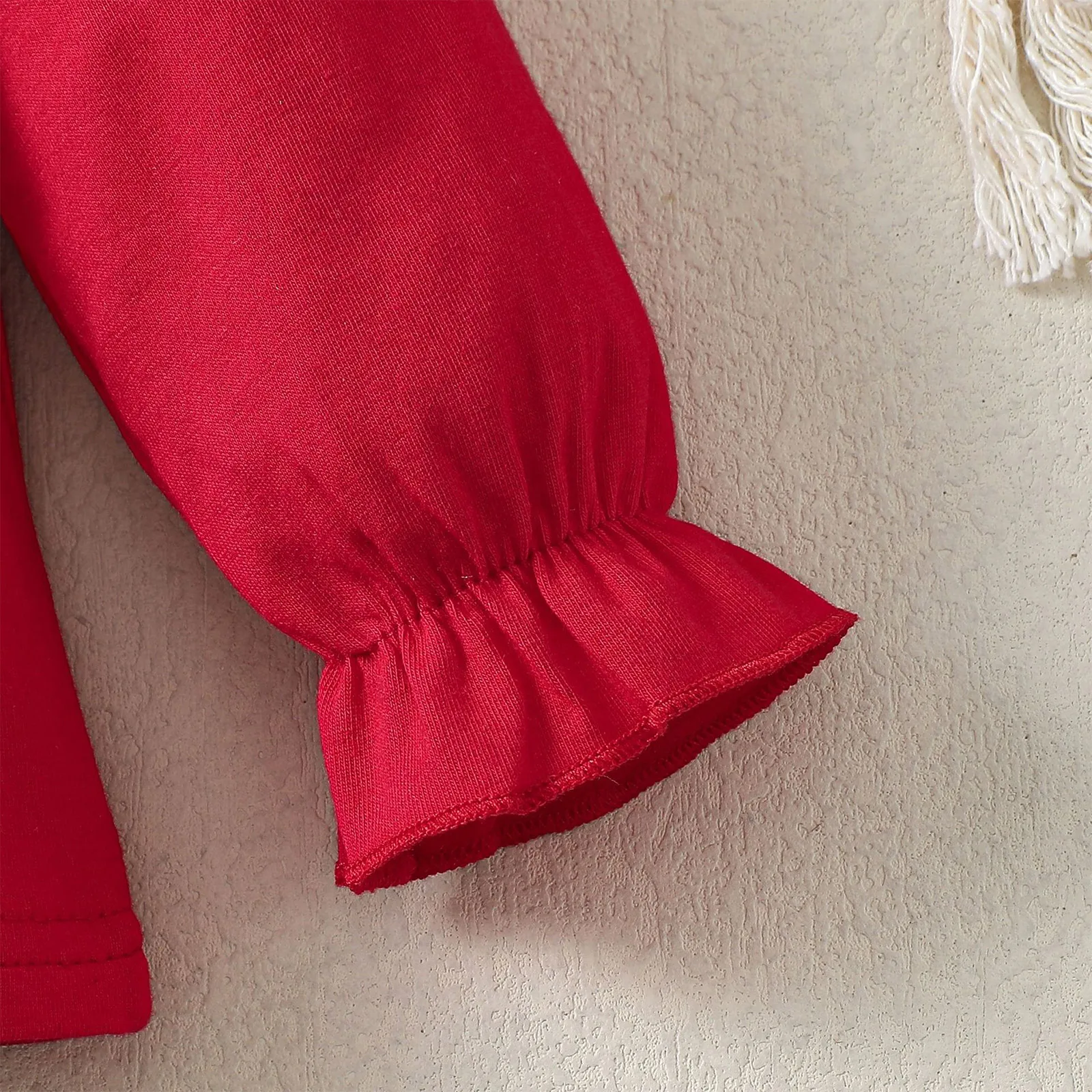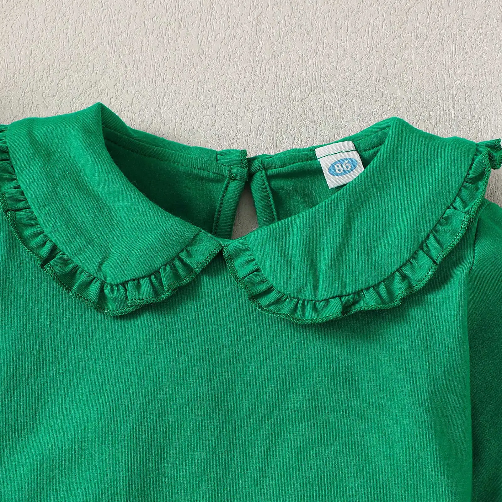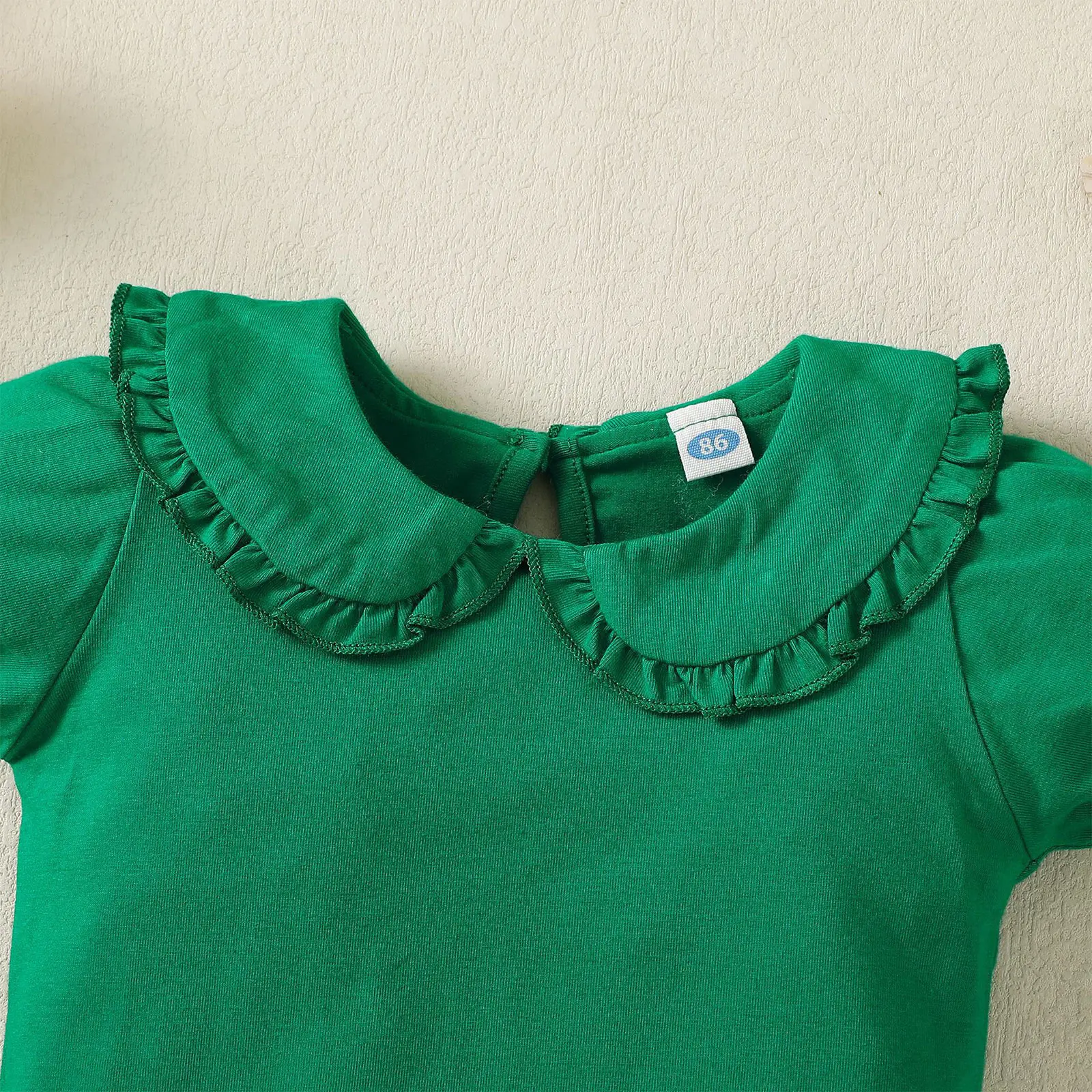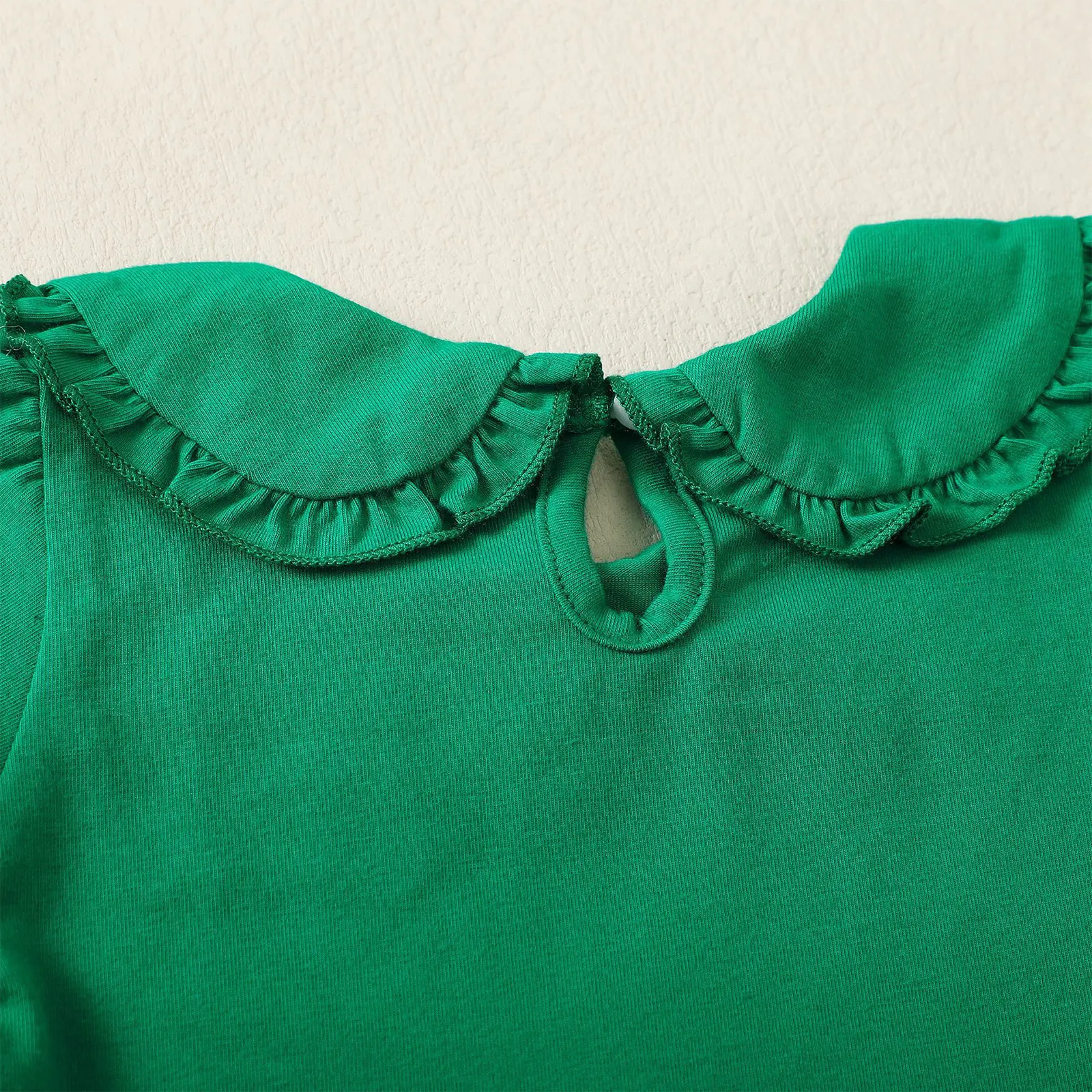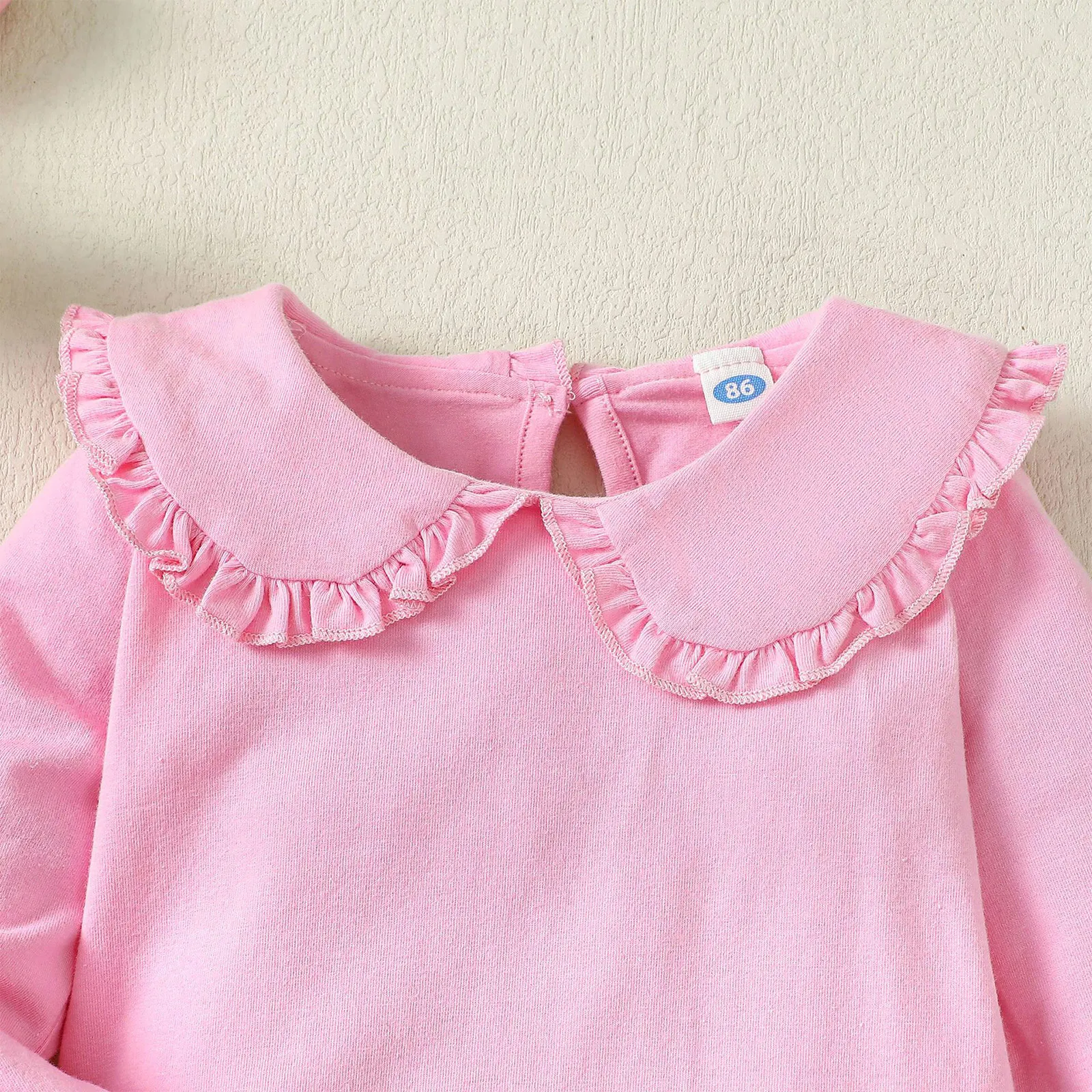 Comprar Blusa de algodón suave con cuello de volantes para niñas pequeñas, camiseta de Color sólido, bonita, ropa de uso diario, escuela