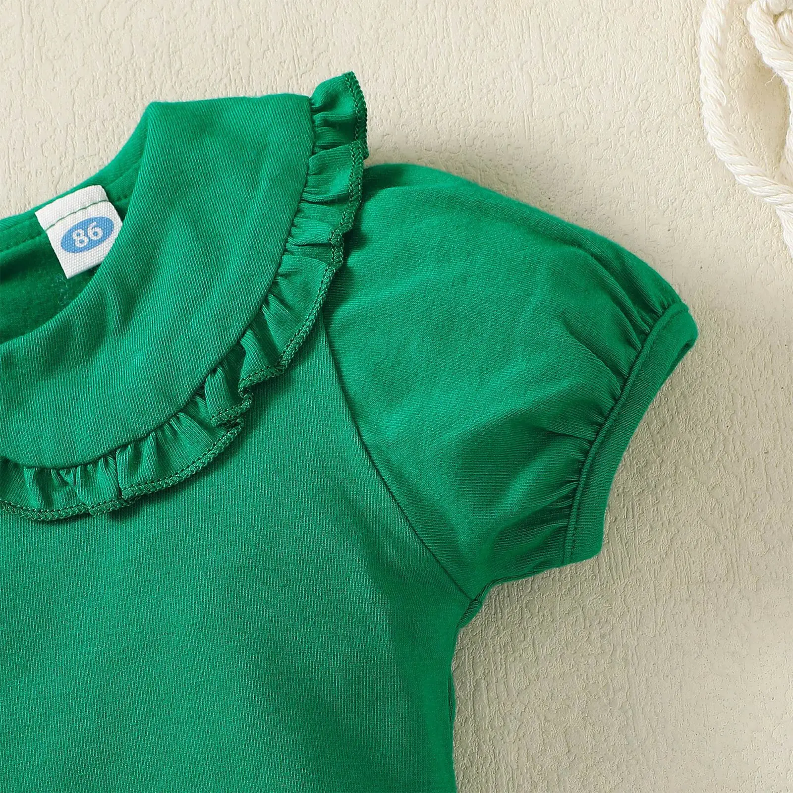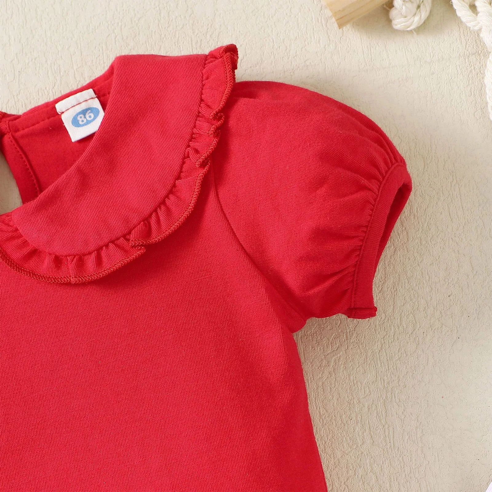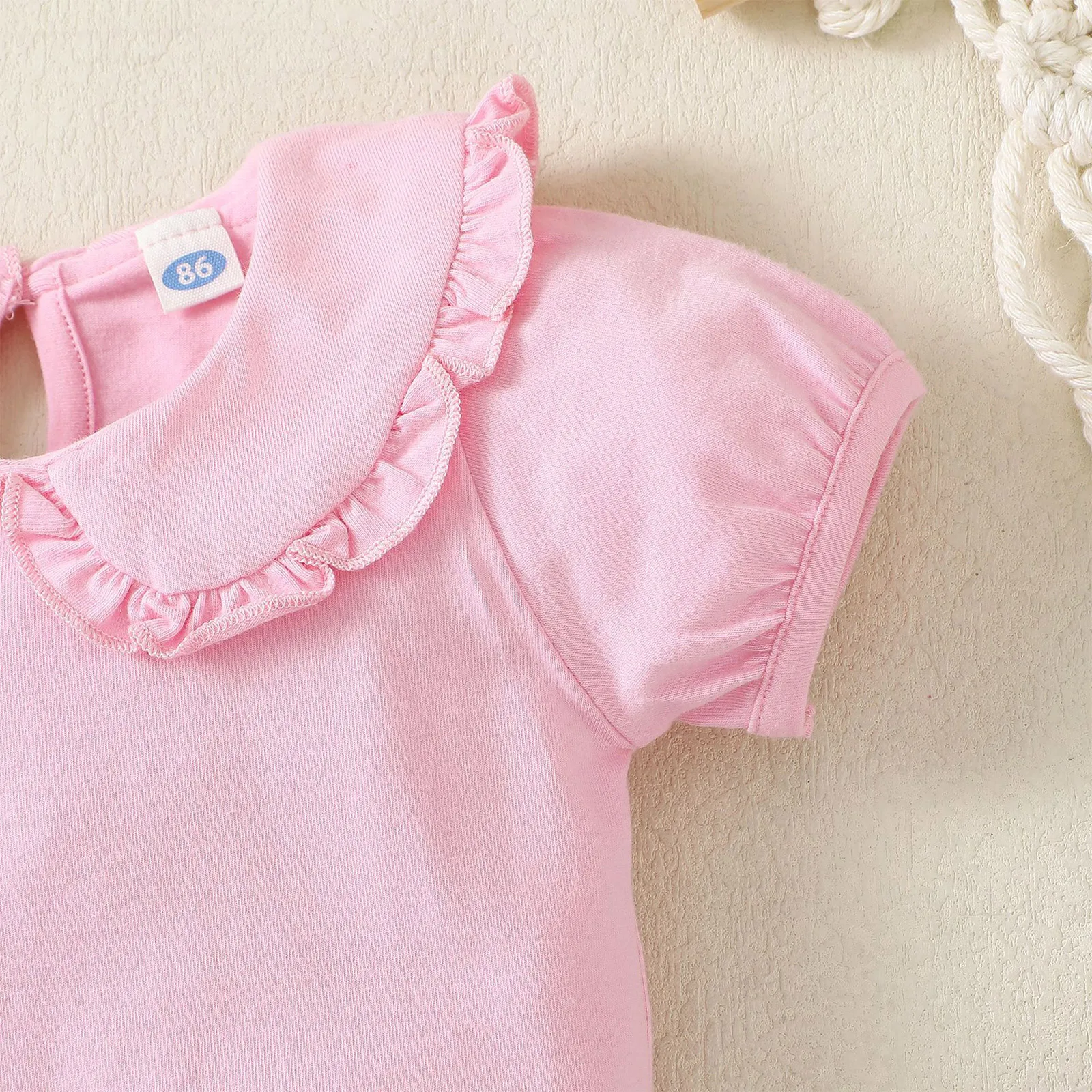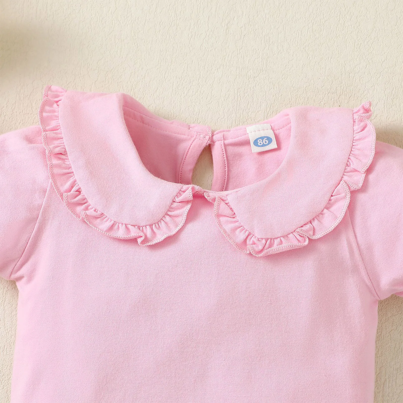 Diseñado con cuello con volantes, espalda cerrada con cierre de botón, Camiseta básica para niña.