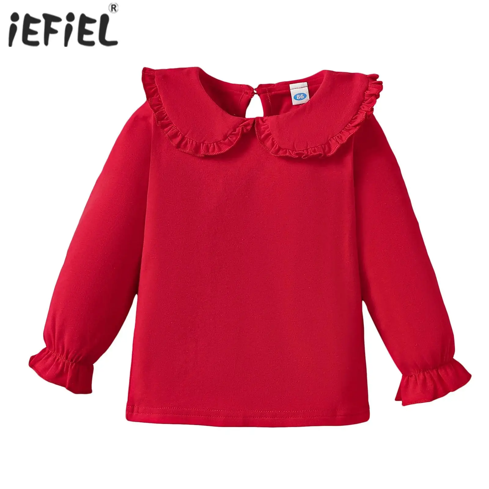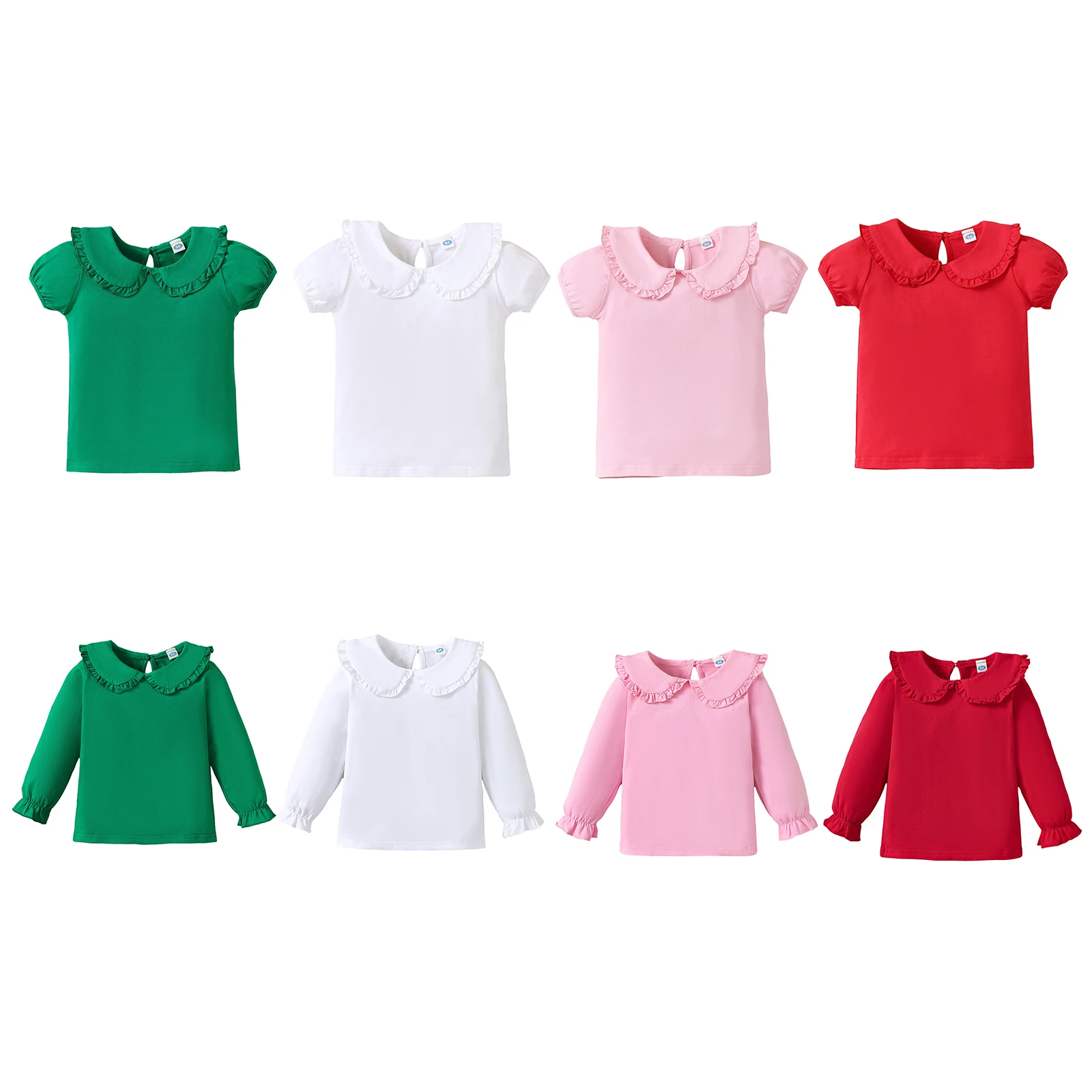 Comprar Blusa de algodón suave con cuello de volantes para niñas pequeñas, camiseta de Color sólido, bonita, ropa de uso diario, escuela