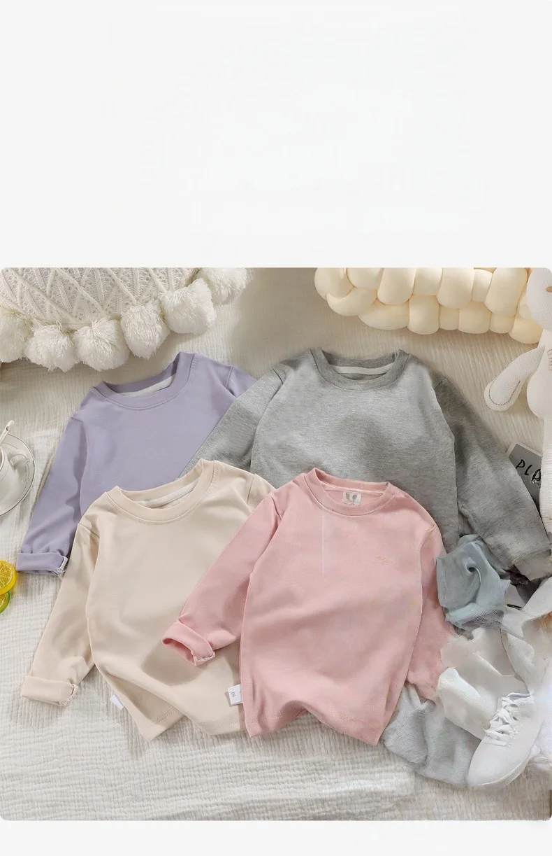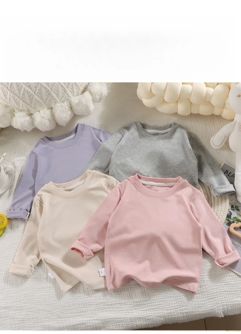 Comprar Blusa para niños de 1 a 8 años, camiseta lisa de manga larga, capa Base para niños, camisa Base de manga larga