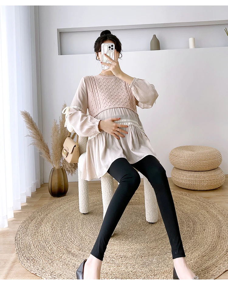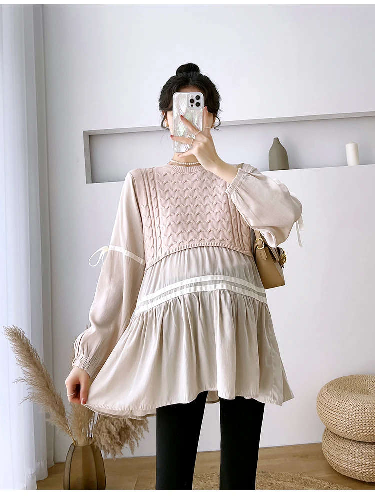 Comprar Blusas de maternidad de punto para mujeres embarazadas, camisas sueltas de retales, ropa bonita para el embarazo, moda de otoño e invierno, 532 #2024