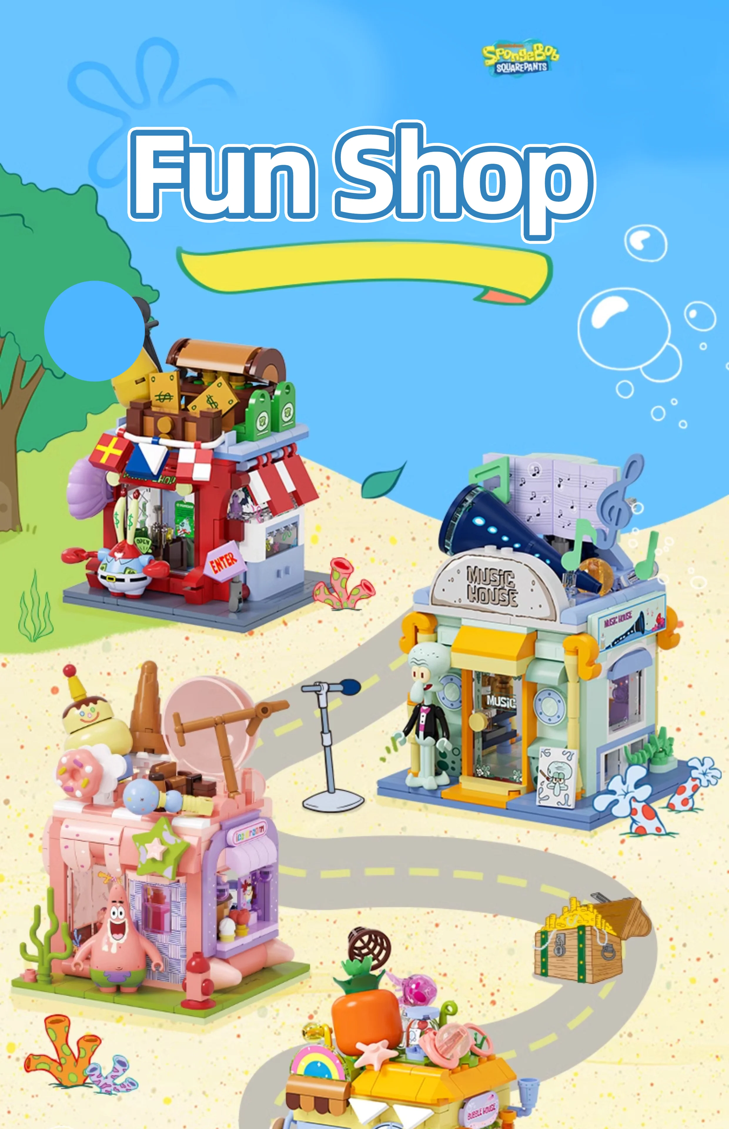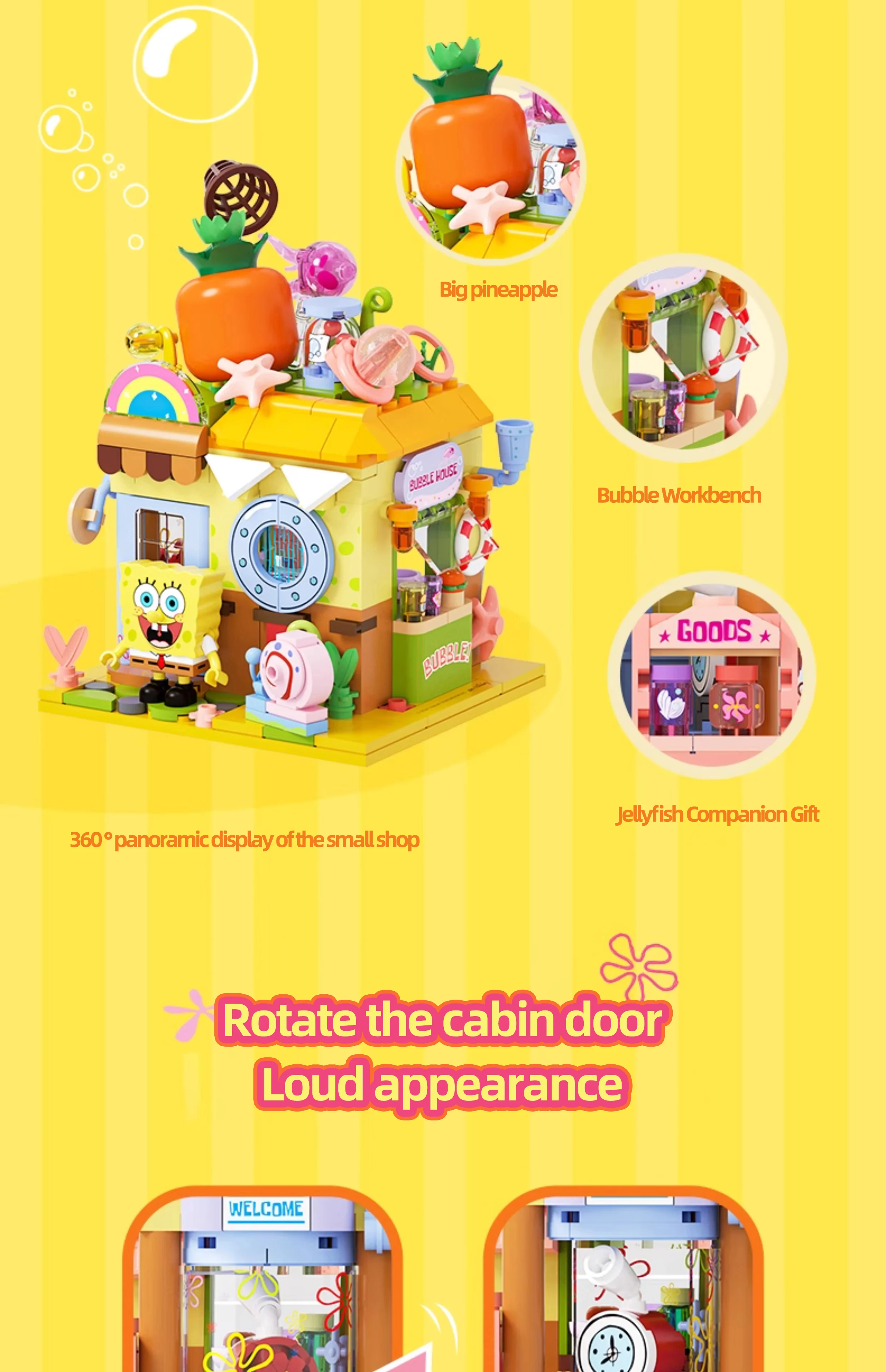 Recrea el amado mundo de SpongeBob SquarePants con este conjunto de edificios detallado, que presenta personajes favoritos de los fanáticos como Sr. Krabs, Patrick y Squidward, además de sus icónicas tiendas de vista callejera.¡Perfecto para exhibición o juego imaginativo!