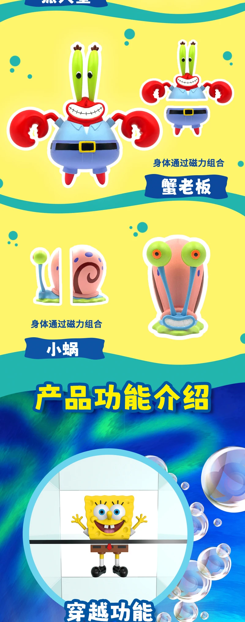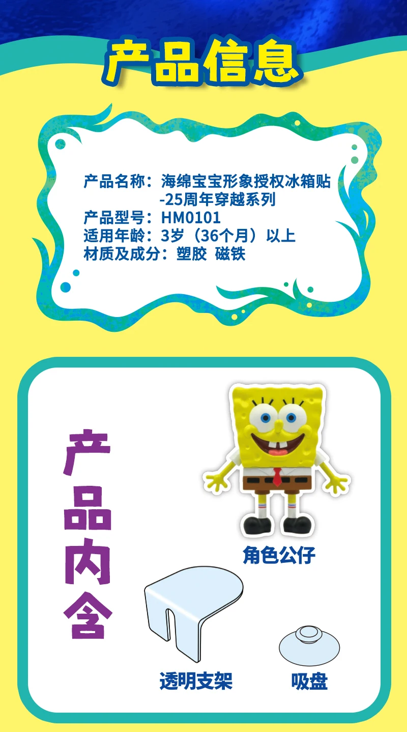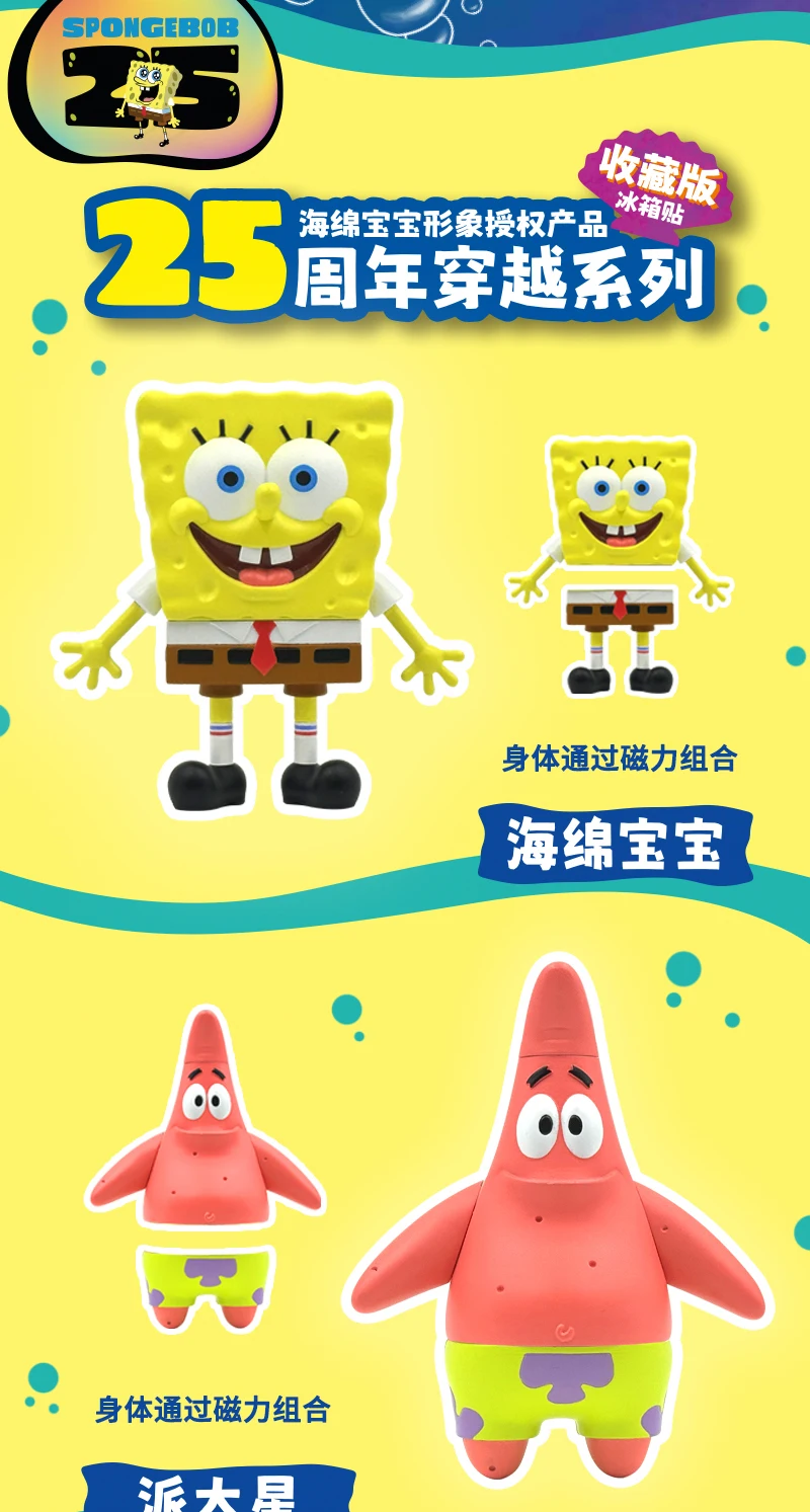 SpongeBob SuqarePants 25th Anniversary Crossing Series Refrigerador Imán Juguete Figuras de acción Colección de adornos Regalos para niños