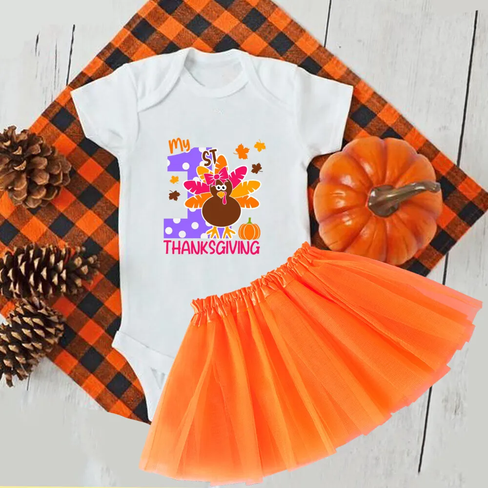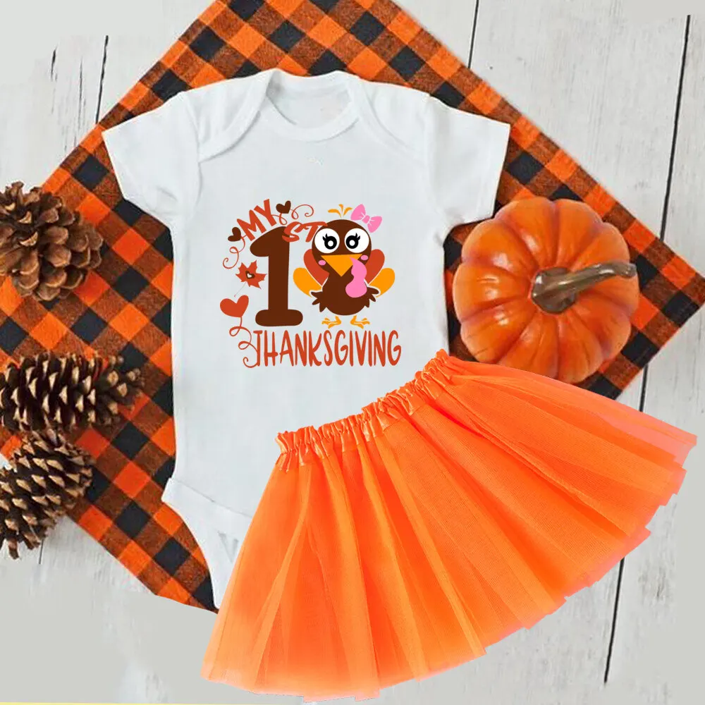 My 1st Día de Acción de Gracias Bebé Body Vestidos Conjunto Bebé Niñas Manga Corta Mono Tutú Jupes Niña Otoño Fiesta Traje