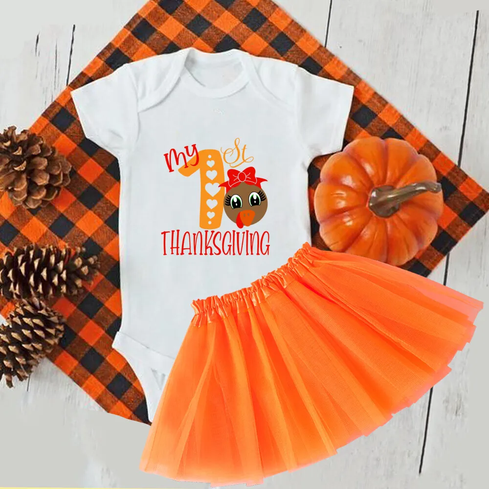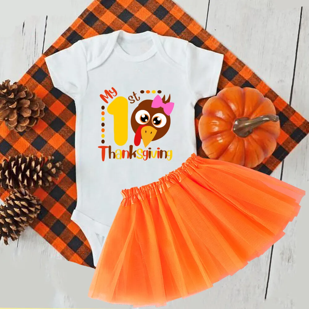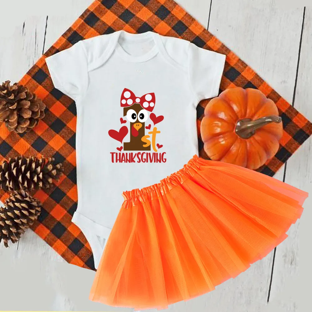 Body de Acción de Gracias para bebé, conjunto de vestidos, mono de manga corta, faldas de tutú, traje de fiesta de otoño