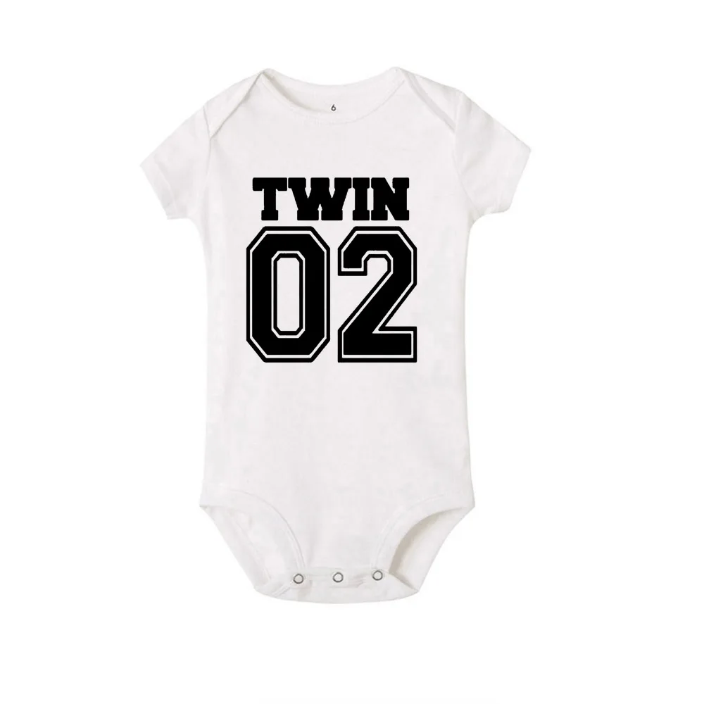 Twin 01 02 estampado gemelos a juego bebé mono niños niñas regalo para gemelos niños mono desgaste Unisex recién nacido Baby Shower regalos
