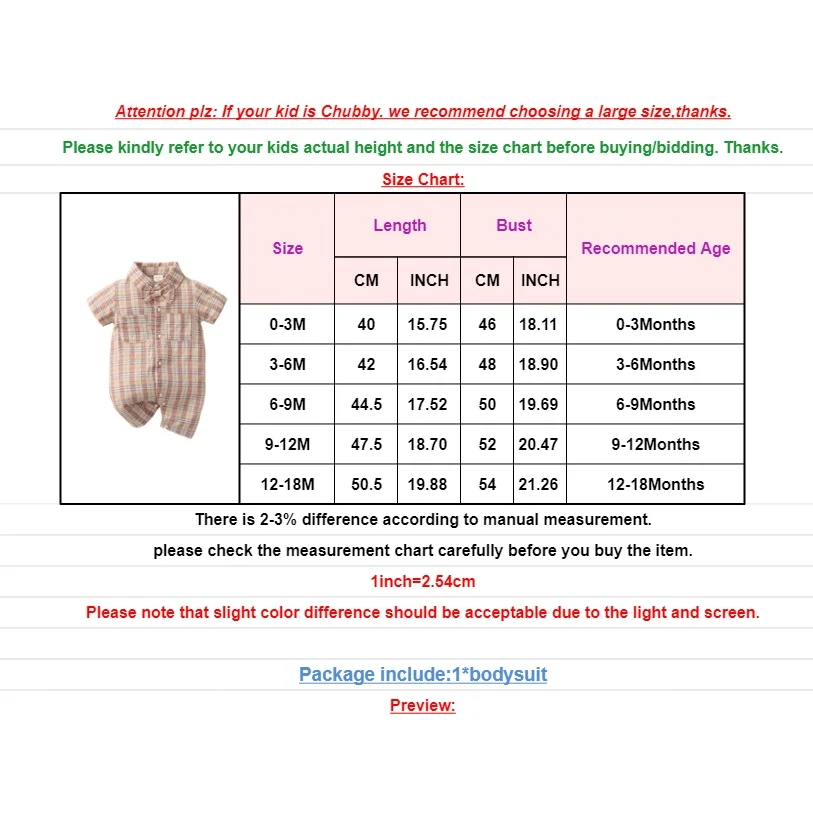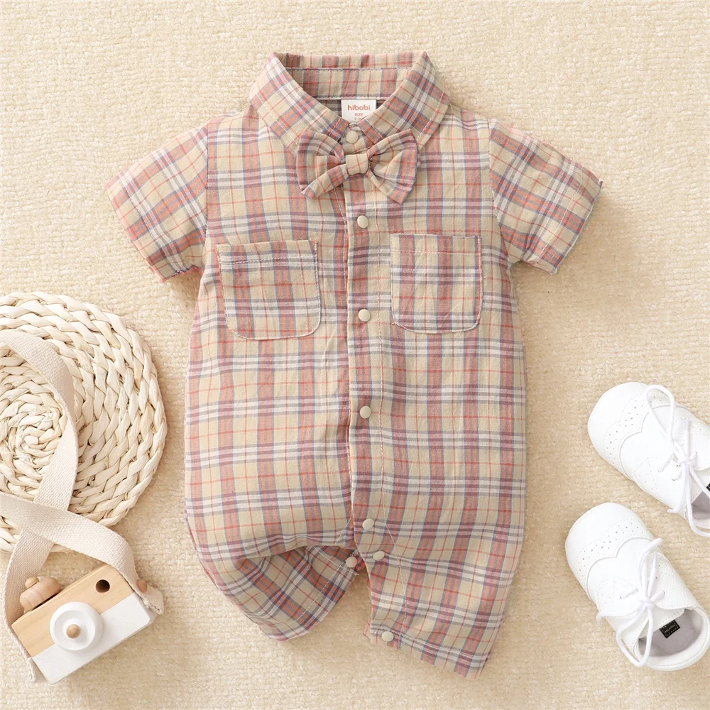 Comprar Body de caballero para bebé, pelele a cuadros de manga corta con cuello vuelto, mono de moda de verano, ropa de fiesta para 0-18 M