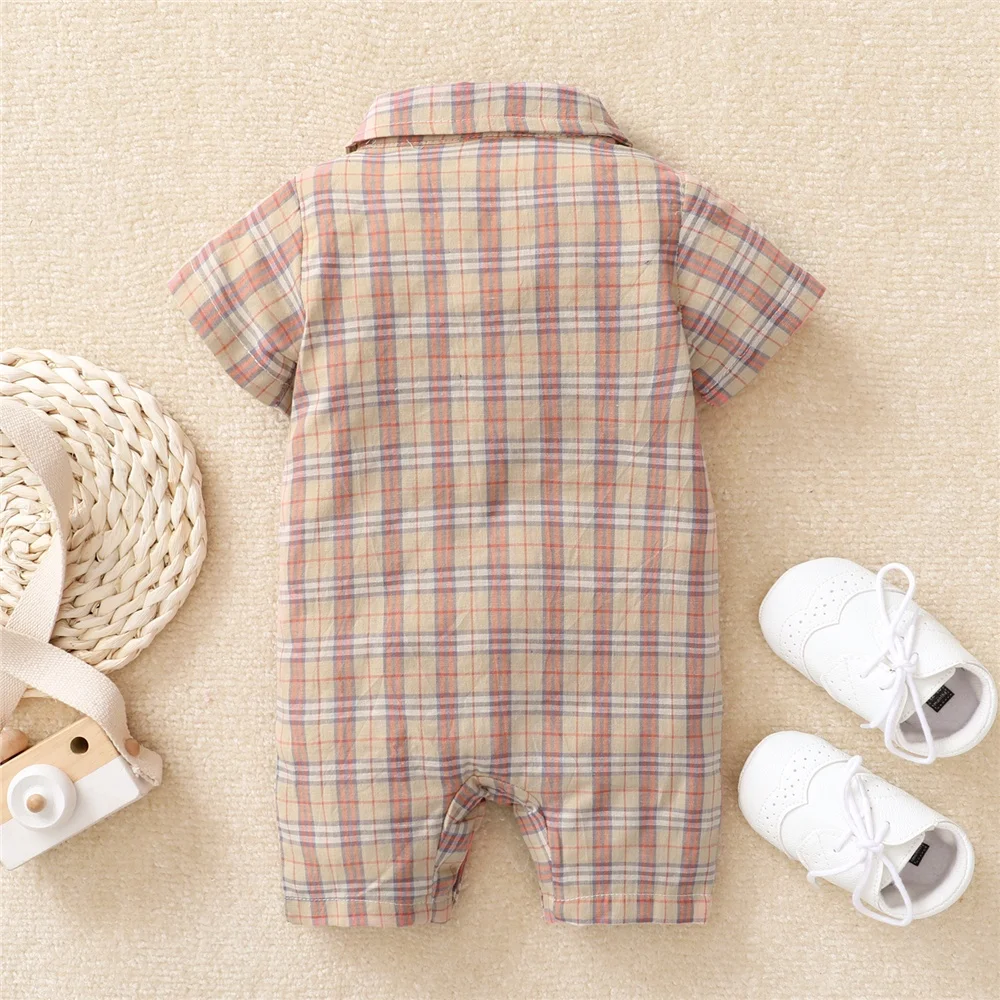 Comprar Body de caballero para bebé, pelele a cuadros de manga corta con cuello vuelto, mono de moda de verano, ropa de fiesta para 0-18 M