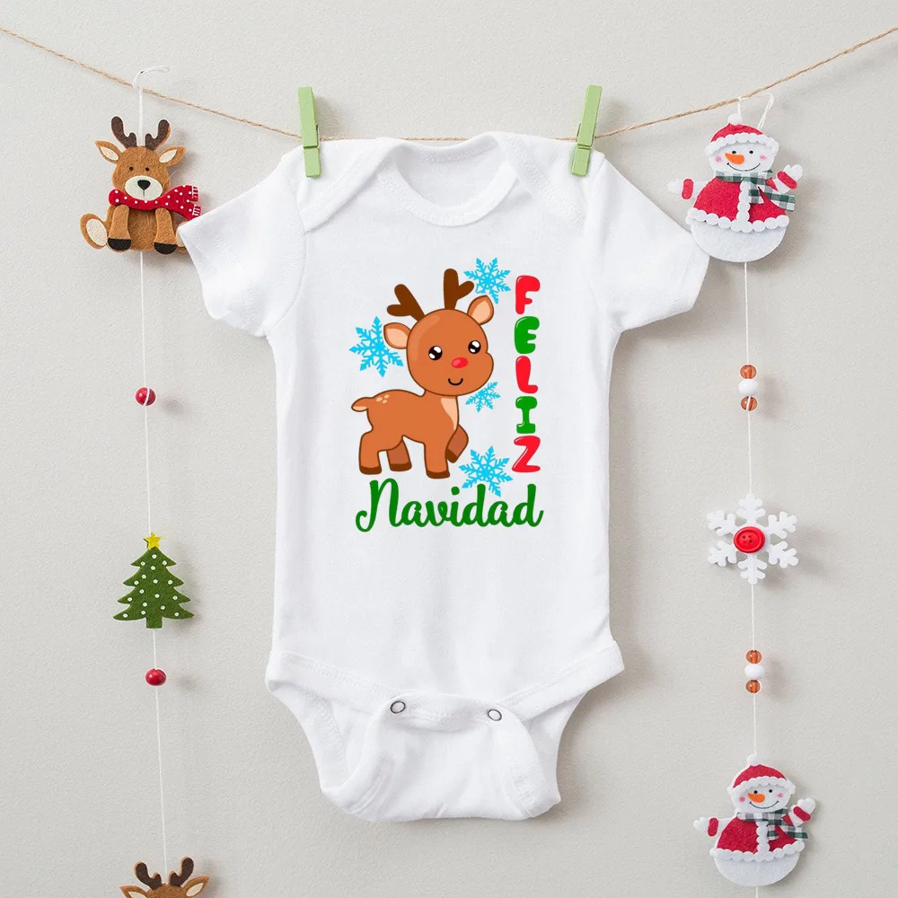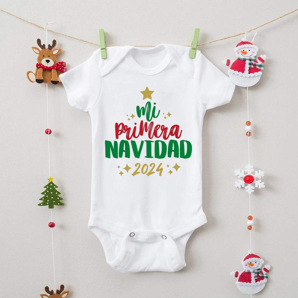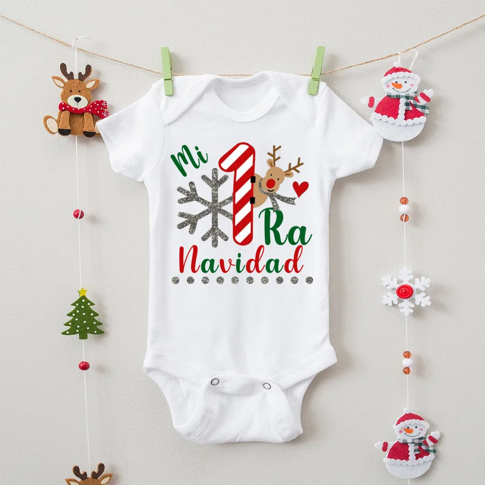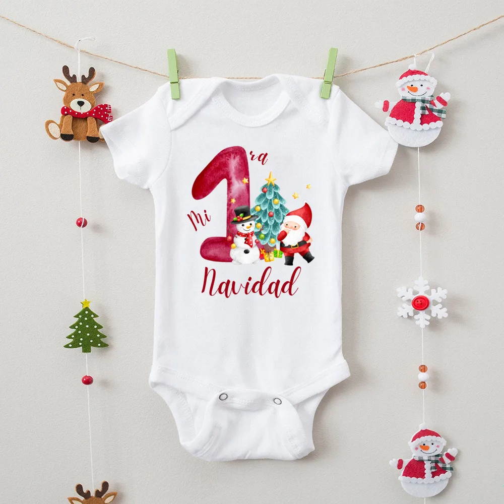 My 1st Christmas Body con estampado español para bebé, Pelele infantil de Navidad, mono de manga corta para recién nacido, traje de fiesta de Navidad para niño pequeño