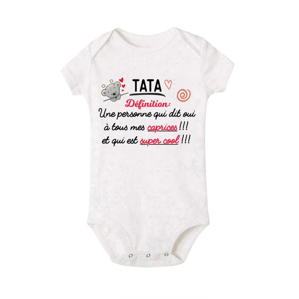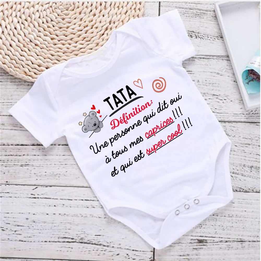 Comprar Body con estampado francés de tía para bebé, pelele infantil con estampado de oso bonito, ropa divertida para recién nacido, mono de manga corta para niño pequeño