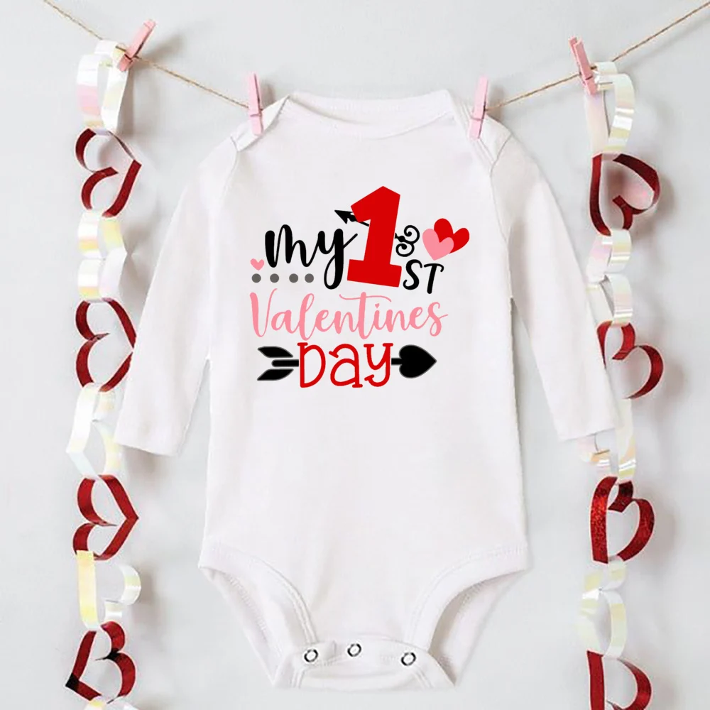 Body con estampado del mi primer Día de San Valentín para bebé, traje infantil para fiesta de San Valentín, mono de vacaciones para niño pequeño Ropmer de manga larga para recién nacido