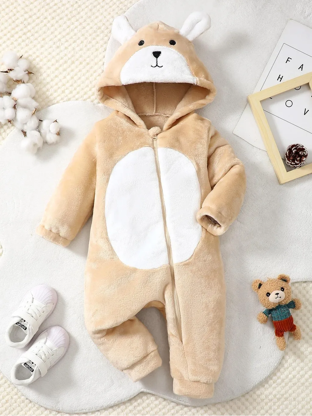 Comprar Body de felpa para bebé recién nacido de 0 a 18 meses, pelele con capucha de manga larga y orejas bonitas, ropa cálida de invierno para bebé