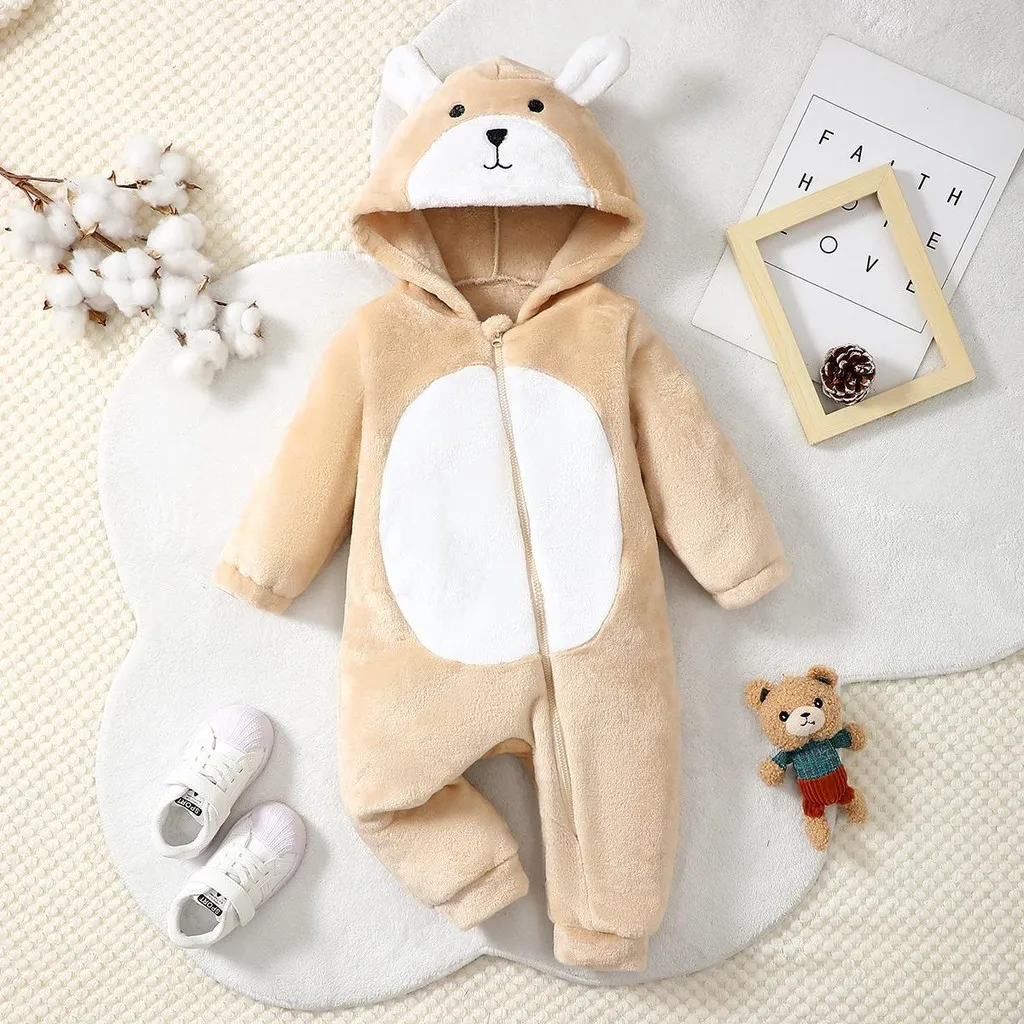 Comprar Body de felpa para bebé recién nacido de 0 a 18 meses, pelele con capucha de manga larga y orejas bonitas, ropa cálida de invierno para bebé