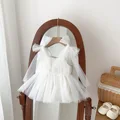 Comprar Body de fiesta de encaje sólido para niñas pequeñas, vestidos con tirantes de lazo grande, ropa de fotografía de bebé, 2 piezas, nueva