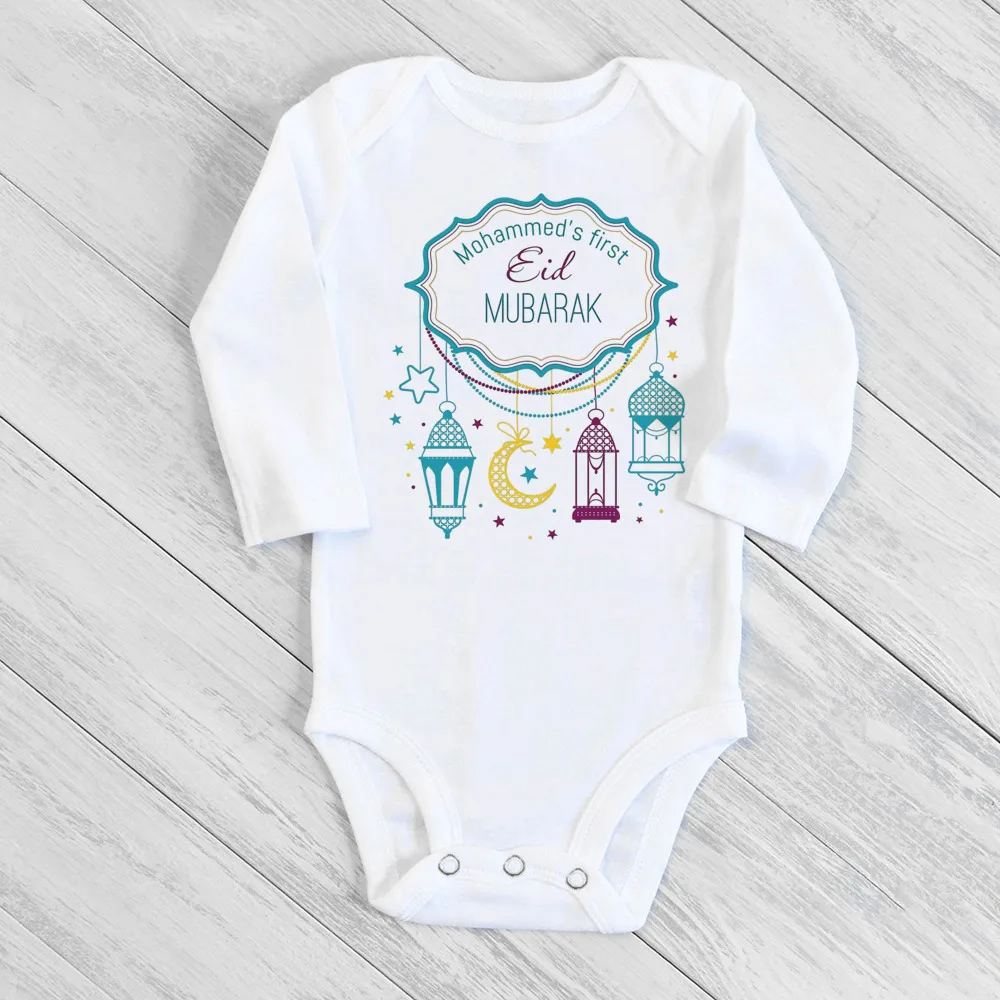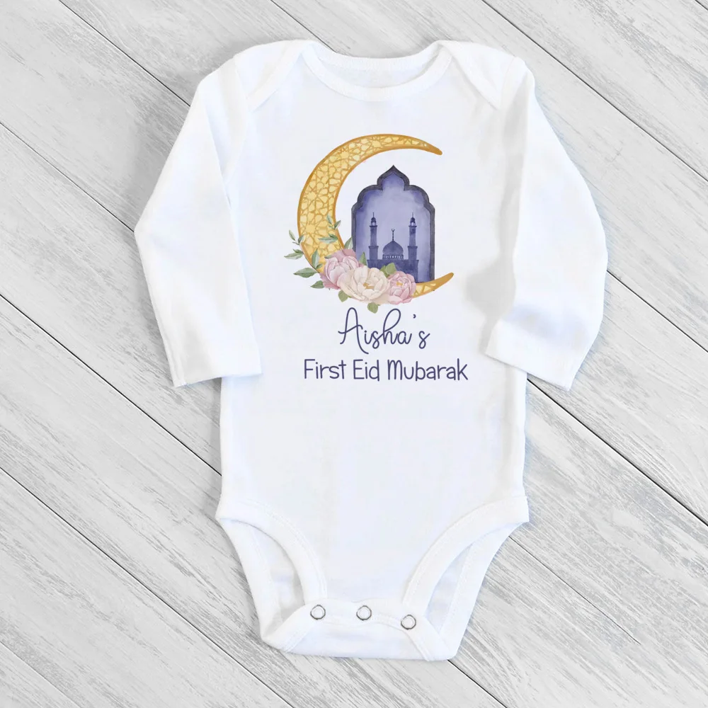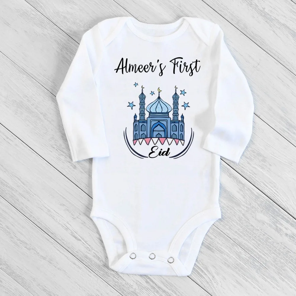 Personalised Eid Ramadan Baby Bodysuit Custom Name Infant Long Sleeve Romper Eid Newborn Clothes Islamic Muslim Holiday Outfit