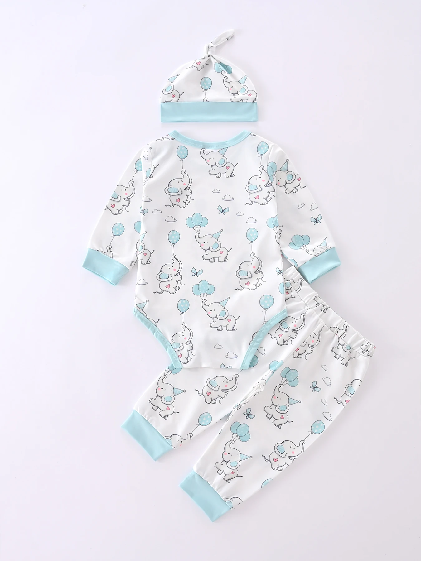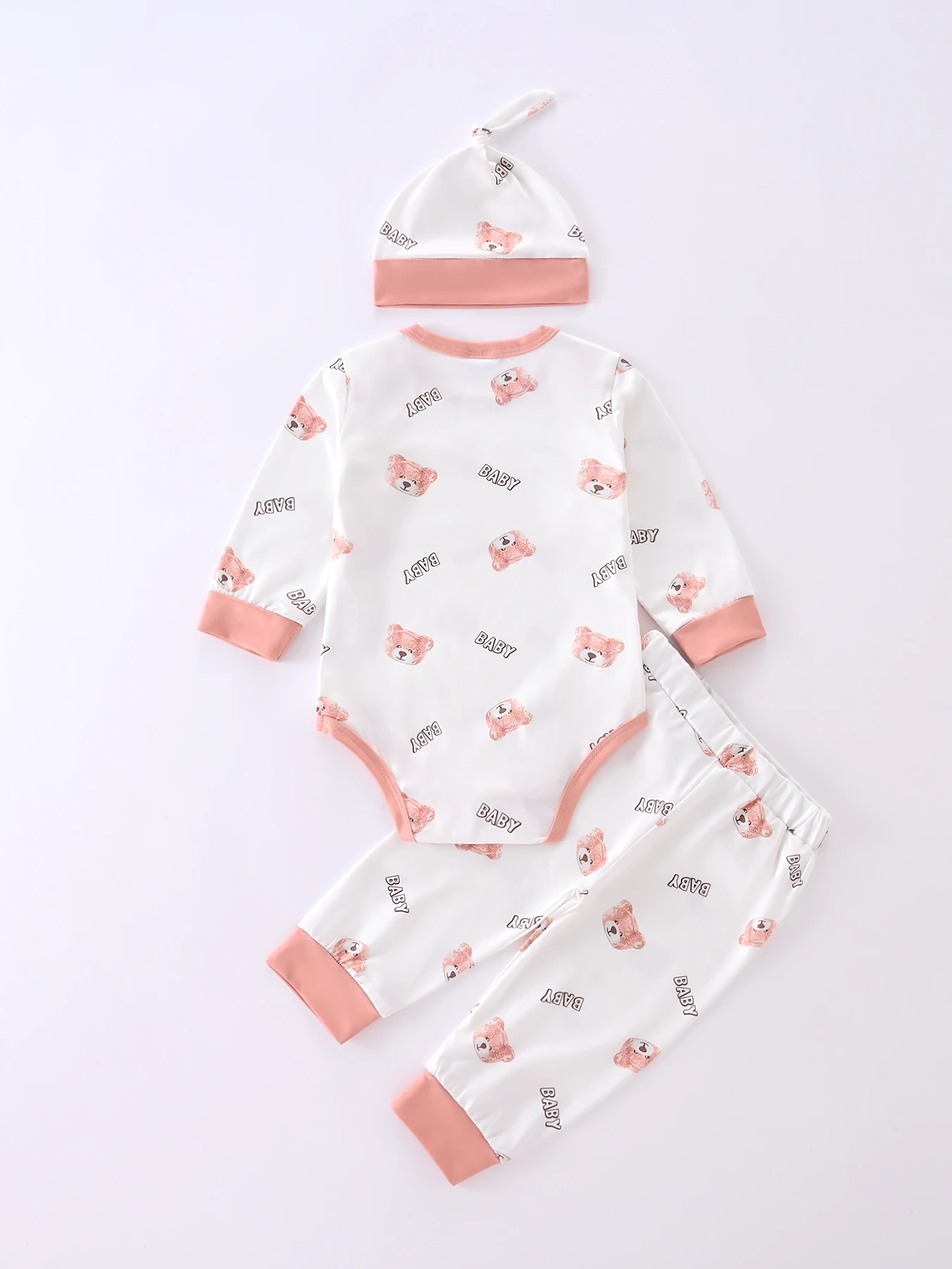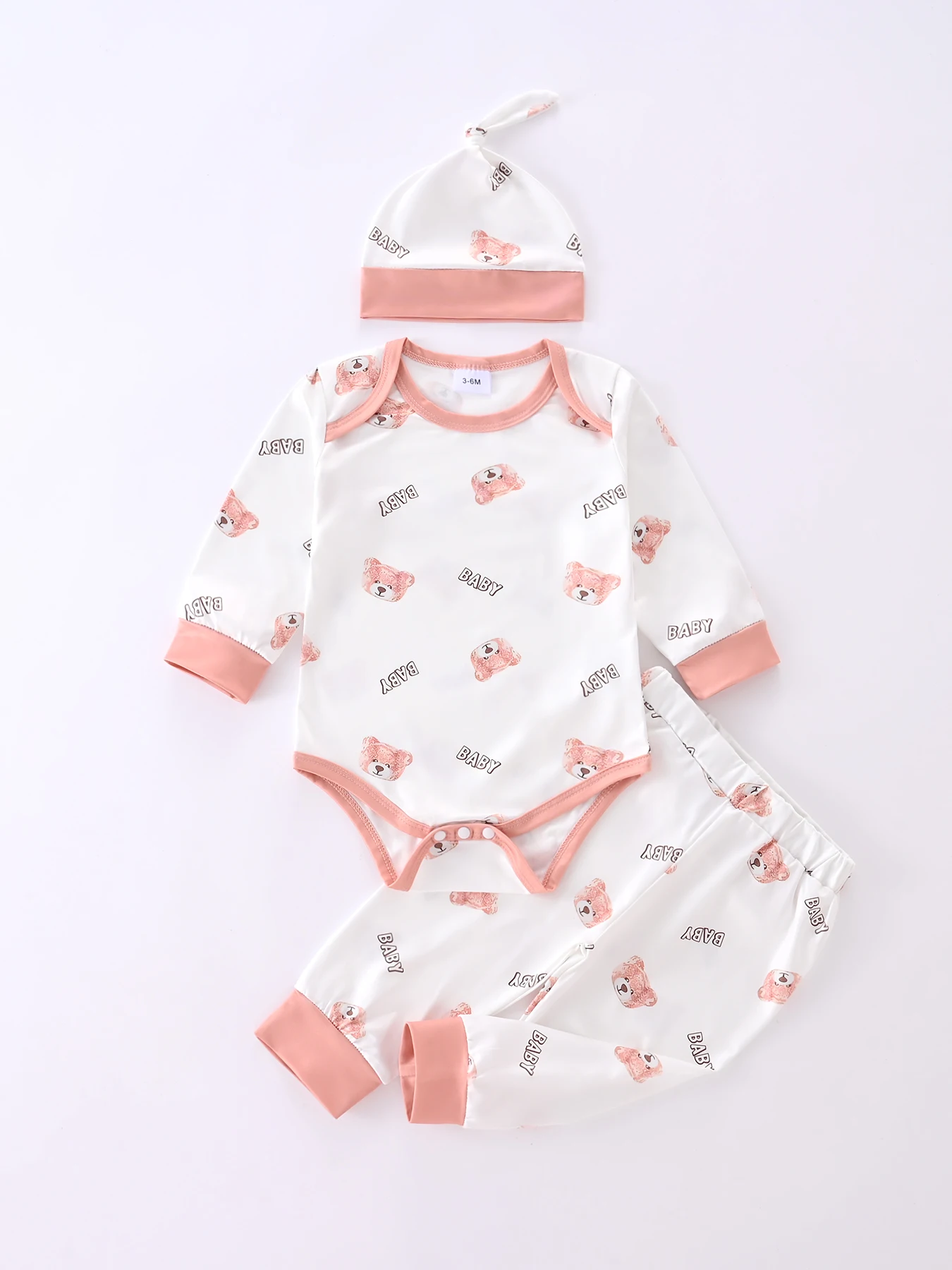 Body Unisex para bebé recién nacido, sombrero y pantalones, traje de 3 piezas para niños y niñas, pelele de una pieza con cuello redondo estampado bonito para todas las estaciones