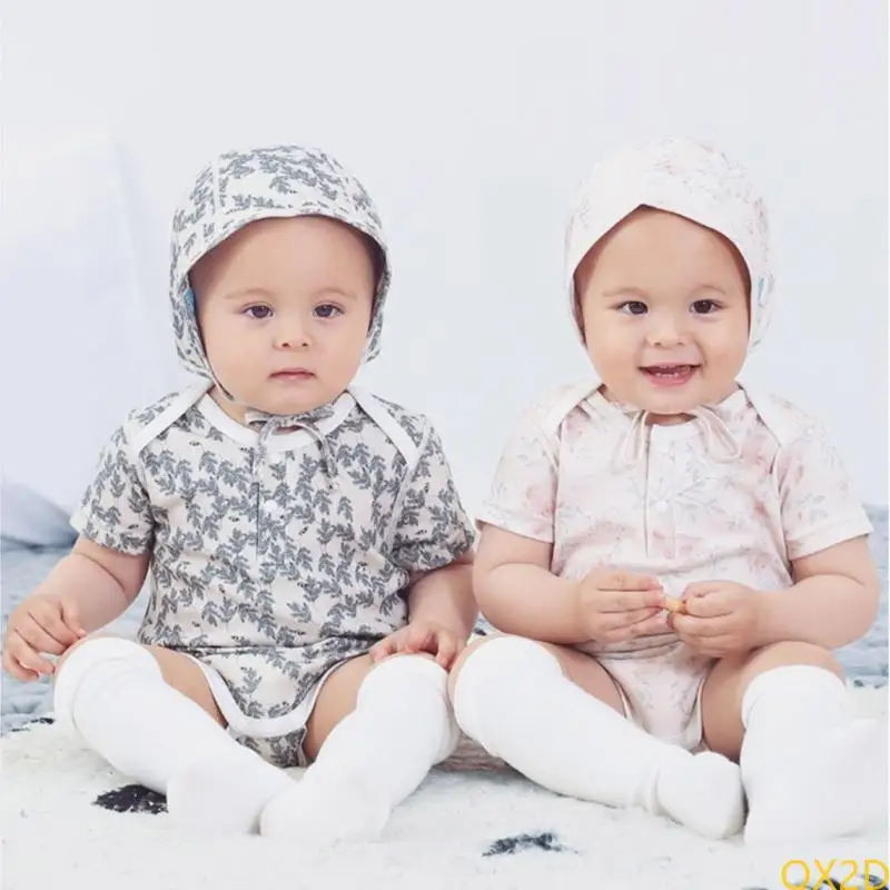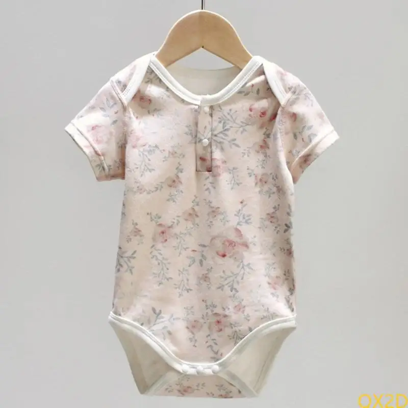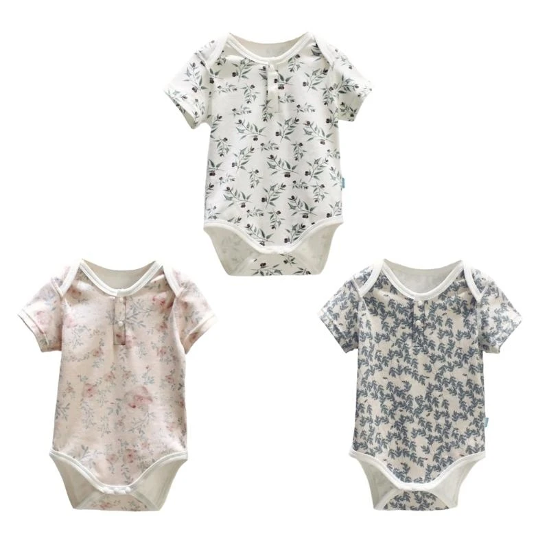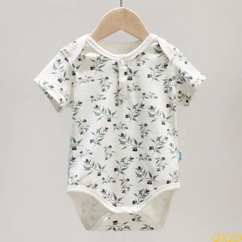 Body de bebé estampado de verano 20225 con estampado, manga corta, media abertura delantera o prenda de cuello redondo.