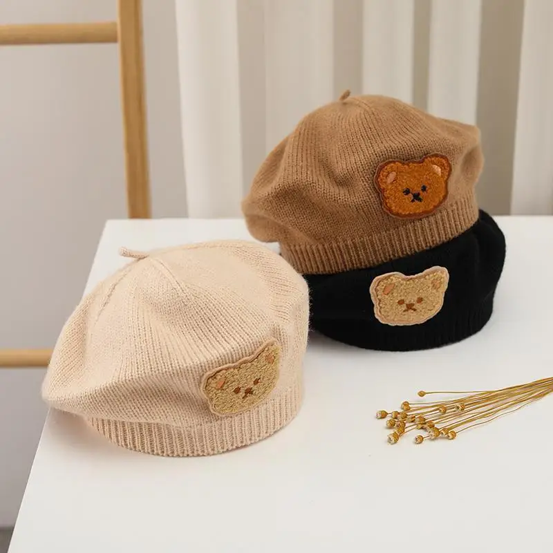 Boina coreana para bebé, sombreros para niños y niñas, oso de dibujos animados, gorro tejido para niño pequeño, gorro cálido para niño, accesorios para niño 2024