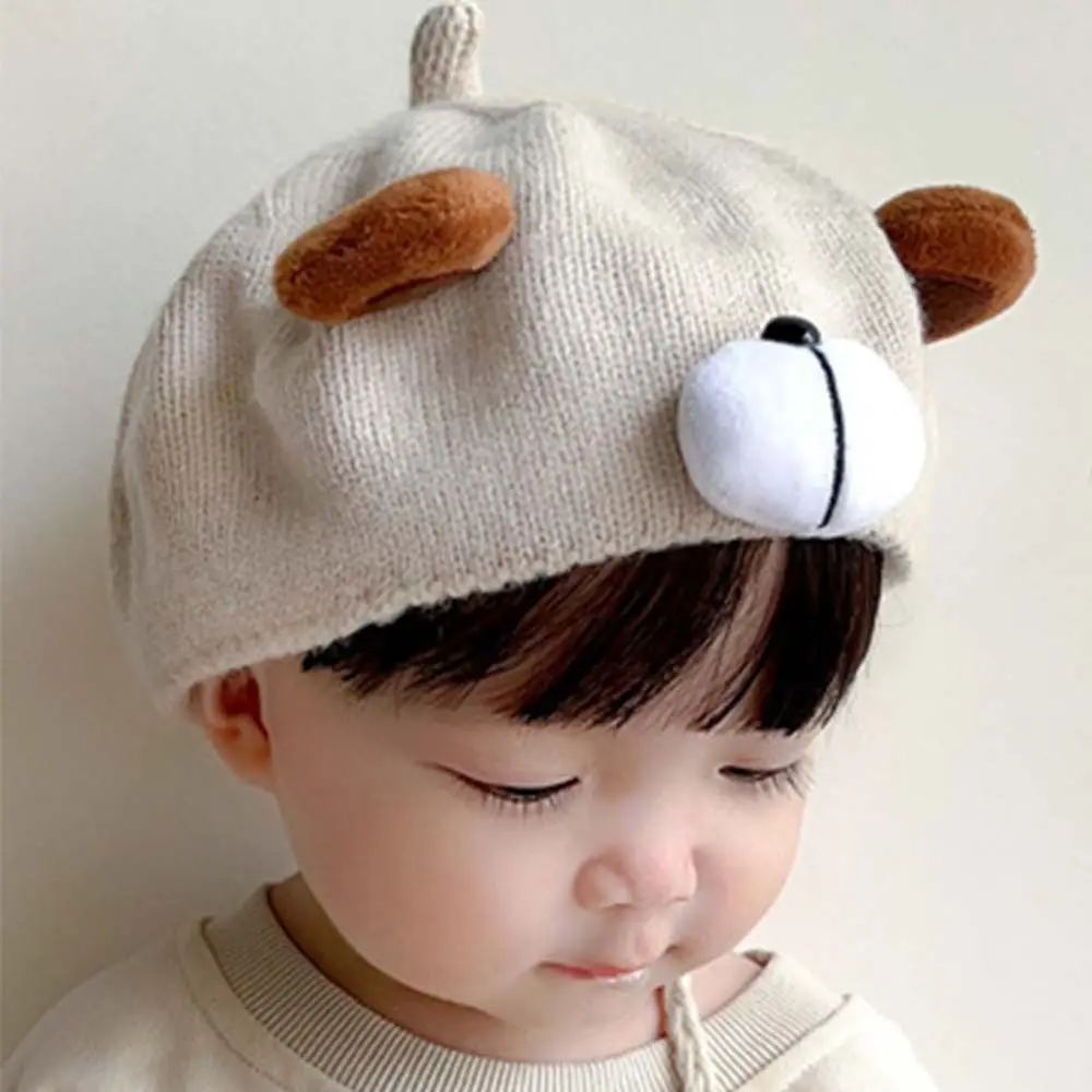 Comprar Boina tejida de punto para niños, gorro cálido de oso de dibujos animados para niñas, gorro de pintor artístico para niños, Otoño e Invierno